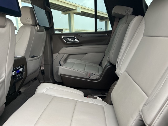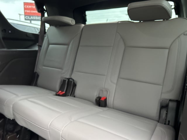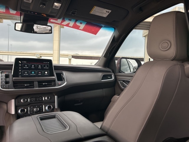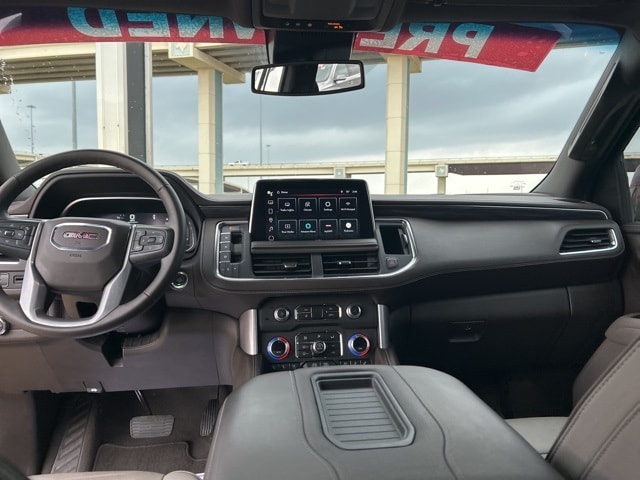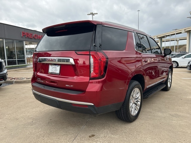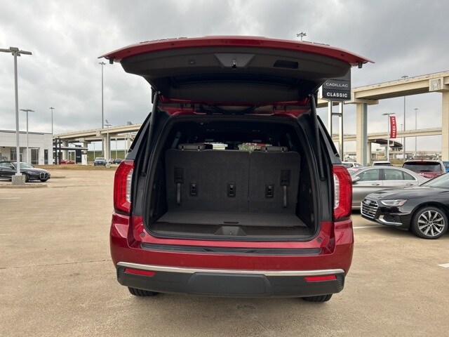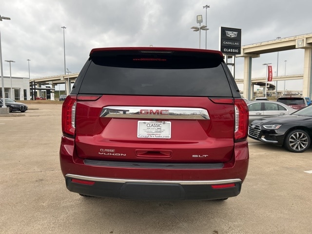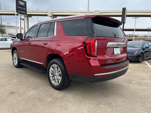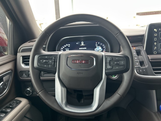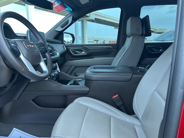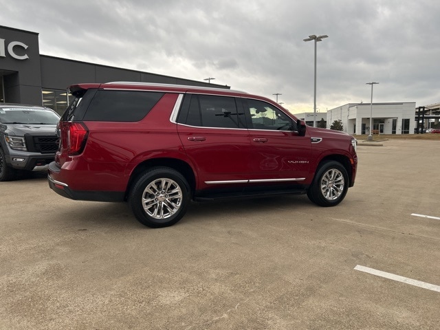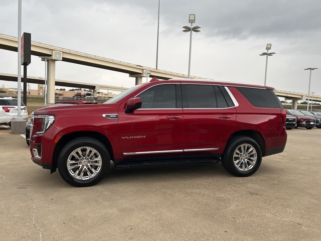 This 2023 GMC Yukon comes equipped with the following features License Plate Front Mounting Package, Preferred Equipment Group 4SA (2 Presets For Power Driver Seat, Bose 9-Speaker Stereo Audio System Feature, Bright Chrome Bodyside Moldings, Bright Front & Rear Door Sill Plates, Chrome Door Handles w/Body-Color Strip, Hands-Free Power Programmable Rear Liftgate, Heated & Ventilated Driver & Front Passenger Seats, Heated Driver & Front Passenger Seats, Inside Rear-View Auto-Dimming Mirror, Safety Alert Seat, Universal Home Remote, and Wireless Charging), 2nd Row Manual-Folding Bucket Seats, 3.23 Rear Axle Ratio, 3rd row seats: split-bench, 4-Wheel Disc Brakes, 9 Speakers, ABS brakes, Air Conditioning, Alloy wheels, AM/FM radio: SiriusXM with 360L, AM/FM Stereo, Apple CarPlay/Android Auto, Auto High-beam Headlights, Auto-dimming Rear-View mirror, Automatic Emergency Braking, Automatic temperature control, Bodyside moldings, Brake assist, Bumpers: body-color, Compass, Delay-off headlights, Driver door bin, Driver vanity mirror, Dual front impact airbags, Dual front side impact airbags, Electronic Stability Control, Emergency communication system: OnStar and GMC connected services capable, Following Distance Indicator, Forward Collision Alert, Four wheel independent suspension, Front & Rear Park Assist, Front anti-roll bar, Front Bucket Seats, Front Center Armrest, Front dual zone A/C, Front fog lights, Front Pedestrian Braking, Front reading lights, Fully automatic headlights, Garage door transmitter, Heated door mirrors, Heated front seats, Illuminated entry, IntelliBeam Automatic High Beam On/Off, Lane Change Alert w/Side Blind Zone Alert, Lane Keep Assist w/Lane Departure Warning, Low tire pressure warning, Memory seat, Navigation System, Occupant sensing airbag, Outside temperature display, Overhead airbag, Overhead console, Panic alarm, Passenger door bin, Passenger vanity mirror, Perforated Leather-Appointed Seating, Power door mirrors, Power driver seat, Power Liftgate, Power passenger seat, Power steering, Power windows, Premium Smooth Ride Suspension, Rain sensing wipers, Rear air conditioning, Rear anti-roll bar, Rear Cross Traffic Alert, Rear reading lights, Rear seat center armrest, Rear Seat Media System, Rear window defroster, Rear window wiper, Remote keyless entry, Roof rack: rails only, Security system, SiriusXM w/360L, Speed control, Speed-sensing steering, Split folding rear seat, Spoiler, Steering wheel mounted audio controls, Tachometer, Telescoping steering wheel, Tilt steering wheel, Traction control, Trip computer, Variably intermittent wipers, Ventilated front seats, Voltmeter, and Wheels: 20" x 9" 6-Spoke Polished Aluminum. Clean CARFAX. CARFAX One-Owner. 2023 GMC Yukon SLT RWD EcoTec3 5.3L V8