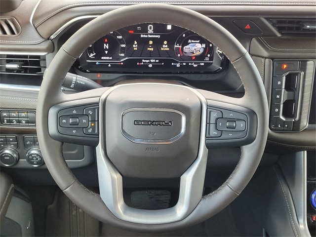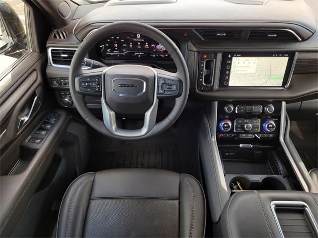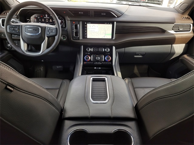 This 2023 GMC Yukon comes equipped with License Plate Front Mounting Package, Preferred Equipment Group 5SA (15" Diagonal Multi-Color Head-Up Display, 2 Presets For Outside Rearview Mirrors, 3 Years of GMC Connected Services, 3 Years of OnStar Safety & Security, 3rd Row 60/40 Power-Folding Split-Bench Seat, Bose 14-Speaker Surround w/CenterPoint, Bright Front & Rear Door Sill Plates, Chrome Door Handles w/Body-Color Strip, Dual Exhaust System, Enhanced Automatic Emergency Braking, Floor Console, Galvano Bodyside Moldings, Hands-Free Power Programmable Rear Liftgate, HD Surround Vision, Heated & Ventilated Driver & Front Passenger Seats, Heated 2nd Row Outboard Position Seats, Heated Driver & Front Passenger Seats, Heated Steering Wheel, Hill Descent Control, Inside Rear-View Auto-Dimming Mirror, Outside Heated Power-Adjustable Mirrors, Power Release 2nd Row Bucket Seats, Power Tilt & Telescopic Steering Column, Rear Pedestrian Alert, Safety Alert Seat, Universal Home Remote, and Wireless Charging), 4WD, Navigation System, 1.5 kW Heater/Defrost Air System, 14 Speakers, 250 Amps Alternator, 3 Years of OnStar Safety & Security (DISC), 3.23 Rear Axle Ratio, 3rd row seats: split-bench, 4-Wheel Disc Brakes, 850 Cold-Cranking Amps Battery, ABS brakes, Adaptive Cruise Control, Adaptive suspension, Air Conditioning, Alloy wheels, AM/FM radio: SiriusXM with 360L, AM/FM Stereo, Apple CarPlay/Android Auto, Auto High-beam Headlights, Auto-dimming door mirrors, Auto-dimming Rear-View mirror, Auto-leveling suspension, Automatic Emergency Braking, Automatic temperature control, Bodyside moldings, Brake assist, Bumpers: body-color, Compass, Delay-off headlights, Diesel B20 Fuel, Driver door bin, Driver vanity mirror, Dual front impact airbags, Dual front side impact airbags, Electronic Stability Control, Emergency communication system: OnStar and GMC connected services capable, Engine Block Heater, Floor Console w/Storage Area, Following Distance Indicator, Forward Collision Alert, Four wheel independent suspension, Front & Rear Park Assist, Front anti-roll bar, Front Bucket Seats, Front Center Armrest, Front dual zone A/C, Front fog lights, Front Pedestrian Braking, Front reading lights, Fully automatic headlights, Garage door transmitter, Heads-Up Display, Heated door mirrors, Heated front seats, Heated rear seats, Heated steering wheel, Illuminated entry, IntelliBeam Automatic High Beam On/Off, Lane Change Alert w/Side Blind Zone Alert, Lane Keep Assist w/Lane Departure Warning, Low tire pressure warning, Magnetic Ride Control Suspension, Memory seat, Occupant sensing airbag, Outside temperature display, Overhead airbag, Overhead console, Panic alarm, Passenger door bin, Passenger vanity mirror, Perforated Leather Seating Surfaces, Power door mirrors, Power driver seat, Power Liftgate, Power passenger seat, Power Release 2nd Row 60/40 Split-Folding Bench Seat, Power steering, Power windows, Power-Retractable Assist Steps, Rain sensing wipers, Rear air conditioning, Rear anti-roll bar, Rear Cross Traffic Alert, Rear reading lights, Rear window defroster, Rear window wiper, Remote keyless entry, Roof rack: rails only, Security system, Single Outlet Exhaust System, SiriusXM w/360L, Speed control, Speed-sensing steering, Split folding rear seat, Spoiler, Steering wheel memory, Steering wheel mounted audio controls, Tachometer, Telescoping steering wheel, Tilt steering wheel, Traction control, Trip computer, Turn signal indicator mirrors, Upper & Lower Active Aero Shutters, Variably intermittent wipers, Ventilated front seats, Voltmeter, Wheel Locks (Set of 4) (LPO), Wheels: 20" x 9" 6-Spoke Polished Aluminum, and Wheels: 22" x 9" Bright Machined Aluminum. CARFAX One-Owner. Clean CARFAX. 20/26 City/Highway MPG One Owner Carfax, 4WD, 15" Diagonal Multi-Color Head-Up Display, 2 Presets For Outside Rearview Mirrors, 3 Years of GMC Connected Services, 3 Years of OnStar Safety & Security, 3rd Row 60/40 Power-Folding Split-Bench Seat, Bose 14-Speaker