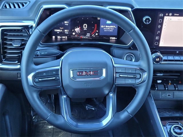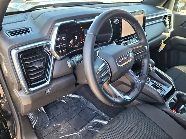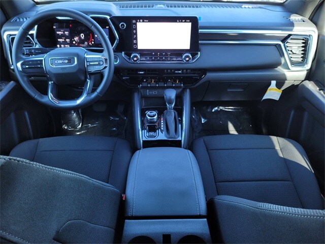 This 2024 GMC Canyon comes equipped with Canyon Safety Plus Package (Rear Cross Traffic Braking and Ultrasonic Rear Park Assist), Convenience Package (120-Volt Bed Mounted Power Outlet, 2 Rear USB Ports in Center Console (Charge-Only), Driver & Front Passenger Illuminated Visors, Dual-Zone Automatic Air Conditioning, EZ-Lift & Lower Tailgate, Front LED Fog Lamps, Heated Power-Adjustable Outside Mirrors, Inside Rear-View Auto-Dimming Mirror, Interior Overhead Courtesy Light w/Dual Reading Lamp, Manual Rear-Sliding Window, MultiStow Tailgate, Rear of Console 120-Volt Power Outlet, Rear-Window Electric Defogger, Remote Vehicle Starter System, Tailgate Keyed Cylinder Lock, and Tilt & Telescopic Manual Steering Column), Preferred Equipment Group 4VL (Canyon Pro Safety, Automatic Emergency Braking, Following Distance Indicator, Forward Collision Alert, Front Pedestrian & Bicyclist Braking, IntelliBeam Automatic High Beam On/Off, and Lane Keep Assist w/Lane Departure Warning), Technology Package (Adaptive Cruise Control, HD Surround Vision, and Rear Pedestrian Alert), 4WD, Navigation System, 1 Rear USB Ports in Center Console (Charge-Only), 2 1st Row USB Charge/Data Ports, 3.42 Rear Axle Ratio, 4-Way Manual Front Passenger Seat Adjuster, 4-Wheel Disc Brakes, 6 Speakers, 6-Speaker Audio System Feature, 6-Way Manual Driver Seat Adjuster, ABS brakes, Air Conditioning, Alloy wheels, AM/FM radio, Apple CarPlay/Android Auto, Auto High-beam Headlights, Automatic Stop/Start, Blind Zone Steering Assist, Brake assist, Bumpers: body-color, Cloth Seat Trim, Compass, Delay-off headlights, Driver door bin, Driver Mode Selector, Driver vanity mirror, Dual front impact airbags, Dual front side impact airbags, Electronic Stability Control, Front anti-roll bar, Front Bucket Seats, Front Center Armrest, Front License Plate Kit, Front Passenger Seatback Map Pocket, Front wheel independent suspension, Illuminated entry, Low tire pressure warning, Occupant sensing airbag, Outside temperature display, Overhead airbag, Overhead console, Panic alarm, Passenger door bin, Passenger vanity mirror, Power door mirrors, Power steering, Power windows, Radio data system, Radio: 11.3" Diagonal Premium GMC Infotainment Sys, Rear reading lights, Rear step bumper, Remote keyless entry, Security system, SiriusXM w/360L, Speed control, Speed-sensing steering, Split folding rear seat, Steering wheel mounted audio controls, Stop/Start System Disable Button Engine Control, Tachometer, Tilt steering wheel, Traction control, Trip computer, Variably intermittent wipers, Wheels: 18" x 8.5" Dark Gray Painted Aluminum, and Wireless Apple CarPlay/Wireless Android Auto. CARFAX One-Owner. Clean CARFAX. 4WD, 120-Volt Bed Mounted Power Outlet, 2 Rear USB Ports in Center Console (Charge-Only), Adaptive Cruise Control, Canyon Pro Safety, Canyon Safety Plus Package, Convenience Package, Driver & Front Passenger Illuminated Visors, Dual-Zone Automatic Air Conditioning, EZ-Lift & Lower Tailgate, Front LED Fog Lamps, HD Surround Vision, Heated Power-Adjustable Outside Mirrors, Inside Rear-View Auto-Dimming Mirror, Interior Overhead Courtesy Light w/Dual Reading Lamp, Manual Rear-Sliding Window, MultiStow Tailgate, Navigation System, Preferred Equipment Group 4VL, Rear Cross Traffic Braking, Rear of Console 120-Volt Power Outlet, Rear Pedestrian Alert, Rear-Window Electric Defogger, Remote Vehicle Starter System, Tailgate Keyed Cylinder Lock, Technology Package, Tilt & Telescopic Manual Steering Column, Ultrasonic Rear Park Assist.