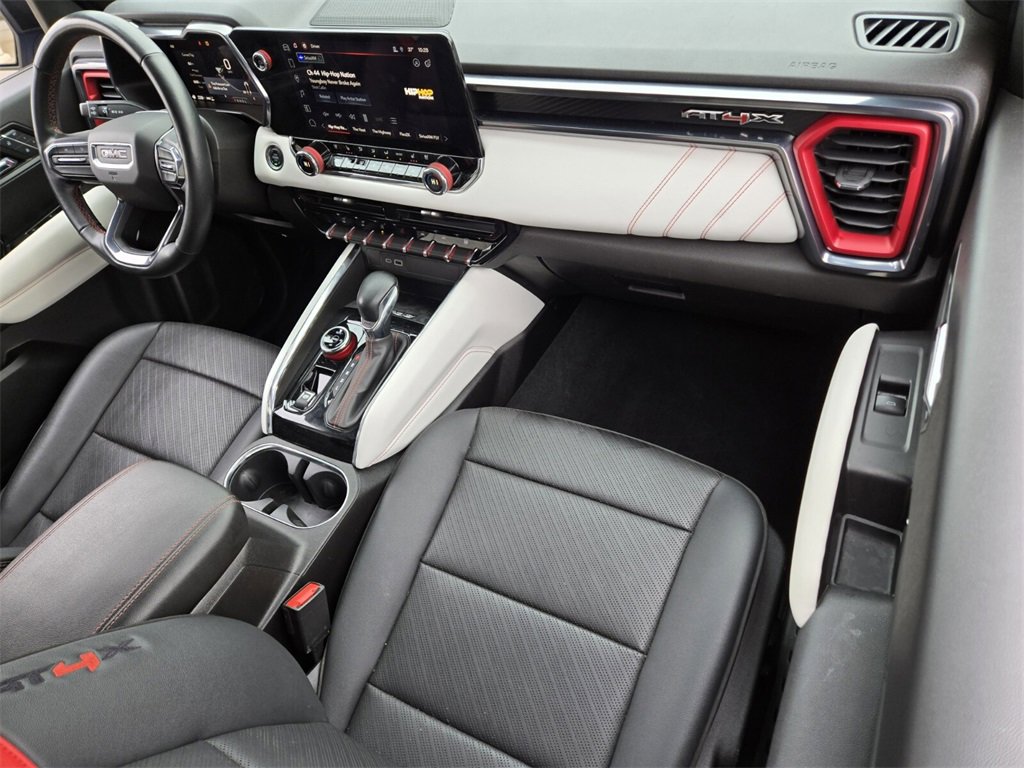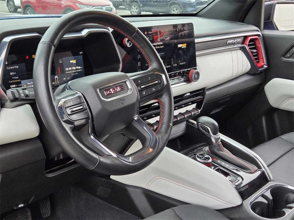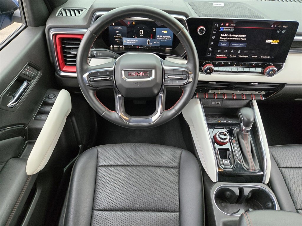 This 2024 GMC Canyon comes equipped with, 4WD, 120-Volt Bed Mounted Power Outlet, 2 1st Row USB Charge/Data Ports, 2 Rear USB Ports in Center Console (Charge-Only), 220 Amps Alternator, 3.42 Rear Axle Ratio, 4-Wheel Disc Brakes, 6-Way Power Passenger Seat Adjuster, 7 Speakers, 8-Way Power Driver Seat Adjuster, ABS brakes, Adaptive Cruise Control, Air Conditioning, Alloy wheels, AM/FM radio, Apple CarPlay/Android Auto, Auto High-beam Headlights, Auto-dimming Rear-View mirror, Automatic Emergency Braking, Automatic Stop/Start, Automatic temperature control, Brake assist, Bumpers: body-color, Canyon Pro Safety, Compass, Delay-off headlights, Driver & Front Passenger Illuminated Visors, Driver & Front Passenger Ventilated Seats, Driver door bin, Driver Memory, Driver Mode Selector, Driver Seatback Map Pocket, Driver vanity mirror, Driver-Selectable Full-Locking Front Differential, Driver-Selectable Full-Locking Rear Differential, Dual front impact airbags, Dual front side impact airbags, Dual-Zone Automatic Air Conditioning, Electronic Stability Control, EZ-Lift & Lower Tailgate, Following Distance Indicator, Forward Collision Alert, Front anti-roll bar, Front Bucket Seats, Front Center Armrest, Front dual zone A/C, Front fog lights, Front LED Fog Lamps, Front Passenger Seatback Map Pocket, Front Pedestrian & Bicyclist Braking, Front reading lights, Front wheel independent suspension, HD Surround Vision, Heads-Up Display, Heated door mirrors, Heated Driver & Front Passenger Seats, Heated front seats, Heated Power-Adjustable Outside Mirrors, Heated Steering Wheel, Heated steering wheel, Illuminated entry, Inside Rear-View Auto-Dimming Mirror, Integrated Trailer Brake Controller, IntelliBeam Automatic High Beam On/Off, Interior Overhead Courtesy Light w/Dual Reading Lamp, Lane Keep Assist w/Lane Departure Warning, Low tire pressure warning, Manual Rear-Sliding Window, Memory seat, Multicolor 6.3" Diagonal Head-Up Display, MultiStow Tailgate, Navigation system: OnStar, Occupant sensing airbag, Outside temperature display, Overhead airbag, Overhead console, Panic alarm, Passenger door bin, Passenger vanity mirror, Perforated Leather-Appointed Seat Trim, Power door mirrors, Power Driver Lumbar Control Seat Adjuster, Power driver seat, Power Passenger Lumbar Control Seat Adjuster, Power passenger seat, Power steering, Power windows, Preferred Equipment Group 4TX, Premium 7-Speaker Bose Sound System, Radio data system, Radio: 11.3" Diagonal Premium GMC Infotainment Sys, Rear Center Fold-Down Armrest w/2 Cupholders, Rear Cross Traffic Braking, Rear of Console 120-Volt Power Outlet, Rear Pedestrian Alert, Rear reading lights, Rear seat center armrest, Rear step bumper, Rear window defroster, Rear-Window Electric Defogger, Remote keyless entry, Remote Vehicle Starter System, Safety Alert Seat, Security system, SiriusXM w/360L, Speed control, Speed-sensing steering, Split folding rear seat, Spray-On Bedliner, Steering wheel mounted audio controls, Stop/Start System Disable Button Engine Control, Tachometer, Tailgate Keyed Cylinder Lock, Telescoping steering wheel, Tilt & Telescopic Manual Steering Column, Tilt steering wheel, Traction control, Trailering App System, Trailering Package, Trip computer, Ultrasonic Rear Park Assist, Variably intermittent wipers, Ventilated front seats, Wheels: 17" x 8" Black High Gloss Machined Finish, Wireless Apple CarPlay/Wireless Android Auto, Wireless Charging, 4WD. Odometer is 827 miles below market average!