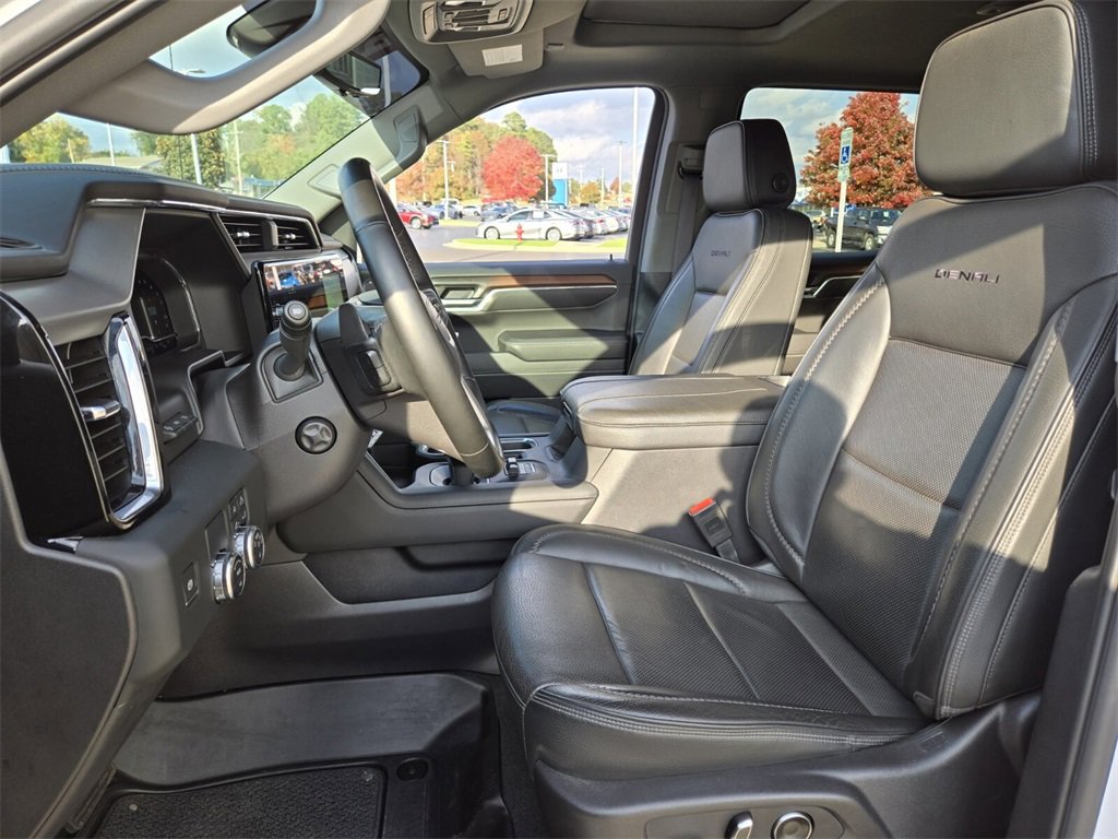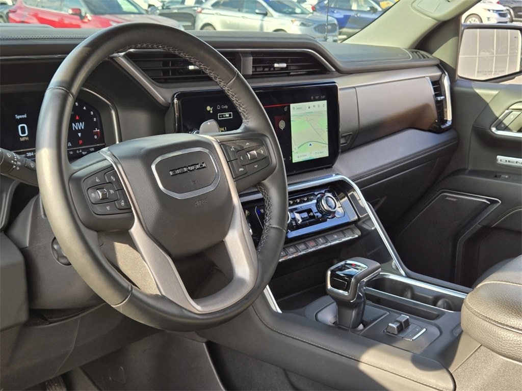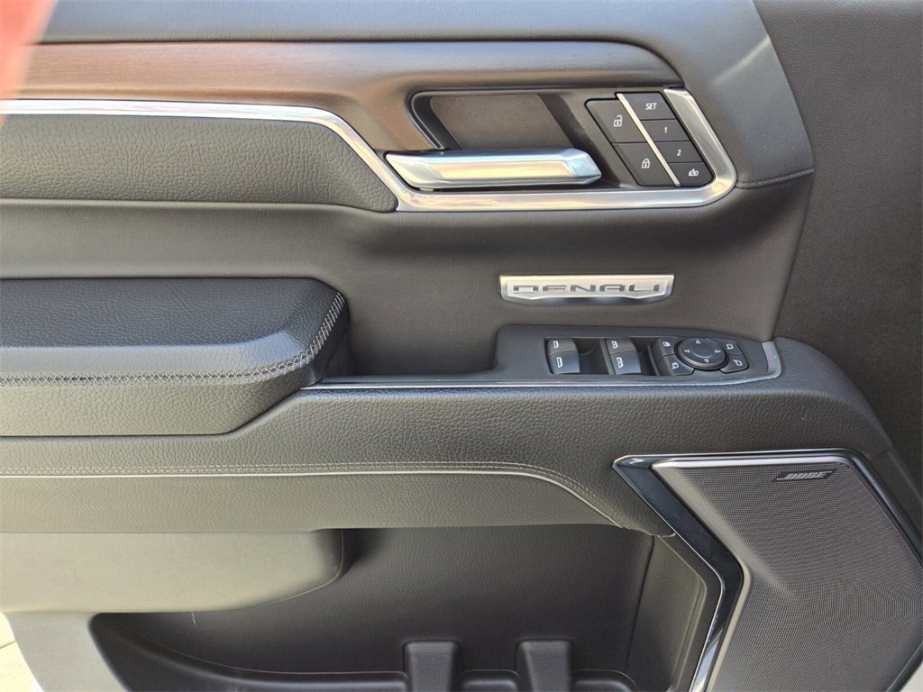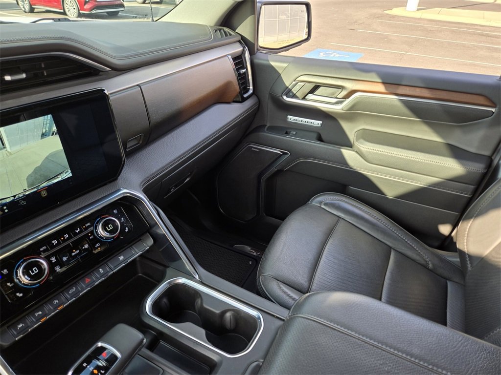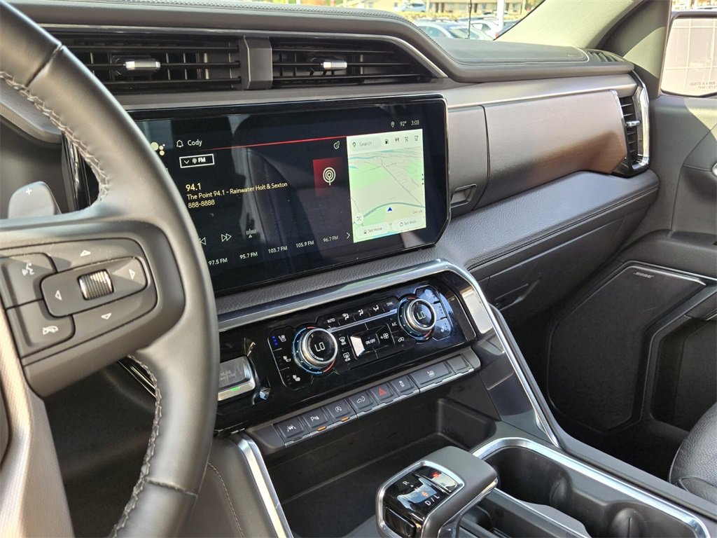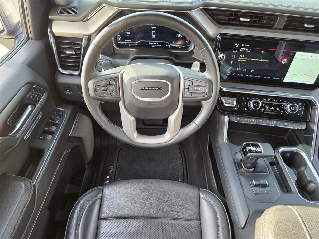 This 2024 GMC Sierra 1500 comes equipped with, 10-Speed Automatic, Jet Black Leather, 12-Way Power Driver Seat Adjuster w/Lumbar, 12-Way Power Passenger Seat Adjuster w/Lumbar, 120-Volt Bed Mounted Power Outlet, 120-Volt Interior Power Outlet, 170 Amp Alternator, 2 Charge/Data USB Ports Inside Center Console, 2 Type-C Charge-Only Rear USB Ports, 2 USB Ports, 220 Amp Alternator, 3.23 Rear Axle Ratio, 4-Wheel Disc Brakes, 7 Speakers, ABS brakes, Adaptive suspension, Air Conditioning, Alloy wheels, AM/FM radio: SiriusXM with 360L, Apple CarPlay/Android Auto, Auto High-beam Headlights, Auto-dimming door mirrors, Auto-dimming Rear-View mirror, Auto-Locking Rear Differential, Automatic temperature control, Auxiliary External Transmission Oil Cooler, Bed View Camera, Brake assist, Buckle to Drive, Bumpers: body-color, Chrome Header w/Signature Denali Chrome Grille, Chrome Recovery Hooks, Chrome Wheel To Wheel Assist Steps, Color-Keyed Carpeting Floor Covering, Compass, Deep-Tinted Glass, Delay-off headlights, Denali Premium Suspension w/Adaptive Ride Control, Denali Reserve Package, Driver door bin, Driver Memory, Driver vanity mirror, Dual front impact airbags, Dual front side impact airbags, Electric Rear-Window Defogger, Electronic Stability Control, Emergency communication system: OnStar and GMC connected services capable, Engine Block Heater, Enhanced Automatic Emergency Braking, Floor-Mounted Center Console, Following Distance Indicator, Forge Perforated Leather Seat Trim, Forward Collision Alert, Front anti-roll bar, Front Bucket Seats, Front Center Armrest, Front dual zone A/C, Front fog lights, Front License Plate Kit, Front Pedestrian Braking, Front Prem Floor Liners w/Removable Carpet Insert, Front Rain-Sensing Wipers, Front reading lights, Front wheel independent suspension, Fully automatic headlights, Garage door transmitter, Genuine wood console insert, Genuine wood dashboard insert, Genuine wood door panel insert, GMC Connected Access Capable, GMC MultiPro Power Steps, HD Surround Vision, Heated 2nd Row Outboard Seats, Heated door mirrors, Heated Driver & Front Outboard Passenger Seating, Heated front seats, Heated rear seats, Heated steering wheel, Heavy-Duty Air Filter, Hitch Guidance, Hitch View, Illuminated entry, In-Vehicle Trailering System App, Integrated Trailer Brake Controller, IntelliBeam Automatic High Beam On/Off, Keyless Open & Start, Lane Keep Assist w/Lane Departure Warning, LED Cargo Area Lighting, Low tire pressure warning, Memory seat, Multicolor 15" Diagonal Head-Up Display, Navigation System, Occupant sensing airbag, OnStar & GMC Connected Services Capable, Outside temperature display, Overhead airbag, Overhead console, Panic alarm, Passenger door bin, Passenger vanity mirror, Perimeter Lighting, Power Door Locks, Power door mirrors, Power driver seat, Power Front Passenger Windows w/Express Up/Down, Power Front Windows w/Driver Express Up/Down, Power passenger seat, Power Rake & Telescoping Steering Column, Power Rear Windows w/Express Down, Power Sliding Rear Window w/Rear Defogger, Power steering, Power Sunroof, Power windows, Preferred Equipment Group 5SA, Premium audio system: GMC Infotainment System, Premium Bose 7-Speaker Sound System, Push Button Start, Radio data system, Radio: Premium GMC Infotainment Audio System, Rain sensing wipers, Rear Camera Mirror, Rear Cross Traffic Braking, Rear Pedestrian Detection, Rear Prem Floor Liners w/Removable Carpet Insert, Rear reading lights, Rear seat center armrest, Rear step bumper, Rear Wheelhouse Liners, Rear window defroster, Remote keyless entry, Remote Vehicle Starter System, Safety Alert Seat, Security system, SiriusXM w/360L, Speed control, Speed-sensing steering, Split folding rear seat, Spray-On Pickup Bedliner w/Denali Logo, Steering Wheel Audio Controls, Steering wheel mounted audio controls, Tachometer, Technology Package, Telescoping steering wheel, Theft Deterrent System (Unauthorized Entry), Tilt steering wheel, Traction control, Trai