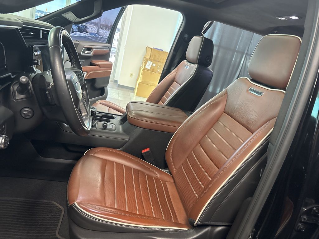 CARFAX One-Owner. Clean CARFAX. Onyx Black Denali Ultimate 4WD 10-Speed Automatic EcoTec3 6.2L V8 **NAVIGATION**, **4WD**, **MOONROOF**, **LOCAL TRADE**, **NON SMOKER**, **ONE OWNER**, **LEATHER INTERIOR**, **KEYLESS ENTRY**, **HEATED / COOLED SEATS**, **ADAPTIVE CRUISE CONTROL**, **WE DELIVER ANYWHERE**, **REAR VIEW CAMERA**, **BLUETOOTH HANDES FREE CALLING**, **TOWING PACKAGE**, 10-Speed Automatic, 4WD, Alpine Umber Leather, 12 Speakers, 120-Volt Bed Mounted Power Outlet, 120-Volt Interior Power Outlet, 16-Way Power Driver Seat Adjuster w/Lumbar, 16-Way Power Passenger Seat Adjuster w/Lumbar, 170 Amp Alternator, 2 Charge/Data USB Ports Inside Center Console, 2 Type-C Charge-Only Rear USB Ports, 2 USB Ports, 3.23 Rear Axle Ratio, 4-Wheel Disc Brakes, ABS brakes, Adaptive suspension, Air Conditioning, Alloy wheels, AM/FM radio: SiriusXM with 360L, Apple CarPlay/Android Auto, Auto High-beam Headlights, Auto-dimming door mirrors, Auto-dimming Rear-View mirror, Auto-Locking Rear Differential, Automatic temperature control, Bed View Camera, Bose Premium Series w/12-Speaker System, Brake assist, Buckle to Drive, Bumpers: body-color, Carbon Fiber Composite Bed, Chrome Recovery Hooks, Color-Keyed Carpeting Floor Covering, Compass, Deep-Tinted Glass, Delay-off headlights, Denali Premium Suspension w/Adaptive Ride Control, Driver door bin, Driver Memory, Driver vanity mirror, Dual Active Exhaust, Dual front impact airbags, Dual front side impact airbags, Electric Rear-Window Defogger, Electronic Stability Control, Emergency communication system: OnStar and GMC connected services capable, Enhanced Automatic Emergency Braking, Floor-Mounted Center Console, Following Distance Indicator, Forward Collision Alert, Front anti-roll bar, Front Bucket Seats, Front Center Armrest, Front dual zone A/C, Front fog lights, Front Pedestrian Braking, Front Rain-Sensing Wipers, Front reading lights, Front wheel independent suspension, Full Grain Leather Seat Trim, Fully automatic headlights, Garage door transmitter, Genuine wood console insert, Genuine wood dashboard insert, Genuine wood door panel insert, GMC Connected Access Capable, HD Surround Vision, Heads-Up Display, Heated 2nd Row Outboard Seats, Heated door mirrors, Heated Driver & Front Outboard Passenger Seating, Heated front seats, Heated rear seats, Heated steering wheel, Heavy-Duty Air Filter, Hill Descent Control, Hitch Guidance, Hitch View, Illuminated entry, In-Vehicle Trailering System App, Integrated Trailer Brake Controller, IntelliBeam Automatic High Beam On/Off, Keyless Open & Start, Lane Keep Assist w/Lane Departure Warning, LED Cargo Area Lighting, Low tire pressure warning, Memory seat, Multicolor 15" Diagonal Head-Up Display, MultiPro Tailgate Audio System by Kicker (LPO), Navigation System, Occupant sensing airbag, OnStar & GMC Connected Services Capable, Outside temperature display, Overhead airbag, Overhead console, Panic alarm, Passenger door bin, Passenger vanity mirror, Perimeter Lighting, Power Door Locks, Power door mirrors, Power driver seat, Power Front Passenger Windows w/Express Up/Down, Power Front Windows w/Driver Express Up/Down, Power moonroof, Power passenger seat, Power Rake & Telescoping Steering Column, Power Rear Windows w/Express Down, Power Sliding Rear Window w/Rear Defogger, Power steering, Power Sunroof, Power windows, Preferred Equipment Group 5SB, Premium audio system: GMC Infotainment System, Push Button Start, Radio data system, Radio: Premium GMC Infotainment Audio System, Rain sensing wipers, Rear Cross Traffic Braking, Rear Pedestrian Detection, Rear reading lights, Rear seat center armrest, Rear step bumper, Rear Wheelhouse Liners, Rear window defroster, Remote keyless entry, Remote Vehicle Starter System, Safety Alert Seat, Security system, SiriusXM w/360L, Speed control, Speed-sensing steering, Split folding rear seat, Spray-On Pickup Bedliner w/Denali Logo, Steering Wheel Audio Controls, Steering wheel mounted audio controls, Super Cruise, Ta