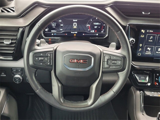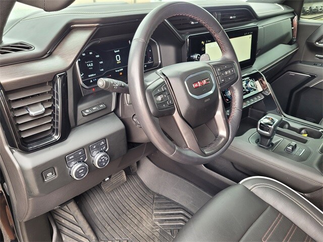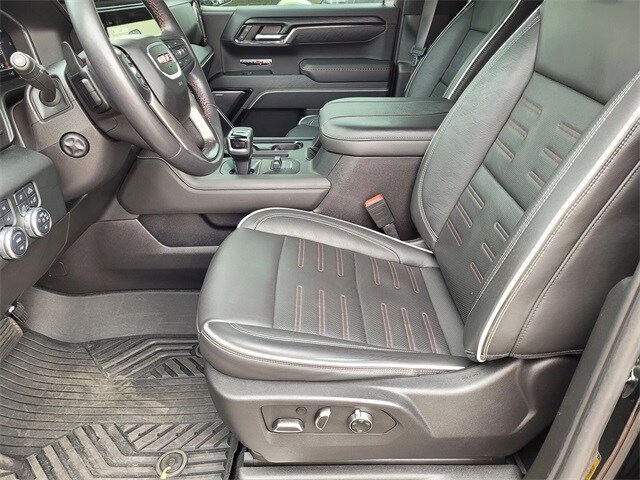 This 2024 GMC Sierra 1500 comes equipped with AT4X AEV Edition (1st & 2nd Row AEV All-Weather Floor Liners (LPO), AEV Branded Front Head Restraints, AEV Stamped-Steel Rear Bumper, AEV Tailgate Decal w/Exterior Badging, Gloss Black Door Handles, Rocker Protection (LPO), and Wheels: 18" x 8.5" 12-Spoke High Gloss Black Alum), Preferred Equipment Group 4SG (120-Volt Bed Mounted Power Outlet, 120-Volt Interior Power Outlet, 2 Charge/Data USB Ports Inside Center Console, 2 Type-C Charge-Only Rear USB Ports, 2 USB Ports, Bed View Camera, Bose Premium Series w/12-Speaker System, Color-Keyed Carpeting Floor Covering, Deep-Tinted Glass, Driver-Selectable Full-Locking Front Differential, Driver-Selectable Full-Locking Rear Differential, Electric Rear-Window Defogger, Floor-Mounted Center Console, Front Prem Floor Liners w/Removable Carpet Insert, Front Rain-Sensing Wipers, Gloss Black Header w/Drk Nickel Grille Insert Bars, GMC Connected Access Capable, HD Surround Vision, Heated 2nd Row Outboard Seats, Heated Driver & Front Outboard Passenger Seating, Heavy-Duty Air Filter, Hill Descent Control, Hitch View, In-Vehicle Trailering System App, Integrated Trailer Brake Controller, Keyless Open & Start, LED Cargo Area Lighting, Multicolor 15" Diagonal Head-Up Display, MultiPro Tailgate Audio System by Kicker (LPO), OnStar & GMC Connected Services Capable, Perimeter Lighting, Power Door Locks, Power Front Passenger Windows w/Express Up/Down, Power Front Windows w/Driver Express Up/Down, Power Rake & Telescoping Steering Column, Power Rear Windows w/Express Down, Power Sliding Rear Window w/Rear Defogger, Power Sunroof, Push Button Start, Rear Cross Traffic Braking, Rear Pedestrian Detection, Rear Prem Floor Liners w/Removable Carpet Insert, Rear Wheelhouse Liners, Remote Vehicle Starter System, SiriusXM w/360L, Spray-On Pickup Bedliner w/AT4X Logo, Steering Wheel Audio Controls, Theft Deterrent System (Unauthorized Entry), Trailer Camera Provisions, Trailer Side Blind Zone Alert, Trailer Tire Pressure Monitor System, Ultrasonic Front & Rear Park Assist, Universal Home Remote, Ventilated Driver & Front Passenger Seats, Wi-Fi Hotspot Capable, and Wireless Charging), Trailering Package (Hitch Guidance), 10-Speed Automatic, 4WD, Obsidian Rush Leather, 12 Speakers, 16-Way Power Driver Seat Adjuster w/Lumbar, 16-Way Power Passenger Seat Adjuster w/Lumbar, 220 Amp Alternator, 3.23 Rear Axle Ratio, 4-Wheel Disc Brakes, ABS brakes, Air Conditioning, Alloy wheels, AM/FM radio: SiriusXM with 360L, Apple CarPlay/Android Auto, Auto High-beam Headlights, Auto-dimming door mirrors, Auto-dimming Rear-View mirror, Automatic Emergency Braking, Automatic temperature control, Block heater, Brake assist, Buckle to Drive, Compass, Delay-off headlights, Driver door bin, Driver Memory, Driver vanity mirror, Dual front impact airbags, Dual front side impact airbags, Electronic Stability Control, Engine Block Heater, Following Distance Indicator, Forward Collision Alert, Front anti-roll bar, Front Bucket Seats, Front Center Armrest, Front dual zone A/C, Front fog lights, Front Pedestrian Braking, Front reading lights, Front wheel independent suspension, Full Grain Leather Seat Trim, Fully automatic headlights, Garage door transmitter, Genuine wood dashboard insert, Genuine wood door panel insert, GMC MultiPro Tailgate Step Lights (LPO), Heads-Up Display, Heated door mirrors, Heated front seats, Heated rear seats, Heated steering wheel, Illuminated entry, IntelliBeam Automatic High Beam On/Off, Lane Keep Assist w/Lane Departure Warning, Low tire pressure warning, Memory seat, Navigation System, Occupant sensing airbag, Off-Road Removable Assist Steps (LPO), Off-Road Suspension, Outside temperature display, Overhead airbag, Overhead console, Panic alarm, Passenger door bin, Passenger vanity mirror, Power door mirrors, Power driver seat, Power moonroof, Power passenger seat, Power steering, Power windows, Premium audio system: GMC Infotainment System, Radio data system,