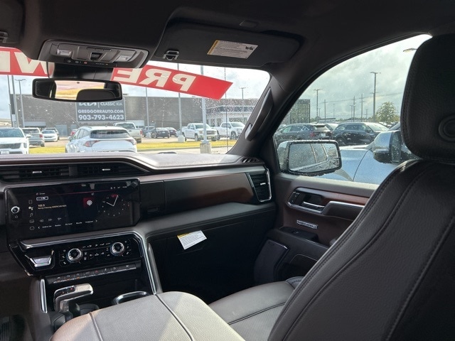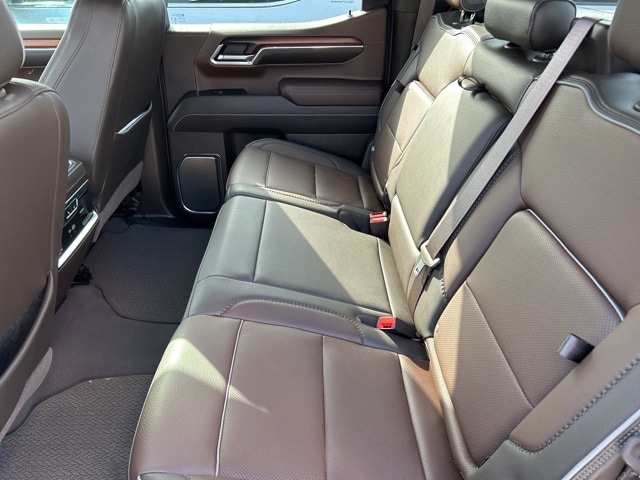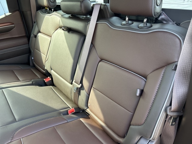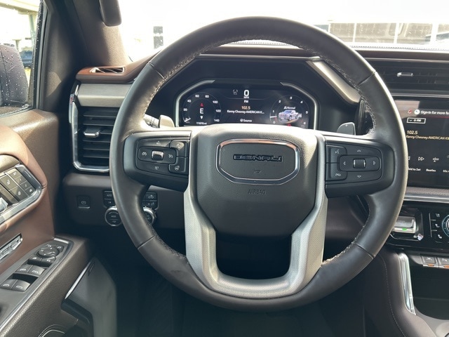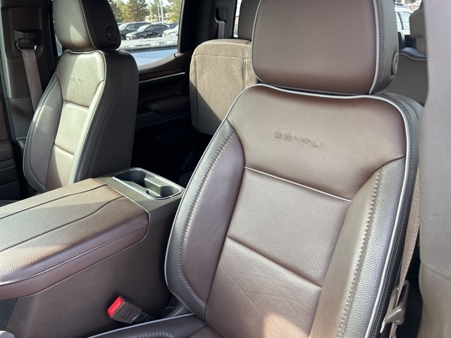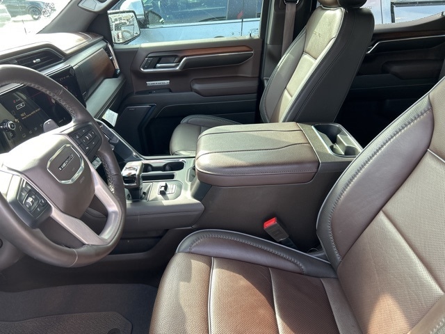 The 2024 GMC Sierra 1500 comes with the following features; Preferred Equipment Group 5SA (120-Volt Bed Mounted Power Outlet, 120-Volt Interior Power Outlet, 170 Amp Alternator, 2 Charge/Data USB Ports Inside Center Console, 2 Type-C Charge-Only Rear USB Ports, 2 USB Ports, Auto-Locking Rear Differential, Auxiliary External Transmission Oil Cooler, Bed View Camera, Chrome Header w/Signature Denali Chrome Grille, Chrome Recovery Hooks, Chrome Wheel To Wheel Assist Steps, Color-Keyed Carpeting Floor Covering, Deep-Tinted Glass, Electric Rear-Window Defogger, Floor-Mounted Center Console, Front Rain-Sensing Wipers, GMC Connected Access Capable, HD Surround Vision, Heated 2nd Row Outboard Seats, Heated Driver & Front Outboard Passenger Seating, Heavy-Duty Air Filter, Hill Descent Control, Hitch View, In-Vehicle Trailering System App, Integrated Trailer Brake Controller, Keyless Open & Start, LED Cargo Area Lighting, OnStar & GMC Connected Services Capable, Perimeter Lighting, Power Door Locks, Power Front Passenger Windows w/Express Up/Down, Power Front Windows w/Driver Express Up/Down, Power Rake & Telescoping Steering Column, Power Rear Windows w/Express Down, Power Sliding Rear Window w/Rear Defogger, Premium Bose 7-Speaker Sound System, Push Button Start, Rear Cross Traffic Braking, Rear Pedestrian Detection, Rear Wheelhouse Liners, Remote Vehicle Starter System, SiriusXM w/360L, Spray-On Pickup Bedliner w/Denali Logo, Steering Wheel Audio Controls, Theft Deterrent System (Unauthorized Entry), Trailer Camera Provisions, Trailer Side Blind Zone Alert, Ultrasonic Front & Rear Park Assist, Universal Home Remote, Ventilated Driver & Front Passenger Seats, Wi-Fi Hotspot Capable, and Wireless Charging), Trailering Package (Hitch Guidance), 10-Speed Automatic, 4WD, Atmosphere/Brownstone Leather, 12-Way Power Driver Seat Adjuster w/Lumbar, 12-Way Power Passenger Seat Adjuster w/Lumbar, 3.23 Rear Axle Ratio, 4-Wheel Disc Brakes, 7 Speakers, ABS brakes, Adaptive suspension, Air Conditioning, Alloy wheels, AM/FM radio: SiriusXM with 360L, Apple CarPlay/Android Auto, Auto High-beam Headlights, Auto-dimming door mirrors, Auto-dimming Rear-View mirror, Automatic temperature control, Brake assist, Buckle to Drive, Bumpers: body-color, Compass, Delay-off headlights, Denali Premium Suspension w/Adaptive Ride Control, Driver door bin, Driver Memory, Driver vanity mirror, Dual front impact airbags, Dual front side impact airbags, Electronic Stability Control, Emergency communication system: OnStar and GMC connected services capable, Enhanced Automatic Emergency Braking, Following Distance Indicator, Forge Perforated Leather Seat Trim, Forward Collision Alert, Front anti-roll bar, Front Bucket Seats, Front Center Armrest, Front dual zone A/C, Front fog lights, Front License Plate Kit, Front Pedestrian Braking, Front reading lights, Front wheel independent suspension, Fully automatic headlights, Garage door transmitter, Genuine wood console insert, Genuine wood dashboard insert, Genuine wood door panel insert, Heated door mirrors, Heated front seats, Heated rear seats, Heated steering wheel, Illuminated entry, IntelliBeam Automatic High Beam On/Off, Lane Keep Assist w/Lane Departure Warning, Low tire pressure warning, Memory seat, Navigation System, Occupant sensing airbag, Outside temperature display, Overhead airbag, Overhead console, Panic alarm, Passenger door bin, Passenger vanity mirror, Power door mirrors, Power driver seat, Power passenger seat, Power steering, Power windows, Premium audio system: GMC Infotainment System, Radio data system, Radio: Premium GMC Infotainment Audio System, Rain sensing wipers, Rear reading lights, Rear seat center armrest, Rear step bumper, Rear window defroster, Remote keyless entry, Safety Alert Seat, Security system, Speed control, Speed-sensing steering, Split fo