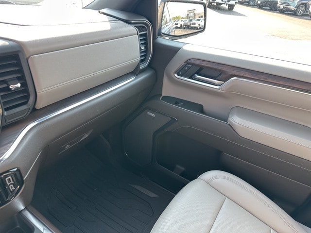 This 2024 GMC Sierra 1500 comes equipped with High Capacity Suspension Package, Preferred Equipment Group 4SA (120-Volt Interior Power Outlet, 170 Amp Alternator, 2 Charge/Data USB Ports, 2 Type-C Charge-Only Rear USB Ports, 6-Speaker Audio System Feature, Auto-Locking Rear Differential, Auxiliary External Transmission Oil Cooler, Chrome Header & Chrome Grille Insert Bars, Color-Keyed Carpeting Floor Covering, Deep-Tinted Glass, Electric Rear-Window Defogger, Front Frame-Mounted Black Recovery Hooks, Front Rain-Sensing Wipers, GMC Connected Access Capable, HD Rear Vision Camera, Keyless Open & Start, LED Cargo Area Lighting, Manual Tilt-Wheel & Telescoping Steering Column, OnStar & GMC Connected Services Capable, Perimeter Lighting, Power Door Locks, Power Front Passenger Windows w/Express Up/Down, Power Front Windows w/Driver Express Up/Down, Power Rear Windows w/Express Down, Push Button Start, Rear Wheelhouse Liners, Remote Vehicle Starter System, SiriusXM w/360L, Steering Wheel Audio Controls, Theft Deterrent System (Unauthorized Entry), Wi-Fi Hotspot Capable, and 120-Volt Bed Mounted Power Outlet), ProGrade Trailering System (Hitch View, In-Vehicle Trailering System App, and Integrated Trailer Brake Controller), Sierra Safety Plus Package (HD Surround Vision, Rear Cross Traffic Braking, Rear Pedestrian Detection, Safety Alert Seat, Trailer Camera Provisions, Trailer Side Blind Zone Alert, and Ultrasonic Front & Rear Park Assist), SLT Convenience Package (Floor-Mounted Center Console, Front Bucket Seats, Power Rake & Telescoping Steering Column, Premium Bose 7-Speaker Sound System, Ventilated Driver & Front Passenger Seats, Wireless Charging, 2 Charge/Data USB Ports Inside Center Console, and Electronic Precision Shift), SLT Preferred Package (Adaptive Cruise Control, Heated 2nd Row Outboard Seats, Power Sliding Rear Window w/Rear Defogger, and Universal Home Remote), Standard Suspension Package, Texas Edition SLT Premium Plus Package (20" Polished Aluminum Wheels, Chrome Wheel To Wheel Assist Steps, Spray-On Pickup Bedliner w/GMC Logo, and Texas Edition Badging), Trailering Package (Hitch Guidance), X31 Off-Road & Protection Package (All-Weather Floor Liner (LPO) and Wheels: 20" Polished Aluminum w/RFX), X31 Off-Road Package (Dual Exhaust System, Heavy-Duty Air Filter, Hill Descent Control, Off-Road Suspension, and X31 Hard Badge), 10-Speed Automatic, 4WD, Dark Walnut/Slate Leather, Navigation System, 10-Way Power Driver Seat Adjuster w/Lumbar, 10-Way Power Passenger Seat Adjuster w/Lumbar, 3.23 Rear Axle Ratio, 4-Wheel Disc Brakes, 6 Speakers, ABS brakes, Air Conditioning, Alloy wheels, AM/FM radio: SiriusXM with 360L, Apple CarPlay/Android Auto, Auto High-beam Headlights, Auto-dimming door mirrors, Auto-dimming Rear-View mirror, Automatic Emergency Braking, Automatic temperature control, Brake assist, Buckle to Drive, Bumpers: chrome, Compass, Delay-off headlights, Driver door bin, Driver Memory, Driver vanity mirror, Dual front impact airbags, Dual front side impact airbags, Electronic Stability Control, Following Distance Indicator, Forward Collision Alert, Front 40/20/40 Split-Bench Seat, Front anti-roll bar, Front Center Armrest w/Storage, Front dual zone A/C, Front fog lights, Front Pedestrian Braking, Front reading lights, Front wheel independent suspension, Fully automatic headlights, GMC MultiPro Tailgate Step Lights (LPO), Heated door mirrors, Heated Driver & Front Outboard Passenger Seating, Heated front seats, Heated steering wheel, Illuminated entry, IntelliBeam Automatic High Beam On/Off, Lane Keep Assist w/Lane Departure Warning, Low tire pressure warning, Memory seat, Occupant sensing airbag, Outside temperature display, Overhead airbag, Overhead console, Panic alarm, Passenger door bin, Passenger vanity mirror, Perf Leather-Appointed Front Outboard Seat Trim, Power door mirrors, Power driver seat, Power passenger seat, Power steering, Power Sunroof, Power windows, Premium audio system: GMC Infotainment S