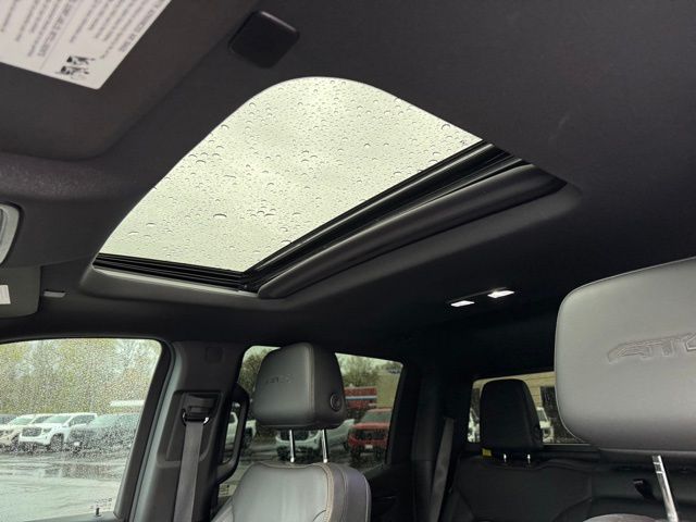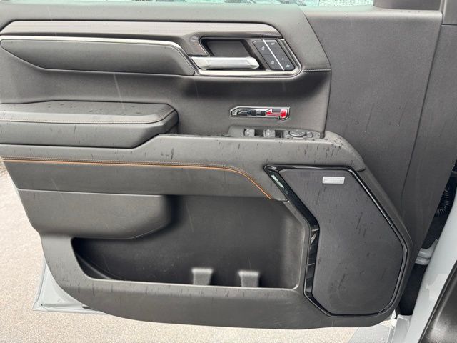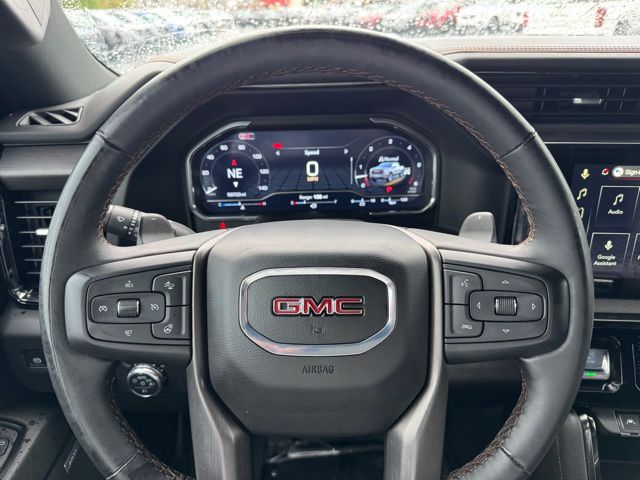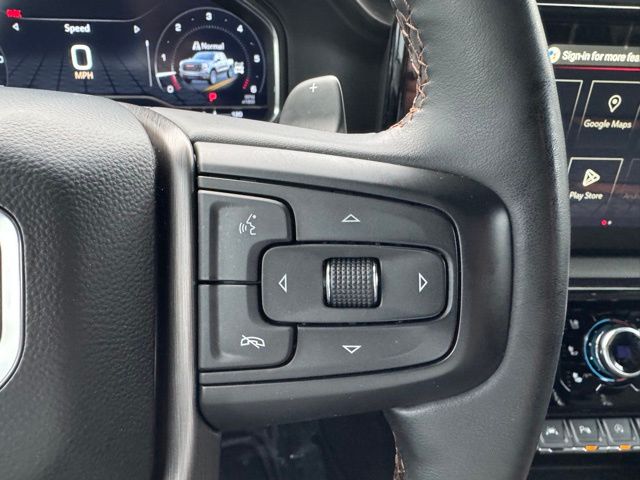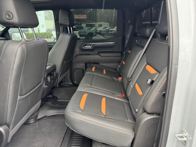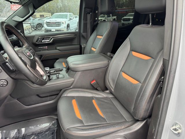 This 2024 GMC Sierra 1500 comes equipped with AT4 Preferred Package (Power Sliding Rear Window w/Rear Defogger and Universal Home Remote), AT4 Premium Package (Off-Road High Clearance Step (LPO)), Preferred Equipment Group 4SB (120-Volt Interior Power Outlet, 2 Charge/Data USB Ports Inside Center Console, 2 Type-C Charge-Only Rear USB Ports, 2 USB Ports, 220 Amp Alternator, Auto-Locking Rear Differential, Black Chrome Header & Grille Insert Bars, Color-Keyed Carpeting Floor Covering, Deep-Tinted Glass, Electric Rear-Window Defogger, Floor-Mounted Center Console, Front Prem Floor Liners w/Removable Carpet Insert, Front Rain-Sensing Wipers, GMC Connected Access Capable, HD Surround Vision, Heated 2nd Row Outboard Seats, Heated Driver & Front Outboard Passenger Seating, Heavy-Duty Air Filter, Hill Descent Control, Hitch View, In-Vehicle Trailering System App, Integrated Trailer Brake Controller, Keyless Open & Start, LED Cargo Area Lighting, OnStar & GMC Connected Services Capable, Perimeter Lighting, Power Door Locks, Power Front Passenger Windows w/Express Up/Down, Power Front Windows w/Driver Express Up/Down, Power Rake & Telescoping Steering Column, Power Rear Windows w/Express Down, Premium Bose 7-Speaker Sound System, Push Button Start, Rear Cross Traffic Braking, Rear Pedestrian Detection, Rear Wheelhouse Liners, Red Recovery Hooks, Remote Vehicle Starter System, SiriusXM w/360L, Spray-On Pickup Bedliner w/AT4 Logo, Steering Wheel Audio Controls, Theft Deterrent System (Unauthorized Entry), Trailer Camera Provisions, Trailer Side Blind Zone Alert, Ultrasonic Front & Rear Park Assist, Ventilated Driver & Front Passenger Seats, Wi-Fi Hotspot Capable, Wireless Charging, 120-Volt Bed Mounted Power Outlet, and Rear Prem Floor Liners w/Removable Carpet Insert), Technology Package (Bed View Camera, Multicolor 15" Diagonal Head-Up Display, and Rear Camera Mirror), Trailering Package (Hitch Guidance), 10-Speed Automatic, 4WD, Jet Black With Kalahari Accents Leather, Navigation System, 10-Way Power Driver Seat Adjuster w/Lumbar, 10-Way Power Passenger Seat Adjuster w/Lumbar, 170 Amp Alternator, 18" x 8.5" Machined Aluminum Wheels, 3.23 Rear Axle Ratio, 4-Wheel Disc Brakes, 7 Speakers, ABS brakes, Air Conditioning, Alloy wheels, AM/FM radio: SiriusXM with 360L, Apple CarPlay/Android Auto, Auto High-beam Headlights, Auto-dimming door mirrors, Auto-dimming Rear-View mirror, Automatic Emergency Braking, Automatic temperature control, Auxiliary External Transmission Oil Cooler, Block heater, Brake assist, Buckle to Drive, Bumpers: body-color, Compass, Delay-off headlights, Driver door bin, Driver Memory, Driver vanity mirror, Dual Active Exhaust, Dual front impact airbags, Dual front side impact airbags, Electronic Stability Control, External Engine Oil Cooling, Following Distance Indicator, Forward Collision Alert, Front anti-roll bar, Front Bucket Seats, Front Center Armrest, Front dual zone A/C, Front fog lights, Front License Plate Kit, Front Pedestrian Braking, Front reading lights, Front wheel independent suspension, Fully automatic headlights, Heated door mirrors, Heated front seats, Heated rear seats, Heated steering wheel, Illuminated entry, IntelliBeam Automatic High Beam On/Off, Lane Keep Assist w/Lane Departure Warning, Low tire pressure warning, Memory seat, Occupant sensing airbag, Off-Road Suspension, Outside temperature display, Overhead airbag, Overhead console, Panic alarm, Passenger door bin, Passenger vanity mirror, Perforated Front Leather Seat Trim, Power door mirrors, Power driver seat, Power passenger seat, Power steering, Power Sunroof, Power windows, Premium audio system: GMC Infotainment System, Radio data system, Radio: Premium GMC Infotainment Audio System, Rain sensing wipers, Rear reading lights, Rear seat center armrest, Rear step bumper, Rear window defroster, Remote keyless entry, Safety Alert Seat, Security system, Speed control, Speed-sensing steering, Split folding rear seat, Steering wheel mounted au