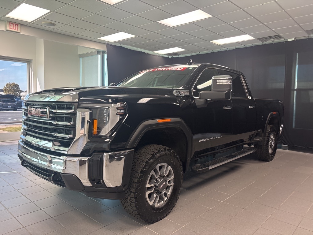 CARFAX One-Owner. Clean CARFAX. Onyx Black SLT 4WD 10-Speed Automatic 6.6L V8 **4WD**, **LOCAL TRADE**, **NON SMOKER**, **ONE OWNER**, **LEATHER INTERIOR**, **KEYLESS ENTRY**, **REMOTE START**, **HEATED / COOLED SEATS**, **RUNNING BOARDS**, **REAR VIEW CAMERA**, **BEDLINER**, **TOWING PACKAGE**, 10-Speed Automatic, 4WD, Jet Black Leather, 10-Way Power Driver Seat Adjuster w/Lumbar, 120-Volt Bed Mounted Power Outlet, 120-Volt Instrument Panel Power Outlet, 2 Charge-Only Rear USB Ports, 2 Charge/Data USB Ports, 2-Speed Active Transfer Case, 6-Speaker Audio System Feature, Alloy wheels, AM/FM radio: SiriusXM with 360L, Apple CarPlay/Android Auto, Auto-dimming Rear-View mirror, Brake assist, Bumpers: chrome, Chrome Surround Grille w/Chrome Insert Bars, Deep-Tinted Glass, Delay-off headlights, Driver door bin, Driver vanity mirror, Dual front side impact airbags, Electric Rear-Window Defogger, Electronic Stability Control, Following Distance Indicator, Forward Collision Alert, Front Center Armrest w/Storage, Front dual zone A/C, Front Pedestrian Braking, Front Rain-Sensing Wipers, Front reading lights, Front wheel independent suspension, GMC Connected Access Capable, Heated Driver & Front Outboard Passenger Seats, Heated front seats, Heavy-Duty 80 Amp Battery, Hitch Guidance w/Hitch View, Illuminated entry, Integrated Trailer Brake Controller, IntelliBeam Automatic High Beam On/Off, Keyless Open & Start, Lane Departure Warning System, LED Cargo Area Lighting, Low tire pressure warning, Manual Tilt-Wheel/Telescoping Steering Column, Memory seat, Occupant sensing airbag, OnStar & GMC Connected Services Capable, Outside temperature display, Panic alarm, Passenger door bin, Passenger vanity mirror, Pickup Box, Power door mirrors, Power Front Passenger Windows w/Express Up/Down, Power passenger seat, Power windows, Preferred Equipment Group 4SA, Premium audio system: Premium GMC Infotainment System, Push Button Start, Rear reading lights, Rear Wheelhouse Liners, Rear window defroster, Remote keyless entry, Remote Vehicle Starter System, Security system, SiriusXM w/360L, Speed control, Speed-sensing steering, Steering Wheel Audio Controls, Suspension Package, Tachometer, Tilt steering wheel, Traction control, Trip computer, Turn signal indicator mirrors, Unauthorized Entry Theft-Deterrent System, Wireless Phone Projection.