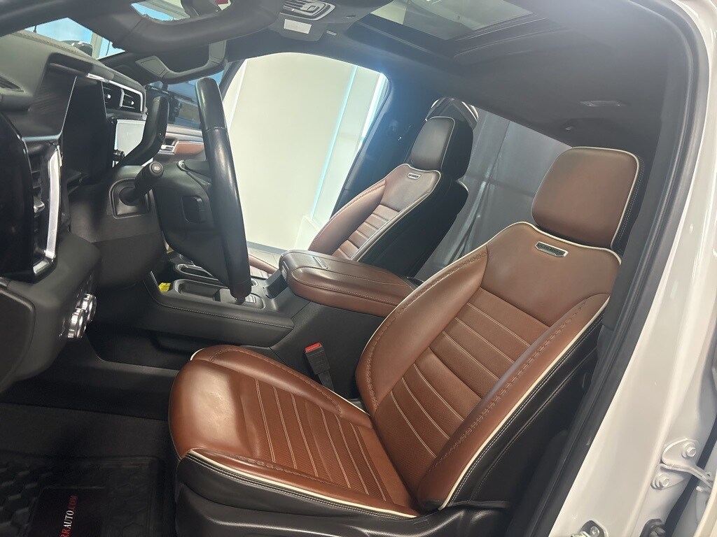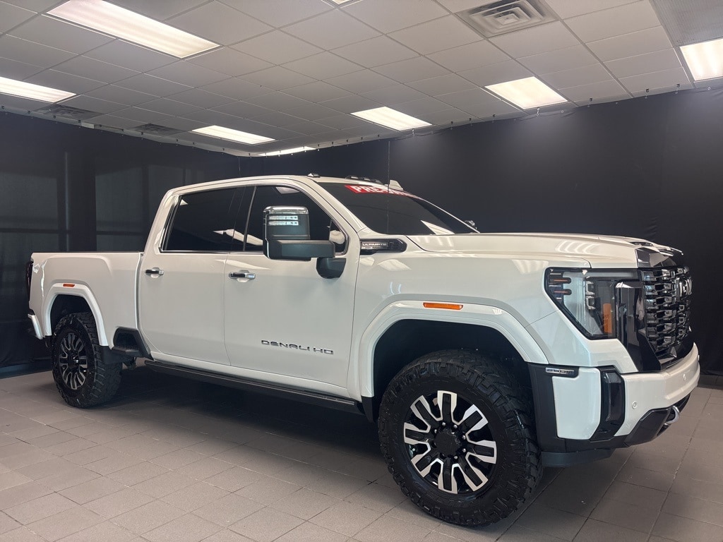 CARFAX One-Owner. Clean CARFAX. White Frost Tricoat Denali Ultimate 4WD 10-Speed Automatic Duramax 6.6L V8 Turbodiesel **NAVIGATION**, **4WD**, **MOONROOF**, **LOCAL TRADE**, **NON SMOKER**, **ONE OWNER**, **LEATHER INTERIOR**, **KEYLESS ENTRY**, **REMOTE START**, **HEATED / COOLED SEATS**, **ADAPTIVE CRUISE CONTROL**, **3" LIFT KIT**, **WE DELIVER ANYWHERE**, **REAR VIEW CAMERA**, **SPRAY IN BEDLINER**, **TOWING PACKAGE**, **TURBO DIESEL POWER**, 10-Speed Automatic, 4WD, Alpine Umber Leather, 120-Volt Bed Mounted Power Outlet, 120-Volt Instrument Panel Power Outlet, 16-Way Power Passenger Seat Adjuster w/Lumbar, 2 Charge-Only Rear USB Ports, 2 Charge/Data USB Ports Inside Center Console, 2 USB Ports, 2-Speed Active Transfer Case, 4-Wheel Disc Brakes, Air Conditioning, Alloy wheels, AM/FM radio: SiriusXM with 360L, Apple CarPlay/Android Auto, Auto High-beam Headlights, Auto-dimming door mirrors, Automatic temperature control, Bed View Camera w/2 Trailer Camera Provisions, Block heater, Body Color Wheel Arch Moldings (LPO), Bose Premium Series 12-Speaker System, Brake assist, Buckle to Drive, Compass, Deep-Tinted Glass, Delay-off headlights, Driver door bin, Driver Memory, Driver vanity mirror, Dual front impact airbags, Electric Rear-Window Defogger, Electronic Stability Control, Floor-Mounted Center Console, Front anti-roll bar, Front Center Armrest, Front dual zone A/C, Front fog lights, Front Rain-Sensing Wipers, Front wheel independent suspension, Fully automatic headlights, Garage door transmitter, Genuine wood dashboard insert, GMC Connected Access Capable, Gooseneck/5th Wheel Prep Package, HD Surround Vision, Heads-Up Display, Heated 2nd Row Outboard Seats, Heated door mirrors, Heated Driver & Front Outboard Passenger Seats, Heated front seats, Heavy Duty Front Spring/Camper Package, High Idle Switch, Hill Descent Control, Hitch Guidance w/Hitch View, Illuminated entry, In-Vehicle Trailering System App, Inside Rearview Auto-Dimming Rear Camera Mirror, Integrated Trailer Brake Controller, IntelliBeam Automatic High Beam On/Off, Keyless Open & Start, Lane Departure Warning System, Leather steering wheel, LED Cargo Area Lighting, LED Smoked Amber Roof Marker Lamps, Low tire pressure warning, Manual Tilt-Wheel/Telescoping Steering Column, Multicolor 15" Diagonal Head-Up Display, Off-Road Suspension, OnStar & GMC Connected Services Capable, Outside temperature display, Panic alarm, Passenger door bin, Pickup Box, Power door mirrors, Power Front Passenger Windows w/Express Up/Down, Power moonroof, Power passenger seat, Power Sliding Rear Window w/Defogger, Power steering, Power Sunroof, Power windows, Preferred Equipment Group 5SB, Push Button Start, Radio: AM/FM w/Premium GMC Infotainment System, Rain sensing wipers, Rear Cross Traffic Alert, Rear reading lights, Rear seat center armrest, Rear step bumper, Rear Wheelhouse Liners, Remote Vehicle Starter System, Safety Alert Seat, Security system, Signature Denali Grille in Vadar Chrome, SiriusXM w/360L, Speed control, Speed-sensing steering, Split folding rear seat, Spray-On Bedliner w/Denali Logo, Steering Wheel Audio Controls, Steering wheel mounted audio controls, Technology Package, Telescoping steering wheel, Traction control, Trailer Cam Provisions & Trailer Viewing Software, Trailer Side Blind Zone Alert, Trailer Tire Pressure Monitor Sensors, Trip computer, Turn signal indicator mirrors, Ultrasonic Front & Rear Park Assist, Unauthorized Entry Theft-Deterrent System, Universal Home Remote, Variably intermittent wipers, Ventilated Driver & Front Passenger Seats, Ventilated front seats, Voltmeter, Wheels: 20" Ultra-Bright Machined Aluminum, Wireless Charging, Wireless Phone Projection, X31 Off-Road Package.