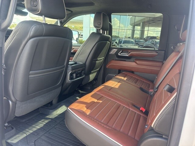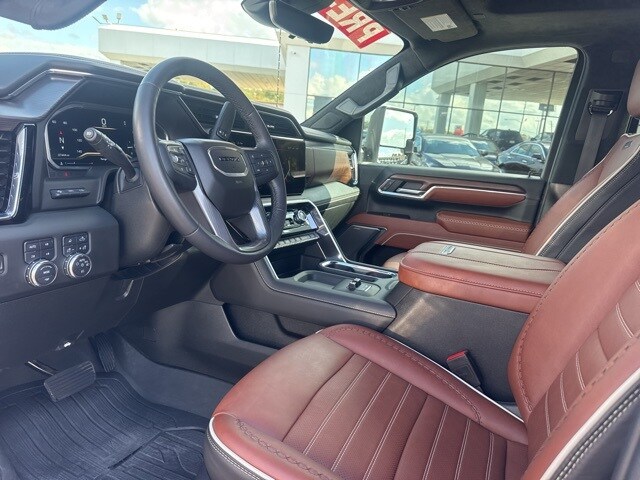 This 2024 GMC Sierra 2500HD comes equipped with Gooseneck/5th Wheel Prep Package, Hitch Package (LPO), Preferred Equipment Group 5SB (120-Volt Bed Mounted Power Outlet, 120-Volt Instrument Panel Power Outlet, 2 Charge-Only Rear USB Ports, 2 Charge/Data USB Ports Inside Center Console, 2 USB Ports, 2-Speed Active Transfer Case, Bed View Camera w/2 Trailer Camera Provisions, Bose Premium Series 12-Speaker System, Deep-Tinted Glass, Electric Rear-Window Defogger, Floor-Mounted Center Console, Front Rain-Sensing Wipers, GMC Connected Access Capable, HD Surround Vision, Heated 2nd Row Outboard Seats, Heated Driver & Front Outboard Passenger Seats, Integrated Trailer Brake Controller, Keyless Open & Start, LED Cargo Area Lighting, LED Smoked Amber Roof Marker Lamps, Manual Tilt-Wheel/Telescoping Steering Column, OnStar & GMC Connected Services Capable, Power Front Passenger Windows w/Express Up/Down, Power Sliding Rear Window w/Defogger, Power Sunroof, Push Button Start, Rear Cross Traffic Alert, Rear Wheelhouse Liners, Remote Vehicle Starter System, Safety Alert Seat, Signature Denali Grille in Vadar Chrome, SiriusXM w/360L, Spray-On Bedliner w/Denali Logo, Steering Wheel Audio Controls, Trailer Cam Provisions & Trailer Viewing Software, Trailer Side Blind Zone Alert, Trailer Tire Pressure Monitor Sensors, Ultrasonic Front & Rear Park Assist, Unauthorized Entry Theft-Deterrent System, Universal Home Remote, Ventilated Driver & Front Passenger Seats, Wireless Charging, and Wireless Phone Projection), Technology Package (Inside Rearview Auto-Dimming Rear Camera Mirror and Multicolor 15" Diagonal Head-Up Display), X31 Off-Road Package (Hill Descent Control), 10-Speed Automatic, 4WD, Alpine Umber Leather, 12 Speakers, 16-Way Power Driver Seat Adjuster w/Lumbar, 16-Way Power Passenger Seat Adjuster w/Lumbar, 220-Amp Alternator, 3.42 Axle Ratio, 4-Wheel Disc Brakes, ABS brakes, Air Conditioning, All-Weather Floor Liners (LPO), Alloy wheels, AM/FM radio: SiriusXM with 360L, Apple CarPlay/Android Auto, Auto High-beam Headlights, Auto-dimming door mirrors, Auto-dimming Rear-View mirror, Automatic Emergency Braking, Automatic temperature control, Block heater, Brake assist, Buckle to Drive, Bumpers: body-color, Compass, Console-Mounted Safe (LPO), Delay-off headlights, Driver door bin, Driver Memory, Driver vanity mirror, Dual front impact airbags, Dual front side impact airbags, Dual Heavy-Duty 70 Amp Battery, Electronic Stability Control, Emergency communication system: OnStar and GMC connected services capable, Following Distance Indicator, Forward Collision Alert, Front anti-roll bar, Front Bucket Seats, Front Center Armrest, Front dual zone A/C, Front fog lights, Front License Plate Kit, Front Pedestrian Braking, Front reading lights, Front wheel independent suspension, Full Grain Leather Seat Trim, Fully automatic headlights, Garage door transmitter, Genuine wood dashboard insert, Genuine wood door panel insert, GMC MultiPro Tailgate Step Lights (LPO), Heads-Up Display, Heated door mirrors, Heated front seats, Heated rear seats, Heated steering wheel, High Idle Switch, Hitch Guidance w/Hitch View, Illuminated entry, In-Vehicle Trailering System App, IntelliBeam Automatic High Beam On/Off, Lane Departure Warning System, Leather steering wheel, Low tire pressure warning, Memory seat, Occupant sensing airbag, Off-Road Suspension, Outside temperature display, Overhead airbag, Overhead console, Panic alarm, Passenger door bin, Passenger vanity mirror, Pickup Box, Power door mirrors, Power driver seat, Power moonroof, Power passenger seat, Power steering, Power windows, Premium audio system: Premium GMC Infotainment System, Radio: AM/FM w/Premium GMC Infotainment System, Rain sensing wipers, Rear reading lights, Rear seat center armrest, Rear step bumper, Rear window defroster, Remote keyless entry, Security system, Speed control, Speed-sensing steering, Split folding rear seat, Steering wheel mounted audio controls, Tachometer, Telescoping