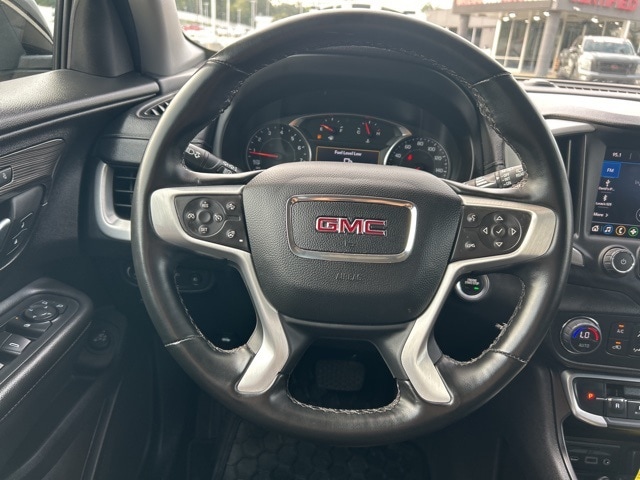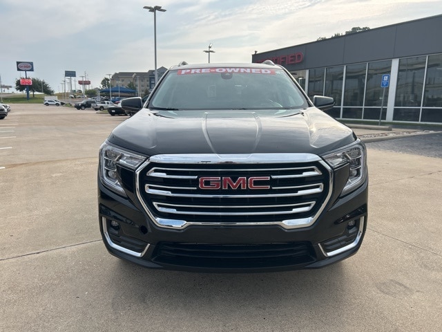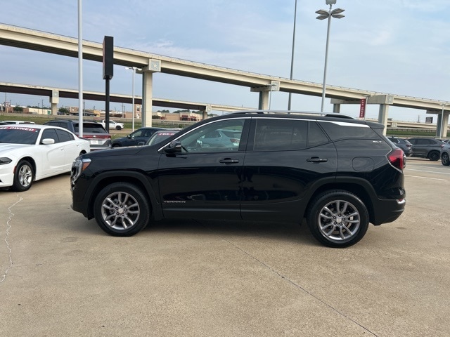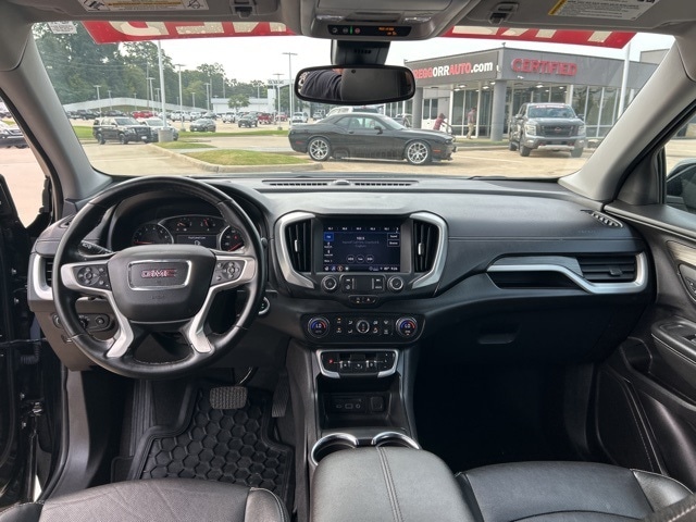This 2024 GMC Terrain comes equipped with the following features Preferred Equipment Group 4SA, AWD, 2 USB Data Ports, 2 USB Data Ports w/SD Card Reader, 3.47 Final Drive Axle Ratio, 4-Wheel Disc Brakes, 6 Speakers, 6-Speaker Audio System Feature, 6-Way Power Front Passenger Seat, 8-Way Power Driver Seat Adjuster, ABS brakes, Air Conditioning, Alloy wheels, AM/FM radio: SiriusXM, Auto High-beam Headlights, Auto-dimming Rear-View mirror, Automatic temperature control, Bluetooth® For Phone, Brake assist, Bumpers: body-color, Compass, Delay-off headlights, Driver & Front Passenger Heated Seats, Driver door bin, Driver vanity mirror, Dual front impact airbags, Dual front side impact airbags, Electronic Stability Control, Emergency communication system: OnStar and GMC connected services capable, Four wheel independent suspension, Front anti-roll bar, Front Bucket Seats, Front Center Armrest, Front dual zone A/C, Front fog lights, Front Passenger 2-Way Power Lumbar, Front reading lights, Fully automatic headlights, Garage door transmitter, Heated door mirrors, Heated front seats, Heated steering wheel, Illuminated entry, Low tire pressure warning, Memory seat, Occupant sensing airbag, Outside temperature display, Overhead airbag, Overhead console, Panic alarm, Passenger door bin, Passenger vanity mirror, Perforated Leather-Appointed Seat Trim, Power door mirrors, Power Driver Lumbar Control, Power driver seat, Power Liftgate, Power passenger seat, Power steering, Power windows, Radio data system, Radio: GMC Infotainment Audio System w/8" Display, Rear anti-roll bar, Rear seat center armrest, Rear window defroster, Rear window wiper, Remote keyless entry, Roof rack: rails only, Security system, SiriusXM, Speed control, Speed-sensing steering, Split folding rear seat, Spoiler, Steering wheel mounted audio controls, Tachometer, Telescoping steering wheel, Tilt steering wheel, Traction control, Trip computer, Turn signal indicator mirrors, Variably intermittent wipers, Wheels: 18" x 7" Silver Painted Aluminum, and Wireless Apple CarPlay/Wireless Android Auto. AWD. CARFAX One-Owner. 2024 GMC Terrain SLT AWD 1.5L DOHC