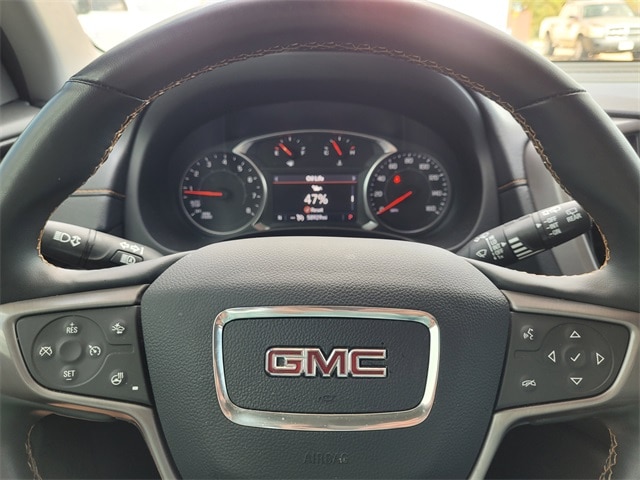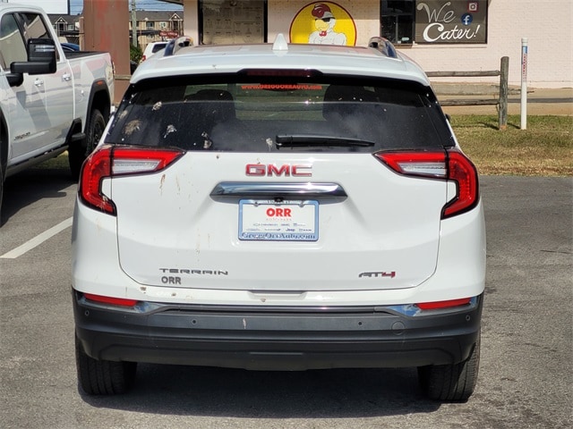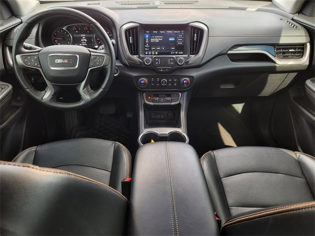 This 2024 GMC Terrain comes equipped with Preferred Equipment Group 4SC, AWD, Navigation system: GMC Connected Navigation, 2 USB Data Ports, 2 USB Data Ports w/SD Card Reader, 3.47 Final Drive Axle Ratio, 4-Wheel Disc Brakes, 6 Speakers, 6-Speaker Audio System Feature, 6-Way Power Front Passenger Seat, 8-Way Power Driver Seat Adjuster, ABS brakes, Air Conditioning, Alloy wheels, AM/FM radio: SiriusXM, Auto High-beam Headlights, Auto-dimming Rear-View mirror, Automatic temperature control, Bluetooth® For Phone, Brake assist, Bumpers: body-color, Compass, Delay-off headlights, Driver & Front Passenger Heated Seats, Driver door bin, Driver vanity mirror, Dual front impact airbags, Dual front side impact airbags, Electronic Stability Control, Emergency communication system: OnStar and GMC connected services capable, Four wheel independent suspension, Front anti-roll bar, Front Bucket Seats, Front Center Armrest, Front dual zone A/C, Front fog lights, Front Passenger 2-Way Power Lumbar, Front reading lights, Fully automatic headlights, Garage door transmitter, Heated door mirrors, Heated front seats, Heated steering wheel, Illuminated entry, Low tire pressure warning, Memory seat, Occupant sensing airbag, Outside temperature display, Overhead airbag, Overhead console, Panic alarm, Passenger door bin, Passenger vanity mirror, Perforated Leather-Appointed Seat Trim w/AT4 Logo, Power door mirrors, Power Driver Lumbar Control, Power driver seat, Power Liftgate, Power passenger seat, Power steering, Power windows, Radio data system, Radio: GMC Infotainment Audio System w/8" Display, Rear anti-roll bar, Rear seat center armrest, Rear window defroster, Rear window wiper, Remote keyless entry, Roof rack: rails only, Security system, SiriusXM, Skyscape Power Sunroof w/Power Sunscreen, Speed control, Speed-sensing steering, Split folding rear seat, Spoiler, Steering wheel mounted audio controls, Tachometer, Telescoping steering wheel, Tilt steering wheel, Traction control, Trip computer, Turn signal indicator mirrors, Variably intermittent wipers, Wheels: 17" x 7" Gloss Black Aluminum, and Wireless Apple CarPlay/Wireless Android Auto. CARFAX One-Owner. 23/28 City/Highway MPG AWD, Navigation system: GMC Connected Navigation, Preferred Equipment Group 4SC.