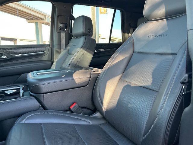 This 2024 GMC Yukon comes equipped with the following features License Plate Front Mounting Package, Preferred Equipment Group 5SA (12-Way Power Seat Adjusters, 15" Diagonal Multi-Color Head-Up Display, 2 Presets For Outside Rearview Mirrors, 3rd Row 60/40 Power-Folding Split-Bench Seat, Adaptive Cruise Control, Bose 14-Speaker Surround w/CenterPoint, Bright Front & Rear Door Sill Plates, Chrome Door Handles w/Body-Color Strip, Dual Exhaust System, Enhanced Automatic Emergency Braking, Floor Console, Galvano Bodyside Moldings, Hands-Free Power Programmable Rear Liftgate, HD Surround Vision, Heated 2nd Row Outboard Position Seats, Heated Driver & Front Passenger Seats, Heated Steering Wheel, Hill Descent Control, Inside Rear-View Auto-Dimming Mirror, Outside Heated Power-Adjustable Mirrors, Perforated Heated & Ventilated Dr & Frt Pass Seats, Power Release 2nd Row Bucket Seats, Power Tilt & Telescopic Steering Column, Rear Pedestrian Alert, Safety Alert Seat, Universal Home Remote, and Wireless Charging), 4WD, 14 Speakers, 3.23 Rear Axle Ratio, 3rd row seats: split-bench, 4-Wheel Disc Brakes, ABS brakes, Adaptive suspension, Air Conditioning, Alloy wheels, AM/FM radio: SiriusXM with 360L, AM/FM Stereo, Apple CarPlay/Android Auto, Auto High-beam Headlights, Auto-dimming door mirrors, Auto-dimming Rear-View mirror, Auto-leveling suspension, Automatic Emergency Braking, Automatic temperature control, Bodyside moldings, Brake assist, Bumpers: body-color, Compass, Delay-off headlights, Driver door bin, Driver vanity mirror, Dual front impact airbags, Dual front side impact airbags, Dual-Pane Panoramic Power Sunroof, Electronic Stability Control, Emergency communication system: OnStar and GMC connected services capable, Following Distance Indicator, Forward Collision Alert, Four wheel independent suspension, Front & Rear Park Assist, Front anti-roll bar, Front Bucket Seats, Front Center Armrest, Front dual zone A/C, Front fog lights, Front Pedestrian Braking, Front reading lights, Fully automatic headlights, Garage door transmitter, Heads-Up Display, Heated door mirrors, Heated front seats, Heated rear seats, Heated steering wheel, Illuminated entry, IntelliBeam Automatic High Beam On/Off, Lane Change Alert w/Side Blind Zone Alert, Lane Keep Assist w/Lane Departure Warning, Low tire pressure warning, Magnetic Ride Control Suspension, Memory seat, Navigation System, Occupant sensing airbag, Outside temperature display, Overhead airbag, Overhead console, Panic alarm, Passenger door bin, Passenger vanity mirror, Perforated Leather Seating Surfaces, Power door mirrors, Power driver seat, Power Liftgate, Power passenger seat, Power steering, Power windows, Power-Retractable Assist Steps, Rain sensing wipers, Rear air conditioning, Rear anti-roll bar, Rear Cross Traffic Alert, Rear reading lights, Rear window defroster, Rear window wiper, Remote keyless entry, Roof rack: rails only, Security system, SiriusXM w/360L, Speed control, Speed-sensing steering, Split folding rear seat, Spoiler, Steering wheel memory, Steering wheel mounted audio controls, Tachometer, Telescoping steering wheel, Tilt steering wheel, Traction control, Trip computer, Turn signal indicator mirrors, Variably intermittent wipers, Ventilated front seats, Voltmeter, Wheel Locks (Set of 4) (LPO), Wheels: 20" x 9" 6-Spoke Polished Aluminum, and Wheels: 22" x 9" Bright Machined Aluminum. 4WD. Clean CARFAX. CARFAX One-Owner. 2024 GMC Yukon Denali 4WD EcoTec3 6.2L V8