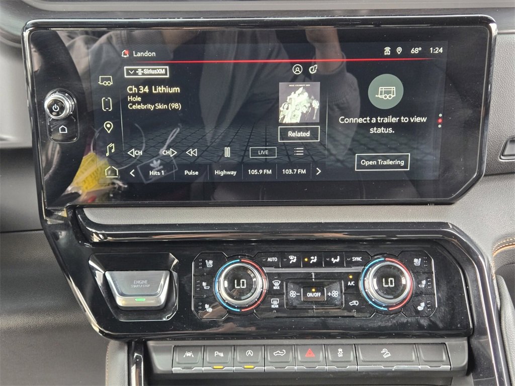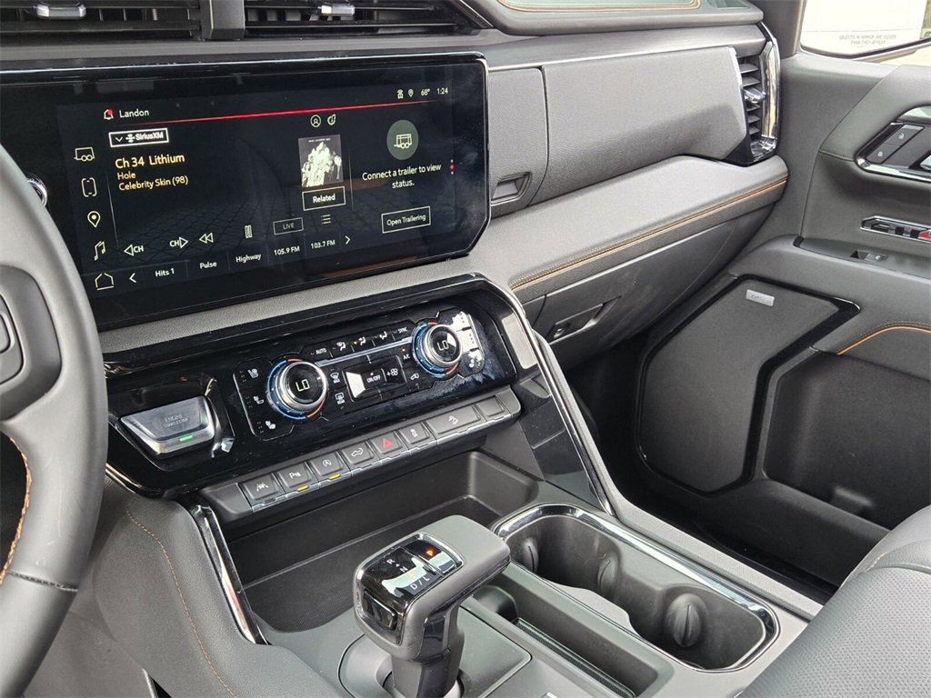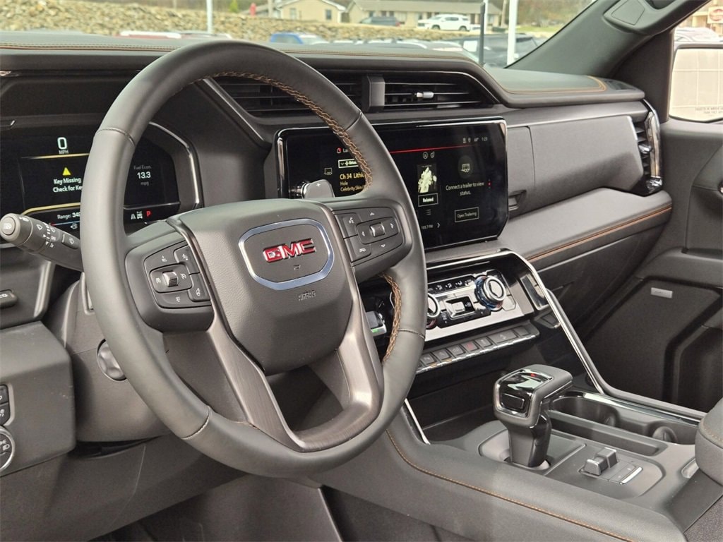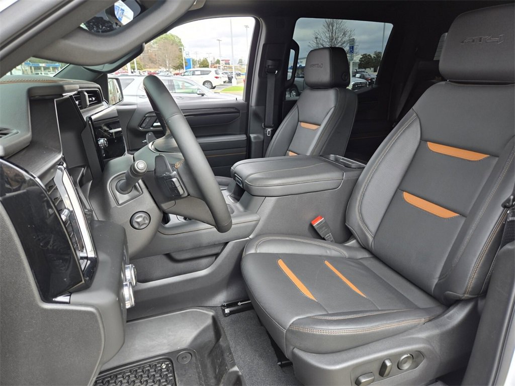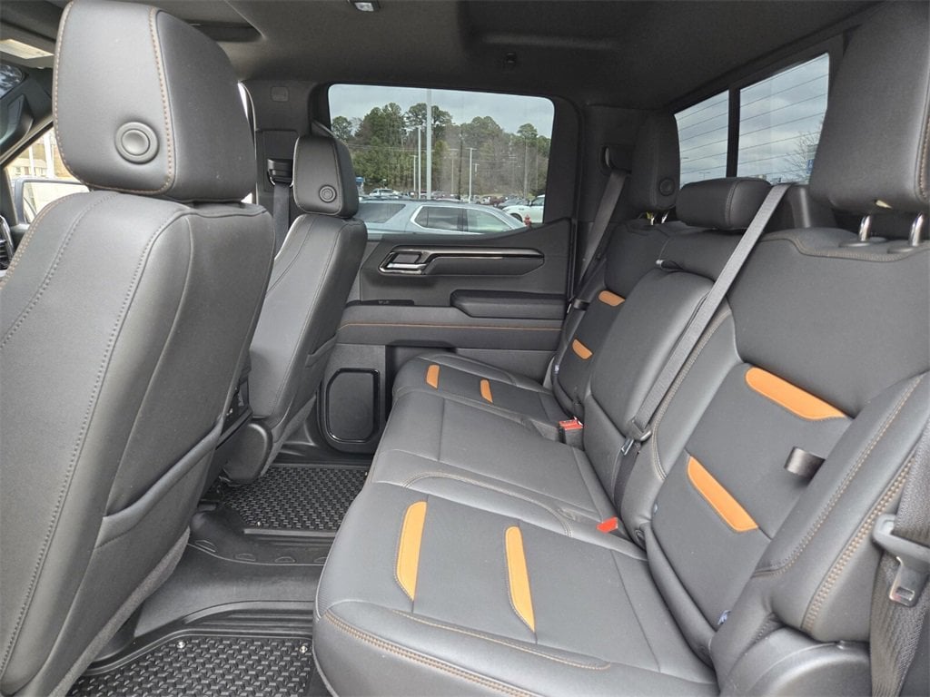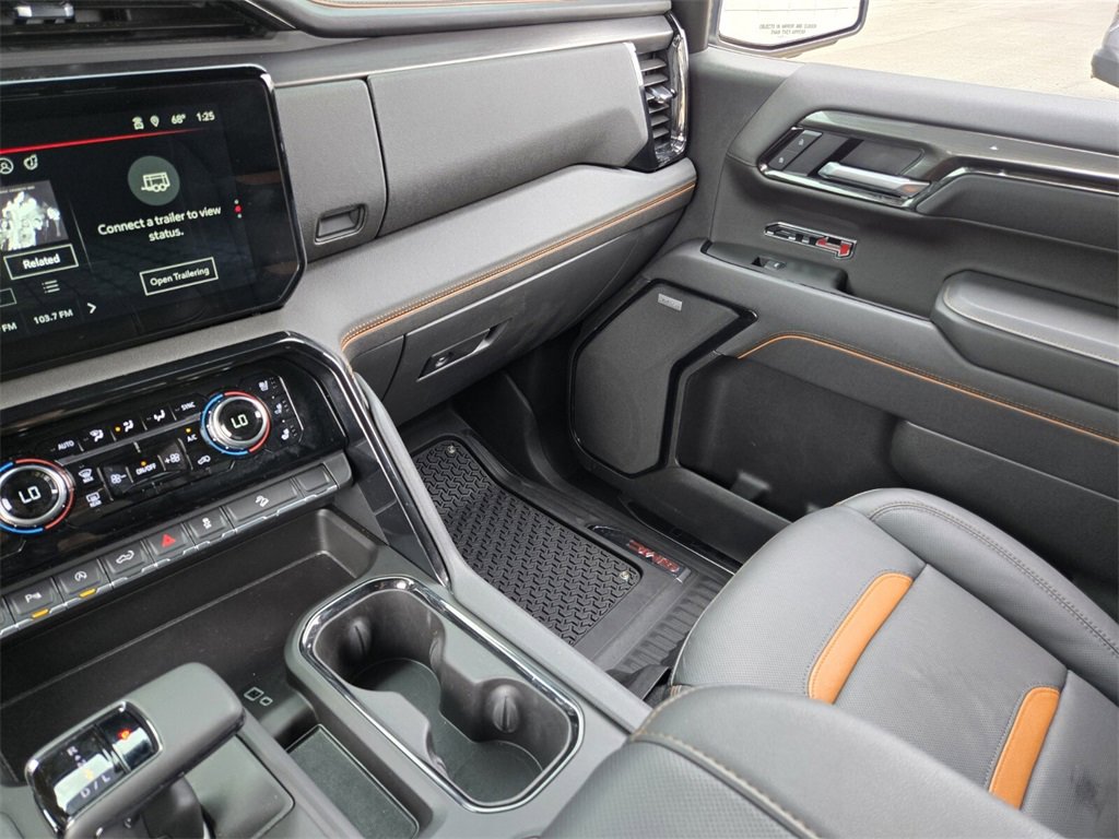 This 2025 GMC Sierra 1500 comes equipped with, 10-Speed Automatic, 4WD, Jet Black With Kalahari Accents Leather, 10-Way Power Driver Seat Adjuster w/Lumbar, 10-Way Power Passenger Seat Adjuster w/Lumbar, 120-Volt Bed Mounted Power Outlet, 120-Volt Interior Power Outlet, 170 Amp Alternator, 2 Charge/Data USB Ports Inside Center Console, 2 Type-C Charge-Only Rear USB Ports, 2 USB Ports, 220 Amp Alternator, 3.23 Rear Axle Ratio, 4-Wheel Disc Brakes, 7 Speakers, ABS brakes, Air Conditioning, Alloy wheels, AM/FM radio: SiriusXM with 360L, Apple CarPlay/Android Auto, AT4 Preferred Package, AT4 Premium Package, Auto High-beam Headlights, Auto-dimming door mirrors, Auto-dimming Rear-View mirror, Auto-Locking Rear Differential, Automatic Emergency Braking, Automatic temperature control, Auxiliary External Transmission Oil Cooler, Bed View Camera, Black Chrome Grille Insert Bars, Block heater, Brake assist, Buckle to Drive, Bumpers: body-color, Color-Keyed Carpeting Floor Covering, Compass, Deep-Tinted Glass, Delay-off headlights, Driver door bin, Driver Memory, Driver vanity mirror, Dual Active Exhaust, Dual front impact airbags, Dual front side impact airbags, Electric Rear-Window Defogger, Electronic Stability Control, Emergency communication system: OnStar, Engine Block Heater, External Engine Oil Cooling, Floor-Mounted Center Console, Following Distance Indicator, Forward Collision Alert, Front anti-roll bar, Front Bucket Seats, Front Center Armrest, Front dual zone A/C, Front fog lights, Front License Plate Kit, Front Pedestrian Braking, Front Prem Floor Liners w/Removable Carpet Insert, Front Rain-Sensing Wipers, Front reading lights, Front wheel independent suspension, Fully automatic headlights, HD Surround Vision, Heated 2nd Row Outboard Seats, Heated door mirrors, Heated Driver & Front Outboard Passenger Seating, Heated front seats, Heated rear seats, Heated steering wheel, Heavy-Duty Air Filter, Hill Descent Control, Hitch Guidance, Hitch View, Illuminated entry, In-Vehicle Trailering System App, Integrated Trailer Brake Controller, IntelliBeam Automatic High Beam On/Off, Keyless Open & Start, Lane Keep Assist w/Lane Departure Warning, LED Cargo Area Lighting, Low tire pressure warning, Memory seat, Multicolor 15" Diagonal Head-Up Display, Navigation System, Occupant sensing airbag, Off-Road High Clearance Step (LPO), Off-Road Suspension, OnStar Services Capable, Outside temperature display, Overhead airbag, Overhead console, Panic alarm, Passenger door bin, Passenger vanity mirror, Perforated Front Leather Seat Trim, Perimeter Lighting, Power Door Locks, Power door mirrors, Power driver seat, Power Front Passenger Windows w/Express Up/Down, Power Front Windows w/Driver Express Up/Down, Power passenger seat, Power Rake & Telescoping Steering Column, Power Rear Windows w/Express Down, Power Sliding Rear Window w/Rear Defogger, Power steering, Power Sunroof, Power windows, Preferred Equipment Group 4SB, Premium Bose 7-Speaker Sound System, Push Button Start, Radio data system, Radio: Premium GMC Infotainment Audio System, Rain sensing wipers, Rear Camera Mirror, Rear Cross Traffic Braking, Rear Pedestrian Detection, Rear Prem Floor Liners w/Removable Carpet Insert, Rear reading lights, Rear seat center armrest, Rear step bumper, Rear Wheelhouse Liners, Rear window defroster, Red Recovery Hooks, Remote keyless entry, Remote Vehicle Starter System, Safety Alert Seat, Security system, SiriusXM w/360L Trial Subscription, Speed control, Speed-sensing steering, Split folding rear seat, Spray-On Pickup Bedliner w/GMC Logo, Steering Wheel Audio Controls, Steering wheel mounted audio controls, Tachometer, Technology Package, Telescoping steering wheel, Theft Deterrent System (Unauthorized Entry), Tilt steering wheel, Traction control, Trailer Camera Provisions, Trailer Side Blind Zone Alert, Trailering Package, Trip computer, Ultrasonic Front & Rear Park Assist, Universal Home Remote, Variably intermittent wipers, Ventilated Driver & F