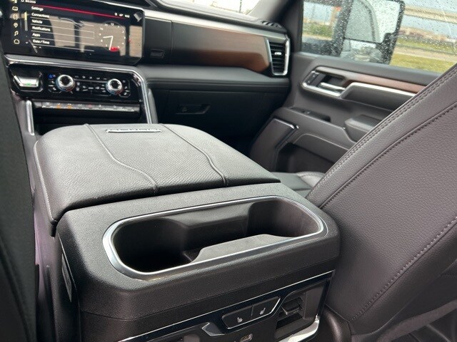 This 2025 GMC Sierra 2500HD comes equipped with the following features Denali Reserve Package (Power Sunroof), Gooseneck/5th Wheel Prep Package, Hitch Package (LPO), Preferred Equipment Group 5SA (120-Volt Bed Mounted Power Outlet, 120-Volt Instrument Panel Power Outlet, 2 Charge-Only Rear USB Ports, 2 Charge/Data USB Ports Inside Center Console, 2 USB Ports, 2-Speed Active Transfer Case, Bed View Camera w/2 Trailer Camera Provisions, Bose Premium 7-Speaker Sound System, Deep-Tinted Glass, Electric Rear-Window Defogger, Floor-Mounted Center Console, Front Rain-Sensing Wipers, HD Surround Vision, Heated 2nd Row Outboard Seats, Heated Driver & Front Outboard Passenger Seats, Keyless Open & Start, LED Cargo Area Lighting, LED Smoked Amber Roof Marker Lamps, Manual Tilt-Wheel/Telescoping Steering Column, OnStar Services Capable, Polished Exhaust Tip, Power Front Passenger Windows w/Express Up/Down, Power Sliding Rear Window w/Defogger, Push Button Start, Rear Cross Traffic Alert, Rear Wheelhouse Liners, Remote Vehicle Starter System, Safety Alert Seat, Signature Chrome Denali Grille, SiriusXM w/360L Trial Subscription, Spray-On Pickup Bedliner w/GMC Logo, Steering Wheel Audio Controls, Trailer Cam Provisions & Trailer Viewing Software, Trailer Side Blind Zone Alert, Ultrasonic Front & Rear Park Assist, Unauthorized Entry Theft-Deterrent System, Universal Home Remote, Ventilated Driver & Front Passenger Seats, Wireless Charging, and Wireless Phone Projection), Technology Package (Inside Rearview Auto-Dimming Rear Camera Mirror and Multicolor 15" Diagonal Head-Up Display), X31 Off-Road Package (Hill Descent Control), 10-Speed Automatic, 4WD, Jet Black w/Perf Leather-Appointed Front Outboard Seat Trim, 12-Way Power Driver Seat Adjuster w/Lumbar, 12-Way Power Passenger Seat Adjuster w/Lumbar, 220-Amp Alternator, 3.42 Axle Ratio, 3.73 Rear Axle Ratio, 4-Wheel Disc Brakes, 7 Speakers, ABS brakes, Air Conditioning, Alloy wheels, AM/FM radio: SiriusXM with 360L, Apple CarPlay/Android Auto, Auto High-beam Headlights, Auto-dimming door mirrors, Auto-dimming Rear-View mirror, Automatic Emergency Braking, Automatic temperature control, Brake assist, Buckle to Drive, Bumpers: body-color, Compass, Delay-off headlights, Driver door bin, Driver Memory, Driver vanity mirror, Dual front impact airbags, Dual front side impact airbags, Electronic Stability Control, Emergency communication system: OnStar, Engine Block Heater, Exhaust Brake, Following Distance Indicator, Forge Perforated Leather-Appointed Front Seat Trim, Forward Collision Alert, Front anti-roll bar, Front Bucket Seats, Front Center Armrest, Front dual zone A/C, Front fog lights, Front License Plate Kit, Front Pedestrian Braking, Front reading lights, Front wheel independent suspension, Fully automatic headlights, Garage door transmitter, Genuine wood dashboard insert, Genuine wood door panel insert, Heated door mirrors, Heated front seats, Heated rear seats, Heated steering wheel, Heavy-Duty 80 Amp Battery, Hitch Guidance w/Hitch View, Illuminated entry, In-Vehicle Trailering System App, IntelliBeam Automatic High Beam On/Off, Lane Departure Warning System, Low tire pressure warning, Memory seat, Occupant sensing airbag, Off-Road Suspension, Outside temperature display, Overhead airbag, Overhead console, Panic alarm, Passenger door bin, Passenger vanity mirror, Pickup Box, Power door mirrors, Power driver seat, Power passenger seat, Power steering, Power windows, Power-Retractable Assist Steps, Radio: AM/FM w/Premium GMC Infotainment System, Rain sensing wipers, Rear reading lights, Rear seat center armrest, Rear step bumper, Rear window defroster, Remote keyless entry, Security system, Speed control, Speed-sensing steering, Split folding rear seat, Steering wheel mounted audio controls, Tachometer, Telescoping steering wheel, Tilt steering wheel, Traction control, Trip computer, Turn signal indicator mirrors, Variably intermittent wipers, Ventilated front seats, Voltmeter, Wheels: 20