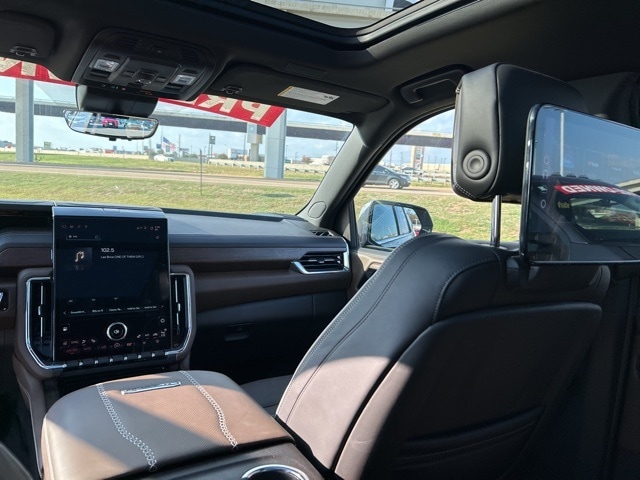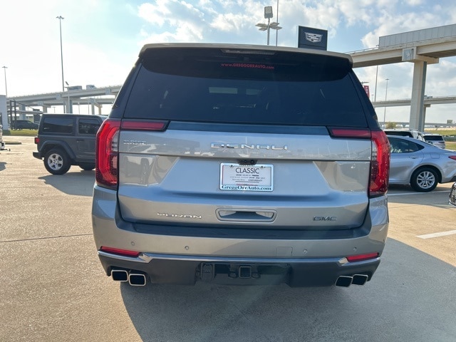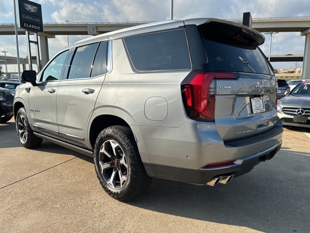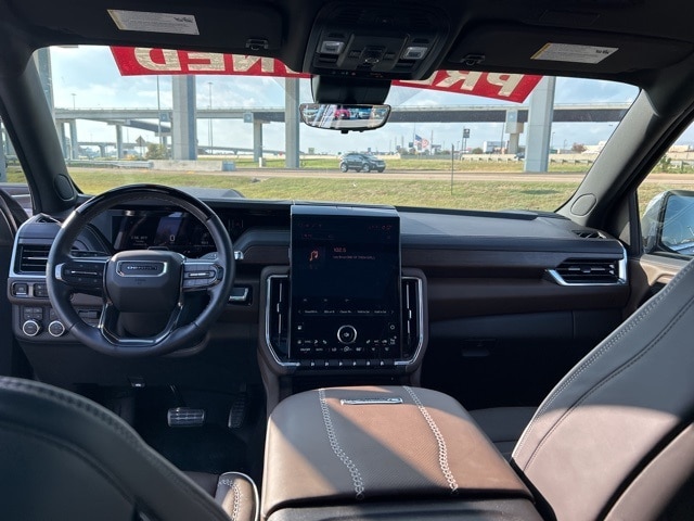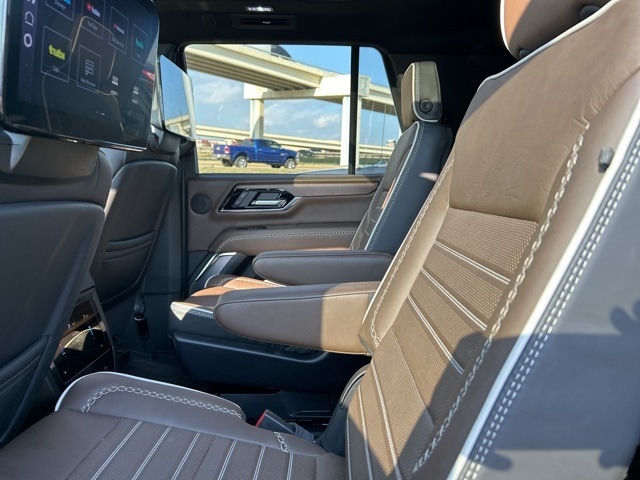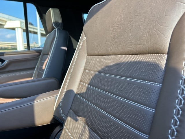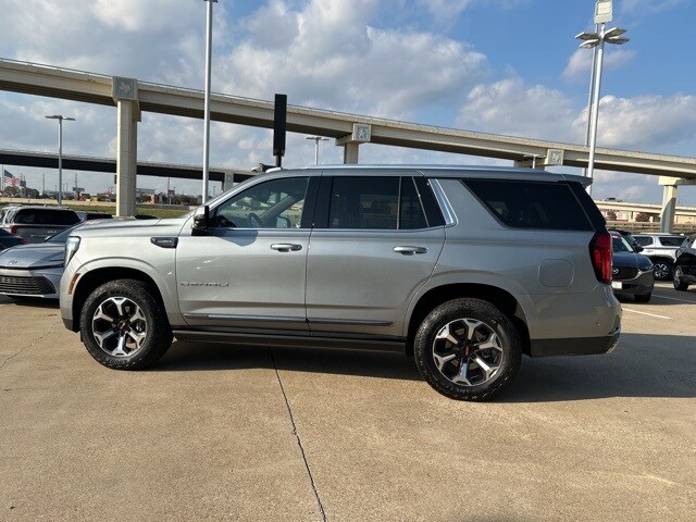 This 2025 GMC Yukon comes equipped with the following features Advanced Security Package (Glass Breakage Sensor, Theft-Deterrent Alarm System, Vehicle Inclination Sensor, and Vehicle Interior Movement Sensor), Advanced Technology Package (Driver Attention Assist, Rear Seat Media System, and Super Cruise), License Plate Front Mounting Package, Max Trailering Package (Extra Capacity Cooling System, Hitch View, Integrated Trailer Brake Controller, and Smart Trailer Integration Indicator), Preferred Equipment Group 5SB (15" Diagonal Multi-Color Head-Up Display, 4-Spoke Leather-Wrapped Steering Wheel, 4-Way Power Driver Lumbar Seat Adjuster, 4-Way Power Front Passenger Lumbar Seat Adjuster, 8" Diagonal Rear Touchscreen Climate Control, AutoSense Hands-Free Power Liftgate, Driver 2-Way Power Upper Shoulder, Driver Power Massage Seat, Dual Exhaust System, Dual-Pane Panoramic Power Sunroof, Front Passenger 2-Way Power Upper Shoulder, Front Passenger Power Massage Seat, Hill Descent Control, Magnetic Ride Control Suspension, Power Release 2nd Row Bucket Seats, Power-Retractable Assist Steps, and Vader Bodyside Moldings), 4WD, 18 Speakers, 3.23 Rear Axle Ratio, 3rd row seats: split-bench, 4-Wheel Disc Brakes, ABS brakes, Adaptive suspension, Air Conditioning, Air Ride Adaptive Suspension, Alloy wheels, AM/FM radio: SiriusXM with 360L, Apple CarPlay/Android Auto, Audio memory, Auto High-beam Headlights, Auto-dimming door mirrors, Auto-dimming Rear-View mirror, Auto-leveling suspension, Automatic temperature control, Bodyside moldings, Brake assist, Bumpers: body-color, Compass, Delay-off headlights, Driver door bin, Driver vanity mirror, Dual front impact airbags, Dual front side impact airbags, Electronic Stability Control, Emergency communication system: OnStar and GMC connected services capable, Exterior Parking Camera Rear, Four wheel independent suspension, Front anti-roll bar, Front Bucket Seats, Front Center Armrest, Front dual zone A/C, Front fog lights, Front reading lights, Full Grain Leather Seats, Fully automatic headlights, Garage door transmitter, Headphones, Heads-Up Display, Heated door mirrors, Heated front seats, Heated rear seats, Heated steering wheel, Illuminated entry, Leather steering wheel, Low tire pressure warning, Memory seat, Navigation system: GMC Connected Navigation, Occupant sensing airbag, Outside temperature display, Overhead airbag, Overhead console, Panic alarm, Passenger door bin, Passenger vanity mirror, Performance Air Intake System, Power door mirrors, Power driver seat, Power Liftgate, Power moonroof, Power passenger seat, Power steering, Power windows, Rain sensing wipers, Rear air conditioning, Rear anti-roll bar, Rear audio controls, Rear reading lights, Rear window defroster, Rear window wiper, Remote keyless entry, Security system, Speed control, Speed-sensing steering, Split folding rear seat, Spoiler, Steering wheel memory, Steering wheel mounted audio controls, Tachometer, Telescoping steering wheel, Tilt steering wheel, Traction control, Trip computer, Turn signal indicator mirrors, Variably intermittent wipers, Ventilated front seats, and Voltmeter. 4WD. Clean CARFAX. 2025 GMC Yukon Denali Ultimate 4WD EcoTec3 6.2L V8