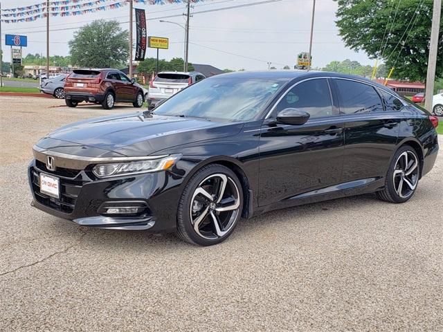 Recent Arrival! This 2019 Honda Accord comes equipped with, Black w/Leather-Trimmed Seats, 4-Wheel Disc Brakes, 8 Speakers, ABS brakes, Air Conditioning, Alloy wheels, AM/FM radio: SiriusXM, Apple CarPlay/Android Auto, Auto High-beam Headlights, Automatic temperature control, Brake assist, Bumpers: body-color, Cloth Seat Trim, Delay-off headlights, Driver door bin, Driver vanity mirror, Dual front impact airbags, Dual front side impact airbags, Electronic Stability Control, Emergency communication system: HondaLink, Exterior Parking Camera Rear, Forward collision: Collision Mitigation Braking System (CMBS) + FCW mitigation, Four wheel independent suspension, Front anti-roll bar, Front Bucket Seats, Front Center Armrest, Front dual zone A/C, Front fog lights, Front reading lights, Fully automatic headlights, Heated door mirrors, Heated Front Bucket Seats, Heated front seats, Illuminated entry, Knee airbag, Leather Shift Knob, Leather steering wheel, Low tire pressure warning, Occupant sensing airbag, Outside temperature display, Overhead airbag, Overhead console, Panic alarm, Passenger door bin, Passenger vanity mirror, Power door mirrors, Power driver seat, Power moonroof, Power steering, Power windows, Radio data system, Radio: 180-Watt AM/FM Audio System, Rear anti-roll bar, Rear seat center armrest, Rear window defroster, Remote keyless entry, Security system, Speed control, Speed-sensing steering, Speed-Sensitive Wipers, Split folding rear seat, Spoiler, Steering wheel mounted audio controls, Tachometer, Telescoping steering wheel, Tilt steering wheel, Traction control, Trip computer, Variably intermittent wipers, Wheels: 19' Machine-Finished Alloy w/Black Inserts, Black w/Leather-Trimmed Seats. Odometer is 4859 miles below market average! CARFAX One-Owner. Crystal Black Pearl 2019 Honda Accord Sport 2.0T FWD 10-Speed Automatic I4 DOHC 16V Turbocharged 22/32 City/Highway MPG Awards: * JD Power Automotive Performance, Execution and Layout (APEAL) Study * ALG Residual Value Awards, Residual Value Awards
