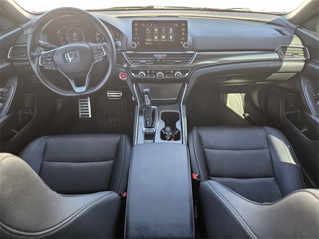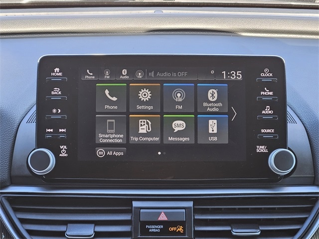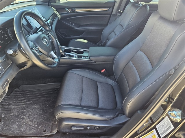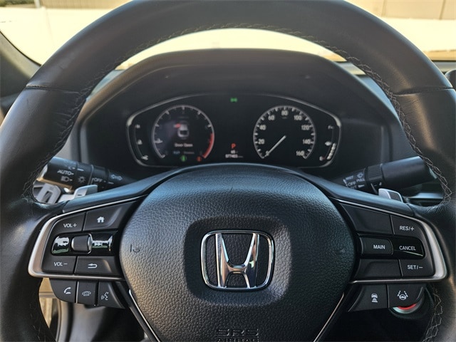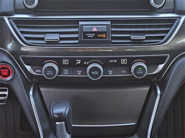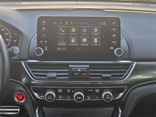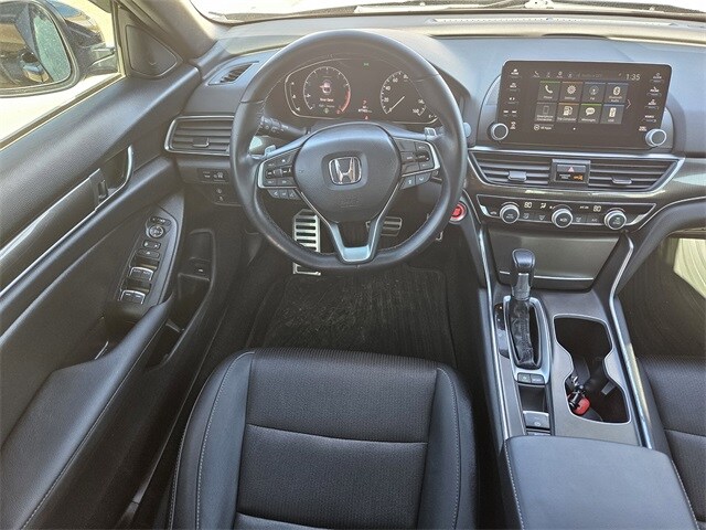 This 2020 Honda Accord comes equipped with Black Cloth, 4-Wheel Disc Brakes, 8 Speakers, ABS brakes, Adaptive Cruise Control: Adaptive Cruise Control (ACC) with Low-Speed Follow, Air Conditioning, Alloy wheels, AM/FM radio, Apple CarPlay/Android Auto, Auto High-beam Headlights, Automatic temperature control, Brake assist, Bumpers: body-color, Cloth Seat Trim, Delay-off headlights, Driver door bin, Driver vanity mirror, Dual front impact airbags, Dual front side impact airbags, Electronic Stability Control, Emergency communication system: HondaLink, Exterior Parking Camera Rear, Forward collision: Collision Mitigation Braking System (CMBS) + FCW mitigation, Four wheel independent suspension, Front anti-roll bar, Front Bucket Seats, Front Center Armrest, Front dual zone A/C, Front fog lights, Front reading lights, Fully automatic headlights, Illuminated entry, Knee airbag, Lane Departure Warning System, Leather Shift Knob, Leather steering wheel, Low tire pressure warning, Occupant sensing airbag, Outside temperature display, Overhead airbag, Overhead console, Panic alarm, Passenger door bin, Passenger vanity mirror, Power door mirrors, Power driver seat, Power steering, Power windows, Radio data system, Radio: 180-Watt AM/FM Audio System, Rear anti-roll bar, Rear seat center armrest, Rear window defroster, Remote keyless entry, Security system, Speed control, Speed-sensing steering, Speed-Sensitive Wipers, Split folding rear seat, Spoiler, Steering wheel mounted audio controls, Tachometer, Telescoping steering wheel, Tilt steering wheel, Traction control, Trip computer, Variably intermittent wipers, and Wheels: 19" Machine-Finished Alloy w/Black Inserts. 29/35 City/Highway MPG Black Cloth.