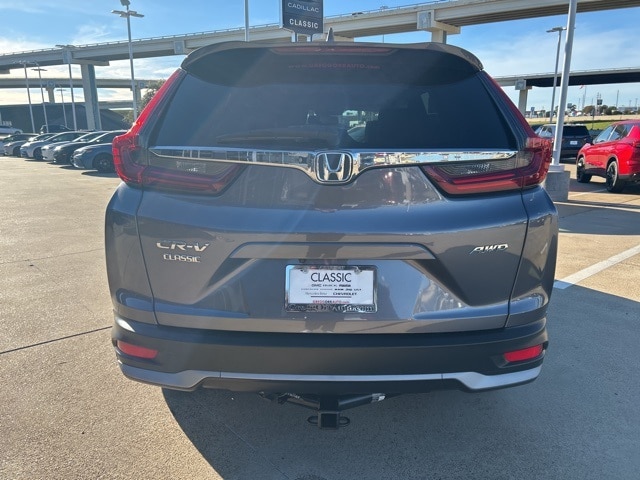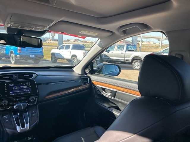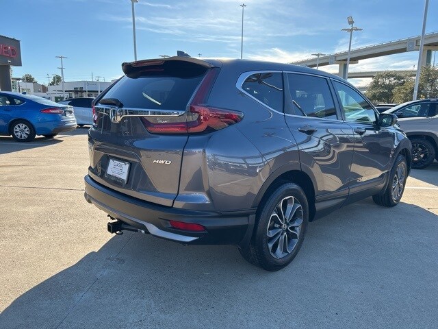 This 2020 Honda CR-V comes equipped with the following features AWD, 18" Alloy Wheels, 4-Wheel Disc Brakes, 5.64 Axle Ratio, 8 Speakers, ABS brakes, Adaptive Cruise Control: Adaptive Cruise Control (ACC) with Low-Speed Follow, Air Conditioning, Alloy wheels, AM/FM radio: SiriusXM, Apple CarPlay/Android Auto, Auto High-beam Headlights, Auto-dimming Rear-View mirror, Automatic temperature control, Blind Spot Information (BSI) System warning, Brake assist, Bumpers: body-color, Compass, Delay-off headlights, Driver door bin, Driver vanity mirror, Dual front impact airbags, Dual front side impact airbags, Electronic Stability Control, Exterior Parking Camera Rear, Forward collision: Collision Mitigation Braking System (CMBS) + FCW mitigation, Four wheel independent suspension, Front anti-roll bar, Front Bucket Seats, Front Center Armrest, Front dual zone A/C, Front fog lights, Front reading lights, Garage door transmitter: HomeLink, Heated door mirrors, Heated Front Bucket Seats, Heated front seats, Illuminated entry, Leather Seat Trim, Leather Shift Knob, Low tire pressure warning, Memory seat, Occupant sensing airbag, Outside temperature display, Overhead airbag, Overhead console, Panic alarm, Passenger door bin, Passenger vanity mirror, Power door mirrors, Power driver seat, Power Liftgate, Power moonroof, Power passenger seat, Power steering, Power windows, Radio data system, Radio: 180-Watt AM/FM/HD/SiriusXM Audio System, Rear anti-roll bar, Rear seat center armrest, Rear window defroster, Rear window wiper, Remote keyless entry, Security system, Speed control, Speed-sensing steering, Speed-Sensitive Wipers, Split folding rear seat, Spoiler, Steering wheel mounted audio controls, Tachometer, Telescoping steering wheel, Tilt steering wheel, Traction control, Trip computer, Turn signal indicator mirrors, and Variably intermittent wipers. AWD. 2020 Honda CR-V EX-L AWD 1.5L I4 DOHC 16V