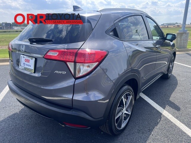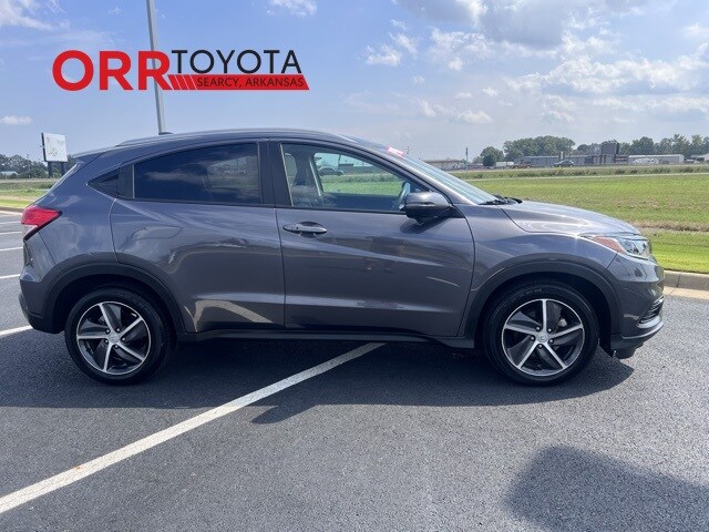 Modern Steel Metallic 2022 Honda HR-V EX AWD CVT 1.8L I4 SOHC 16V i-VTEC This HR-V EX is nicely equipped with 17" Machine-Finished Alloy Wheels, 4-Wheel Disc Brakes, 5.436 Axle Ratio, 6 Speakers, ABS brakes, Air Conditioning, Alloy wheels, AM/FM radio: SiriusXM, Apple CarPlay/Android Auto, Auto High-beam Headlights, Automatic temperature control, Brake assist, Bumpers: body-color, Cloth Seat Trim, Delay-off headlights, Driver door bin, Driver vanity mirror, Dual front impact airbags, Dual front side impact airbags, Electronic Stability Control, Emergency communication system: HondaLink, Exterior Parking Camera Rear, Forward collision: Collision Mitigation Braking System (CMBS) + FCW mitigation, Front anti-roll bar, Front Bucket Seats, Front Center Armrest, Front fog lights, Front reading lights, Front wheel independent suspension, Fully automatic headlights, Heated door mirrors, Heated Front Bucket Seats, Heated front seats, Illuminated entry, Low tire pressure warning, Occupant sensing airbag, Outside temperature display, Overhead airbag, Panic alarm, Passenger door bin, Passenger vanity mirror, Power door mirrors, Power moonroof, Power steering, Power windows, Radio data system, Radio: AM/FM/HD Audio System (180-Watt), Rear anti-roll bar, Rear window defroster, Rear window wiper, Remote keyless entry, Roof rack: rails only, Security system, SiriusXM, Speed control, Speed-sensing steering, Split folding rear seat, Spoiler, Steering wheel mounted audio controls, Tachometer, Telescoping steering wheel, Tilt steering wheel, Traction control, Trip computer, Turn signal indicator mirrors, and Variably intermittent wipers. One owner Carfax, Carfax no accidents, Back up camera, Bluetooth, Keyless entry.