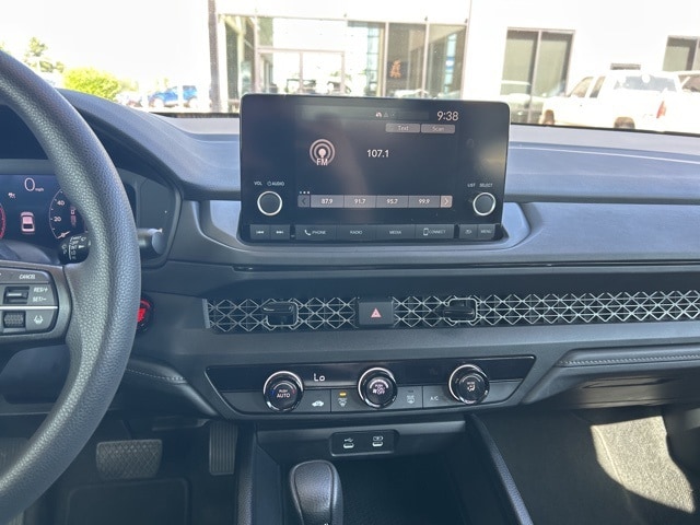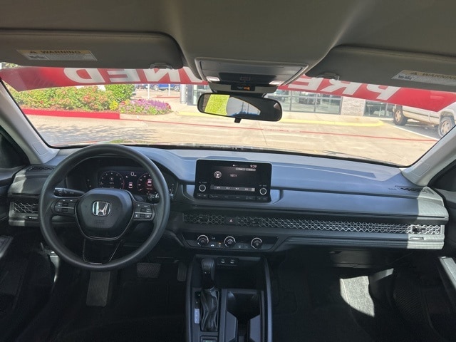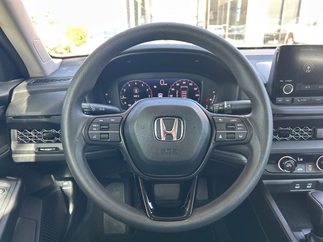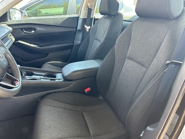 The 2023 Honda Accord comes with the following features; Black Cloth, 4 Speakers, 4-Wheel Disc Brakes, ABS brakes, Adaptive Cruise Control: Adaptive Cruise Control (ACC) with Low-Speed Follow, Air Conditioning, Alloy wheels, AM/FM radio, Apple CarPlay/Android Auto, Auto High-beam Headlights, Automatic temperature control, Brake assist, Bumpers: body-color, Compass, Delay-off headlights, Driver door bin, Driver vanity mirror, Dual front impact airbags, Dual front side impact airbags, Electronic Stability Control, Emergency communication system: HondaLink Assist, Exterior Parking Camera Rear, Fabric Seat Trim, Four wheel independent suspension, Front anti-roll bar, Front Bucket Seats, Front Center Armrest, Front reading lights, Fully automatic headlights, Illuminated entry, Knee airbag, Lane departure: Lane Keeping Assist System (LKAS) active, Low tire pressure warning, Occupant sensing airbag, Outside temperature display, Overhead airbag, Overhead console, Panic alarm, Passenger door bin, Passenger vanity mirror, Power door mirrors, Power steering, Power windows, Radio data system, Radio: 160-Watt AM/FM Audio System, Rear anti-roll bar, Rear reading lights, Rear seat center armrest, Rear side impact airbag, Rear window defroster, Remote keyless entry, Security system, Speed control, Speed-sensing steering, Speed-Sensitive Wipers, Steering wheel mounted audio controls, Tachometer, Telescoping steering wheel, Tilt steering wheel, Traction control, Trip computer, Variably intermittent wipers, and Wheels: 17" x 7.5" Blade Silver. Black Cloth.