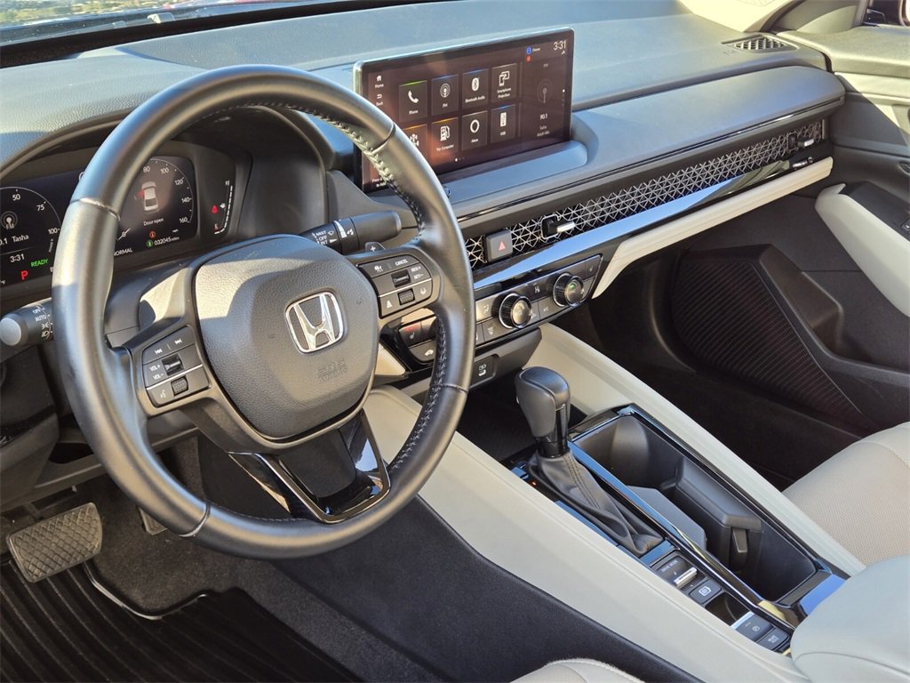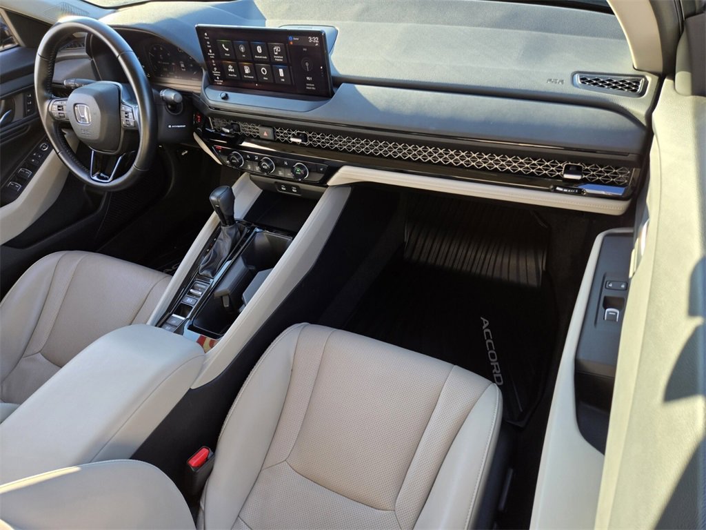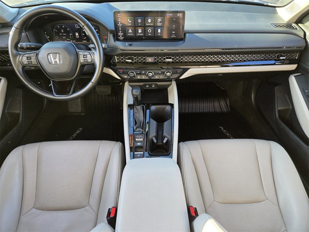 Recent Arrival! This 2023 Honda Accord Hybrid comes equipped with, 2.0L 16V DOHC, 4-Wheel Disc Brakes, 8 Speakers, ABS brakes, Adaptive Cruise Control: Adaptive Cruise Control (ACC) with Low-Speed Follow, Air Conditioning, Alloy wheels, AM/FM radio, Apple CarPlay/Android Auto, Auto High-beam Headlights, Auto-dimming Rear-View mirror, Automatic temperature control, Brake assist, Bumpers: body-color, Compass, Delay-off headlights, Driver door bin, Driver vanity mirror, Dual front impact airbags, Dual front side impact airbags, Electronic Stability Control, Emergency communication system: HondaLink, Exterior Parking Camera Rear, Four wheel independent suspension, Front anti-roll bar, Front Bucket Seats, Front Center Armrest, Front dual zone A/C, Front reading lights, Fully automatic headlights, Heated door mirrors, Heated Front Bucket Seats, Heated front seats, Illuminated entry, Knee airbag, Lane departure: Lane Keeping Assist System (LKAS) active, Leather Shift Knob, Leather steering wheel, Leather-Trimmed Seat Trim, Low tire pressure warning, Memory seat, Occupant sensing airbag, Outside temperature display, Overhead airbag, Overhead console, Panic alarm, Passenger door bin, Passenger vanity mirror, Power door mirrors, Power driver seat, Power moonroof, Power passenger seat, Power steering, Power windows, Radio data system, Radio: 180-Watt Audio System, Rear anti-roll bar, Rear reading lights, Rear seat center armrest, Rear side impact airbag, Rear window defroster, Remote keyless entry, Security system, Speed control, Speed-sensing steering, Speed-Sensitive Wipers, Split folding rear seat, Steering wheel mounted audio controls, Telescoping steering wheel, Tilt steering wheel, Traction control, Trip computer, Turn signal indicator mirrors, Variably intermittent wipers, Wheels: 17" x 7.5J Pewter Gray, 2.0L 16V DOHC. Odometer is 9954 miles below market average!