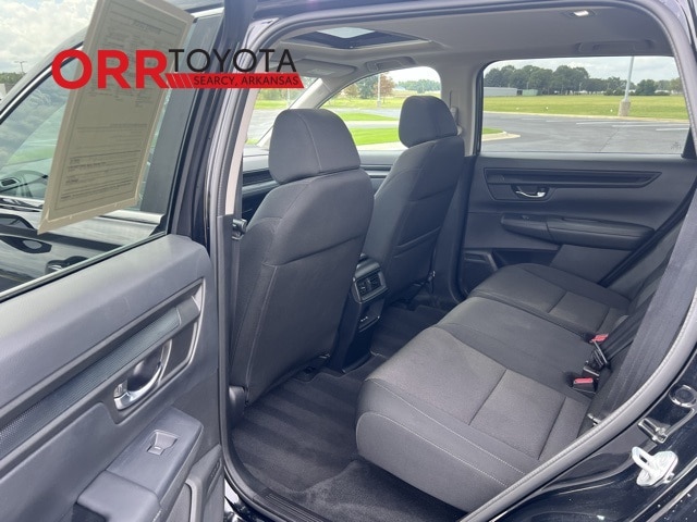 Crystal Black Pearl 2024 Honda CR-V EX AWD CVT 1.5L I4 DOHC 16V This CR-V EX is nicely equipped with AWD, 4-Wheel Disc Brakes, 5.64 Axle Ratio, 6 Speakers, ABS brakes, Adaptive Cruise Control: Adaptive Cruise Control (ACC) with Low-Speed Follow, Air Conditioning, Alloy wheels, Apple CarPlay/Android Auto, Auto High-beam Headlights, Automatic temperature control, Blind Spot Information (BSI) System warning, Brake assist, Bumpers: body-color, Cloth Seat Trim, Compass, Delay-off headlights, Driver door bin, Driver vanity mirror, Dual front impact airbags, Dual front side impact airbags, Electronic Stability Control, Exterior Parking Camera Rear, Four wheel independent suspension, Front anti-roll bar, Front Bucket Seats, Front Center Armrest, Front dual zone A/C, Front reading lights, Fully automatic headlights, Heated door mirrors, Heated Front Bucket Seats, Heated front seats, Illuminated entry, Knee airbag, Low tire pressure warning, Occupant sensing airbag, Outside temperature display, Overhead airbag, Overhead console, Panic alarm, Passenger door bin, Passenger vanity mirror, Power door mirrors, Power driver seat, Power moonroof, Power steering, Power windows, Radio data system, Radio: 240-Watt AM/FM Audio System, Rear anti-roll bar, Rear reading lights, Rear seat center armrest, Rear side impact airbag, Rear window defroster, Rear window wiper, Remote keyless entry, Security system, Speed control, Speed-sensing steering, Speed-Sensitive Wipers, Split folding rear seat, Spoiler, Steering wheel mounted audio controls, Tachometer, Telescoping steering wheel, Tilt steering wheel, Traction control, Trip computer, Turn signal indicator mirrors, Variably intermittent wipers, and Wheels: 18" Sparkle Silver Metallic. Back up camera, Bluetooth, Keyless entry, AWD.
