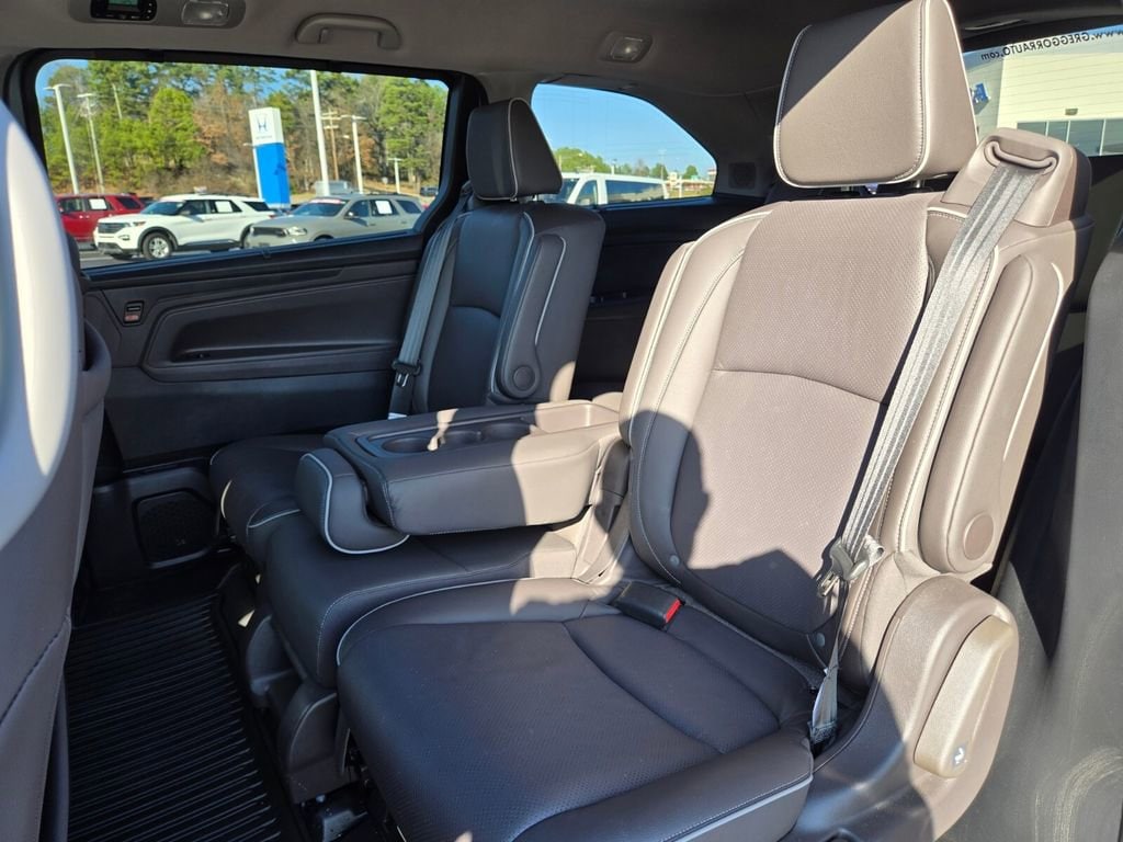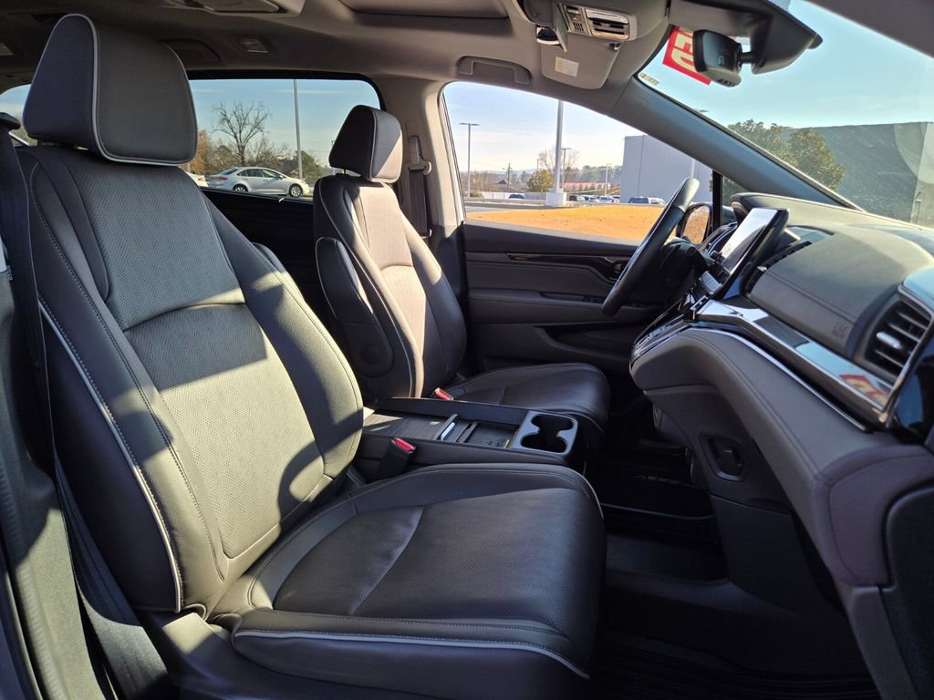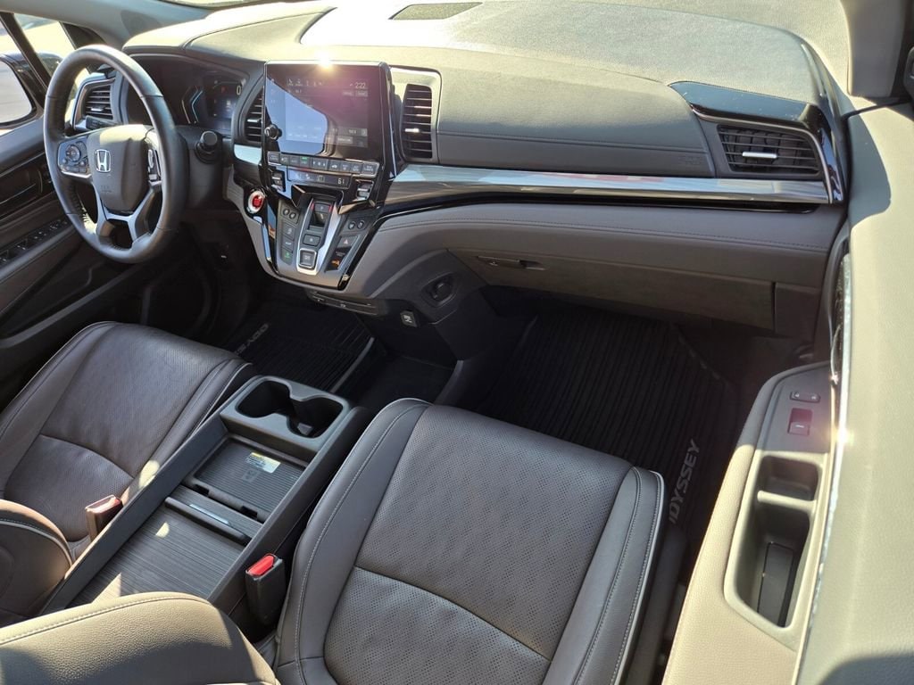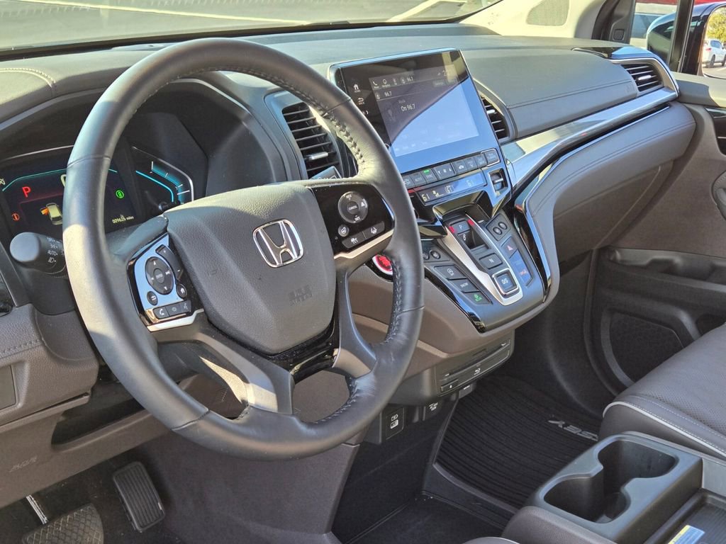 Recent Arrival! This 2024 Honda Odyssey comes equipped with, 11 Speakers, 3.61 Axle Ratio, 3rd row seats: split-bench, 4-Wheel Disc Brakes, A/V remote: CabinControl, ABS brakes, Adaptive Cruise Control: Adaptive Cruise Control (ACC) with Low-Speed Follow, Air Conditioning, Alloy wheels, AM/FM radio: SiriusXM, Anti-whiplash front head restraints, Apple CarPlay/Android Auto, Auto High-beam Headlights, Auto-dimming door mirrors, Auto-dimming Rear-View mirror, Automatic temperature control, Blind Spot Information (BSI) System warning, Brake assist, Bumpers: body-color, CD player, Compass, Delay-off headlights, Driver door bin, Driver vanity mirror, Driver's Seat Mounted Armrest, Dual front impact airbags, Dual front side impact airbags, DVD-Audio, Electronic Stability Control, Emergency communication system: HondaLink, Exterior Parking Camera Rear, Four wheel independent suspension, Front anti-roll bar, Front Bucket Seats, Front dual zone A/C, Front fog lights, Front reading lights, Fully automatic headlights, Garage door transmitter: HomeLink, Headphones, Heated door mirrors, Heated Front Bucket Seats, Heated front seats, Heated steering wheel, Illuminated entry, Knee airbag, Lane departure: Lane Keeping Assist System (LKAS) active, Leather Seat Trim, Leather steering wheel, Low tire pressure warning, Memory seat, Navigation system: Honda Satellite-Linked Navigation System, Occupant sensing airbag, Outside temperature display, Overhead airbag, Overhead console, Panic alarm, Passenger door bin, Passenger seat mounted armrest, Passenger vanity mirror, Power door mirrors, Power driver seat, Power Liftgate, Power moonroof, Power passenger seat, Power steering, Power windows, Radio data system, Radio: 500-Watt AM/FM/HD Premium Audio System, Rain sensing wipers, Rear air conditioning, Rear anti-roll bar, Rear audio controls, Rear reading lights, Rear seat center armrest, Rear window defroster, Rear window wiper, Reclining 3rd row seat, Remote keyless entry, Security system, Speed control, Speed-sensing steering, Speed-Sensitive Wipers, Split folding rear seat, Spoiler, Steering wheel mounted audio controls, Tachometer, Telescoping steering wheel, Tilt steering wheel, Traction control, Trip computer, Turn signal indicator mirrors, Variably intermittent wipers, Wheels: 19" Unique Machine-Finished Alloy.
