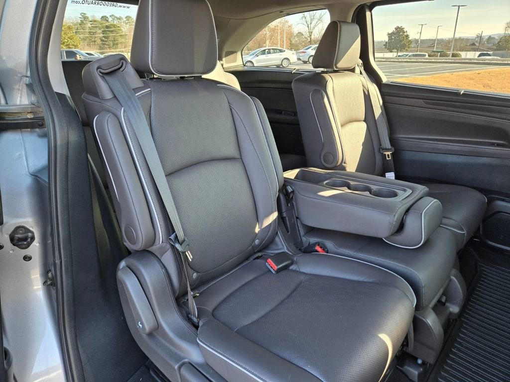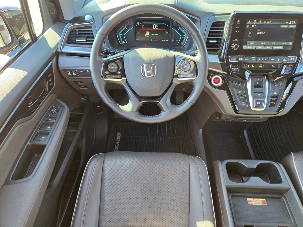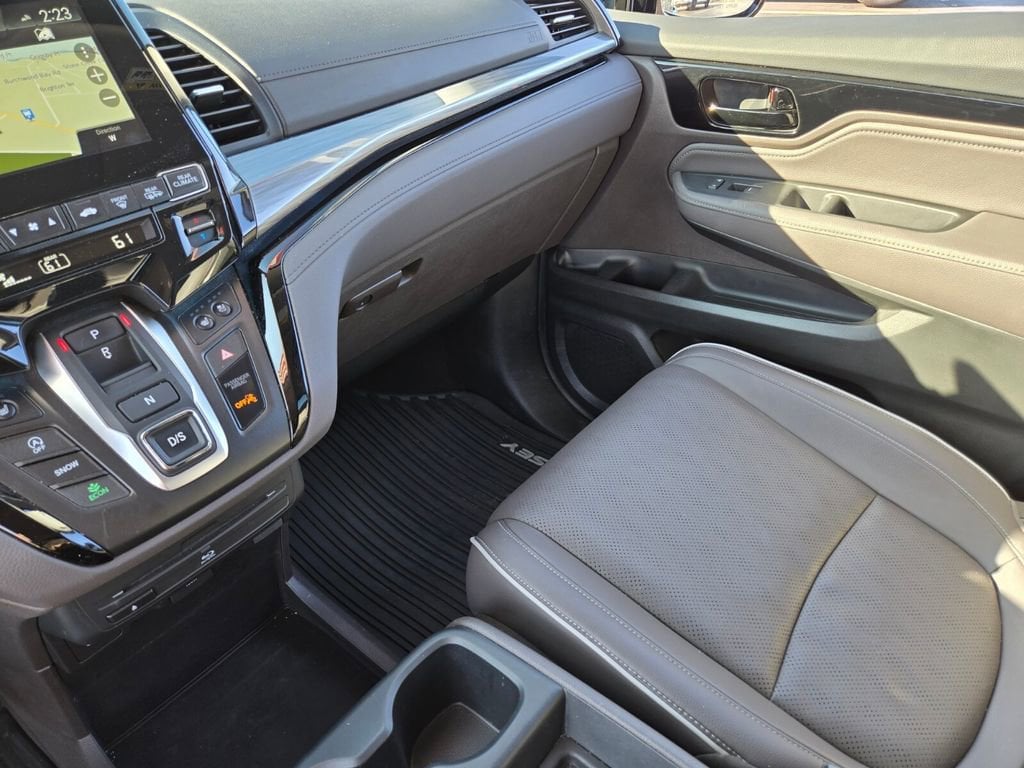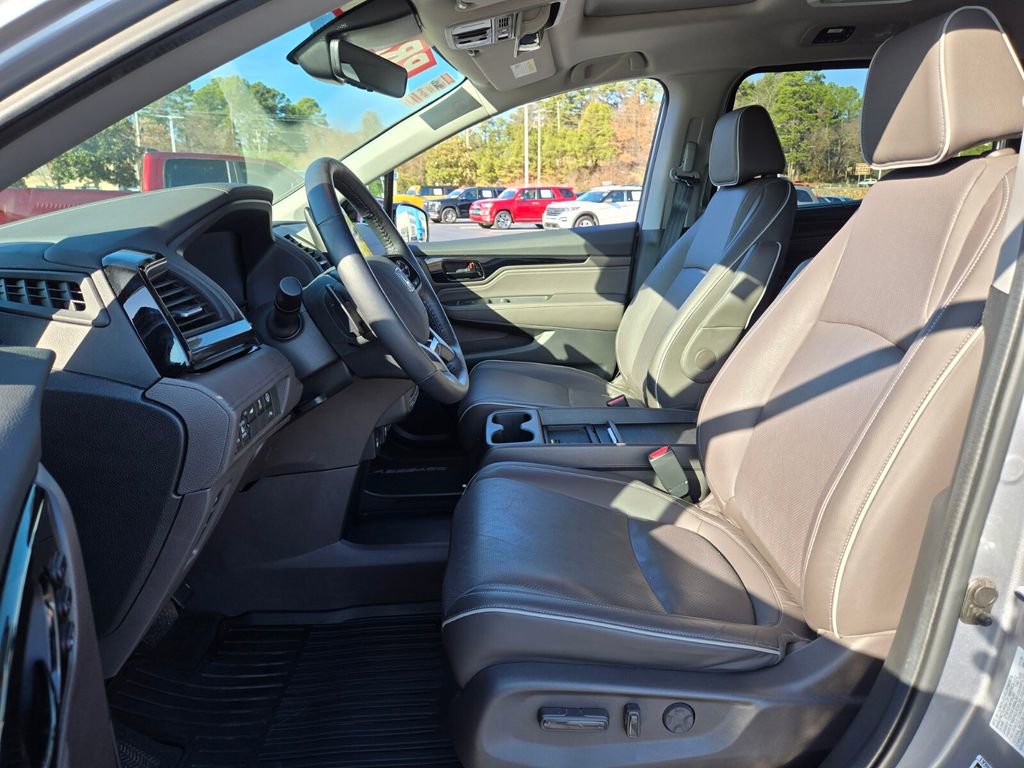 Recent Arrival! This 2024 Honda Odyssey comes equipped with, 11 Speakers, 3.61 Axle Ratio, 3rd row seats: split-bench, 4-Wheel Disc Brakes, A/V remote: CabinControl, ABS brakes, Adaptive Cruise Control: Adaptive Cruise Control (ACC) with Low-Speed Follow, Air Conditioning, Alloy wheels, AM/FM radio: SiriusXM, Anti-whiplash front head restraints, Apple CarPlay/Android Auto, Auto High-beam Headlights, Auto-dimming door mirrors, Auto-dimming Rear-View mirror, Automatic temperature control, Blind Spot Information (BSI) System warning, Brake assist, Bumpers: body-color, CD player, Compass, Delay-off headlights, Driver door bin, Driver vanity mirror, Driver's Seat Mounted Armrest, Dual front impact airbags, Dual front side impact airbags, DVD-Audio, Electronic Stability Control, Emergency communication system: HondaLink, Exterior Parking Camera Rear, Four wheel independent suspension, Front anti-roll bar, Front Bucket Seats, Front dual zone A/C, Front fog lights, Front reading lights, Fully automatic headlights, Garage door transmitter: HomeLink, Headphones, Heated door mirrors, Heated Front Bucket Seats, Heated front seats, Heated steering wheel, Illuminated entry, Knee airbag, Lane departure: Lane Keeping Assist System (LKAS) active, Leather Seat Trim, Leather steering wheel, Low tire pressure warning, Memory seat, Navigation system: Honda Satellite-Linked Navigation System, Occupant sensing airbag, Outside temperature display, Overhead airbag, Overhead console, Panic alarm, Passenger door bin, Passenger seat mounted armrest, Passenger vanity mirror, Power door mirrors, Power driver seat, Power Liftgate, Power moonroof, Power passenger seat, Power steering, Power windows, Radio data system, Radio: 500-Watt AM/FM/HD Premium Audio System, Rain sensing wipers, Rear air conditioning, Rear anti-roll bar, Rear audio controls, Rear reading lights, Rear seat center armrest, Rear window defroster, Rear window wiper, Reclining 3rd row seat, Remote keyless entry, Security system, Speed control, Speed-sensing steering, Speed-Sensitive Wipers, Split folding rear seat, Spoiler, Steering wheel mounted audio controls, Tachometer, Telescoping steering wheel, Tilt steering wheel, Traction control, Trip computer, Turn signal indicator mirrors, Variably intermittent wipers, Wheels: 19" Unique Machine-Finished Alloy.