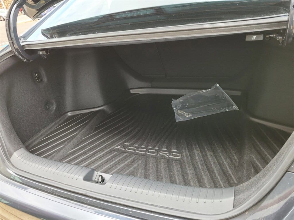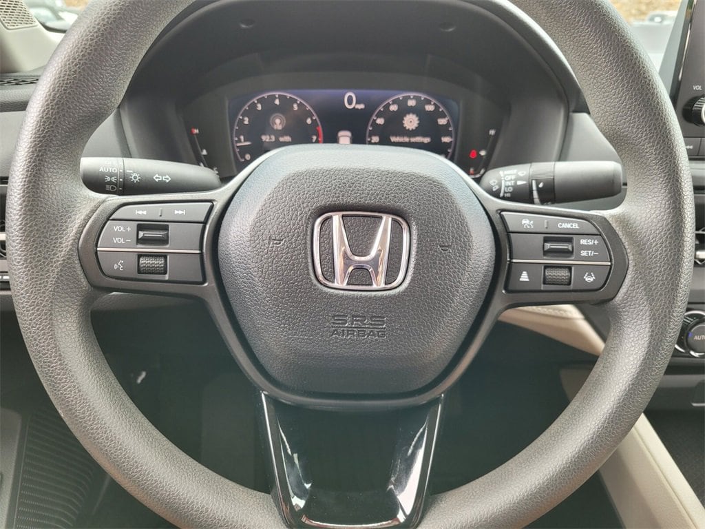 This 2025 Honda Accord comes equipped with, Black Cloth, 4-Wheel Disc Brakes, 8 Speakers, ABS brakes, Adaptive Cruise Control: Adaptive Cruise Control (ACC) with Low-Speed Follow, Air Conditioning, Alloy wheels, AM/FM radio, Apple CarPlay/Android Auto, Auto High-beam Headlights, Automatic temperature control, Blind Spot Information (BSI) System warning, Brake assist, Bumpers: body-color, Compass, Delay-off headlights, Driver door bin, Driver vanity mirror, Dual front impact airbags, Dual front side impact airbags, Electronic Stability Control, Emergency communication system: HondaLink Assist, Exterior Parking Camera Rear, Fabric Seat Trim, Four wheel independent suspension, Front anti-roll bar, Front Bucket Seats, Front Center Armrest, Front dual zone A/C, Front reading lights, Fully automatic headlights, Heated door mirrors, Heated Front Bucket Seats, Heated front seats, Illuminated entry, Knee airbag, Lane departure: Lane Keeping Assist System (LKAS) active, Low tire pressure warning, Occupant sensing airbag, Outside temperature display, Overhead airbag, Overhead console, Panic alarm, Passenger door bin, Passenger vanity mirror, Power door mirrors, Power driver seat, Power moonroof, Power steering, Power windows, Radio data system, Radio: 180-Watt Audio System, Rear anti-roll bar, Rear reading lights, Rear seat center armrest, Rear side impact airbag, Rear window defroster, Remote keyless entry, Security system, Speed control, Speed-sensing steering, Speed-Sensitive Wipers, Split folding rear seat, Steering wheel mounted audio controls, Tachometer, Telescoping steering wheel, Tilt steering wheel, Traction control, Trip computer, Variably intermittent wipers, Wheels: 17" x 7.5J Berlina Black, Black Cloth. Odometer is 1539 miles below market average!