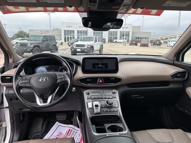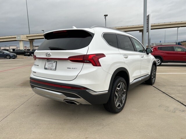 CARFAX One-Owner. Clean CARFAX. 21/28 City/Highway MPG Classic CDJR in Texarkana is proud to offer this charming-looking 2023 Hyundai Santa Fe in White Pearl. This 2023 Hyundai Santa Fe comes with the following features; Option Group 01, AWD, Beige Leather, 12 Speakers, 4-Wheel Disc Brakes, ABS brakes, Air Conditioning, Alloy wheels, AM/FM radio: SiriusXM, Apple CarPlay & Android Auto, Auto High-beam Headlights, Auto-dimming Rear-View mirror, Automatic temperature control, Axle Ratio: 3.316, Brake assist, Bumpers: body-color, Delay-off headlights, Driver door bin, Driver vanity mirror, Dual front impact airbags, Dual front side impact airbags, Electronic Stability Control, Emergency communication system, Exterior Parking Camera Rear, Four wheel independent suspension, Front anti-roll bar, Front Bucket Seats, Front Center Armrest, Front dual zone A/C, Front reading lights, Fully automatic headlights, Garage door transmitter: HomeLink, harman/kardon® Speakers, Heated & Ventilated Front Bucket Seats, Heated door mirrors, Heated front seats, Heated rear seats, Heated steering wheel, Illuminated entry, Leather Seat Trim, Leather steering wheel, Low tire pressure warning, Memory seat, Navigation System, Occupant sensing airbag, Outside temperature display, Overhead airbag, Overhead console, Panic alarm, Passenger door bin, Passenger vanity mirror, Power door mirrors, Power driver seat, Power Liftgate, Power moonroof, Power passenger seat, Power steering, Power windows, Radio: AM/FM Harman Kardon Display Audio, Rain sensing wipers, Rear anti-roll bar, Rear seat center armrest, Rear window defroster, Rear window wiper, Remote keyless entry, Security system, Speed control, Speed-sensing steering, Split folding rear seat, Spoiler, Steering wheel mounted audio controls, Tachometer, Telescoping steering wheel, Tilt steering wheel, Traction control, Trip computer, Turn signal indicator mirrors, Variably intermittent wipers, Ventilated front seats, and Wheels: 19" x 7.5J Alloy. AWD, Beige Leather.