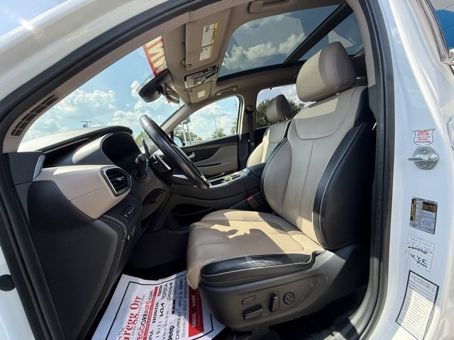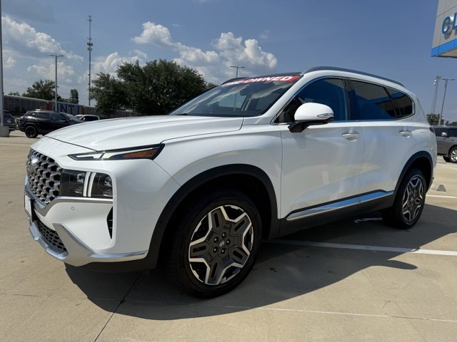 CARFAX One-Owner. Clean CARFAX. 21/28 City/Highway MPG White Pearl 2023 Hyundai Santa Fe Limited 2.5L I4 AWD Shiftronic The 2023 Hyundai Santa Fe comes with the following features; Option Group 01, AWD, Beige Leather, 12 Speakers, 4-Wheel Disc Brakes, ABS brakes, Air Conditioning, Alloy wheels, AM/FM radio: SiriusXM, Apple CarPlay & Android Auto, Auto High-beam Headlights, Auto-dimming Rear-View mirror, Automatic temperature control, Axle Ratio: 3.316, Brake assist, Bumpers: body-color, Delay-off headlights, Driver door bin, Driver vanity mirror, Dual front impact airbags, Dual front side impact airbags, Electronic Stability Control, Emergency communication system, Exterior Parking Camera Rear, Four wheel independent suspension, Front anti-roll bar, Front Bucket Seats, Front Center Armrest, Front dual zone A/C, Front reading lights, Fully automatic headlights, Garage door transmitter: HomeLink, harman/kardon® Speakers, Heated & Ventilated Front Bucket Seats, Heated door mirrors, Heated front seats, Heated rear seats, Heated steering wheel, Illuminated entry, Leather Seat Trim, Leather steering wheel, Low tire pressure warning, Memory seat, Navigation System, Occupant sensing airbag, Outside temperature display, Overhead airbag, Overhead console, Panic alarm, Passenger door bin, Passenger vanity mirror, Power door mirrors, Power driver seat, Power Liftgate, Power moonroof, Power passenger seat, Power steering, Power windows, Radio: AM/FM Harman Kardon Display Audio, Rain sensing wipers, Rear anti-roll bar, Rear seat center armrest, Rear window defroster, Rear window wiper, Remote keyless entry, Security system, Speed control, Speed-sensing steering, Split folding rear seat, Spoiler, Steering wheel mounted audio controls, Tachometer, Telescoping steering wheel, Tilt steering wheel, Traction control, Trip computer, Turn signal indicator mirrors, Variably intermittent wipers, Ventilated front seats, and Wheels: 19 x 7.5J Alloy. AWD, Beige Leather.