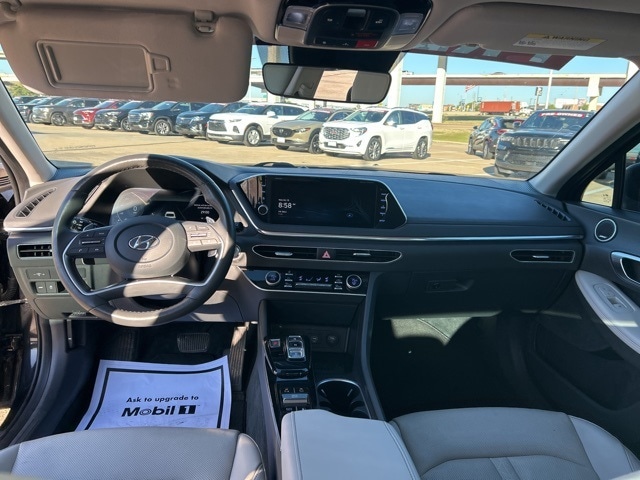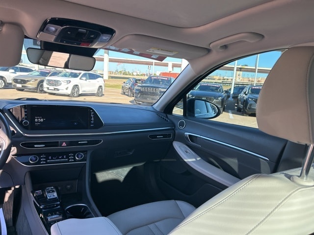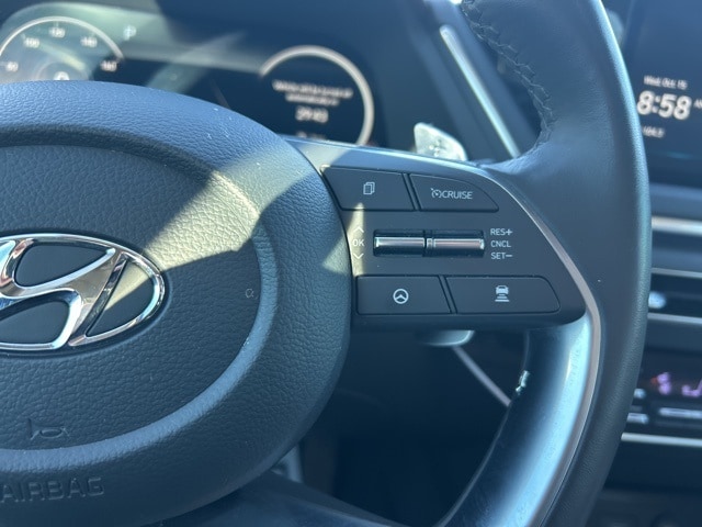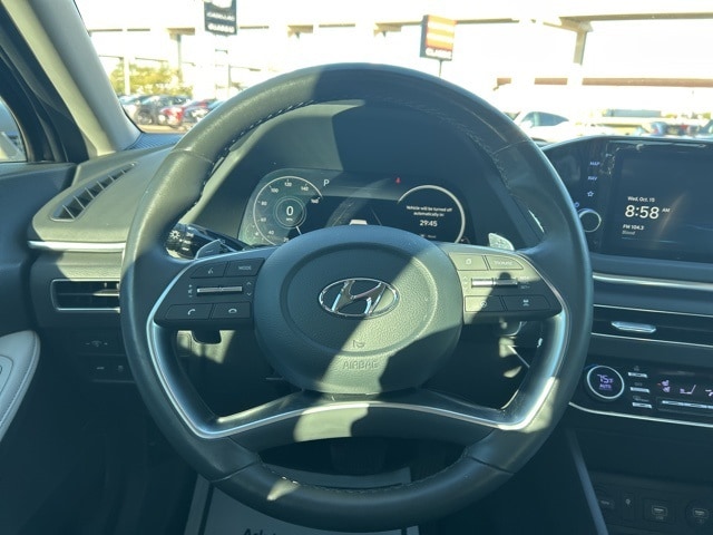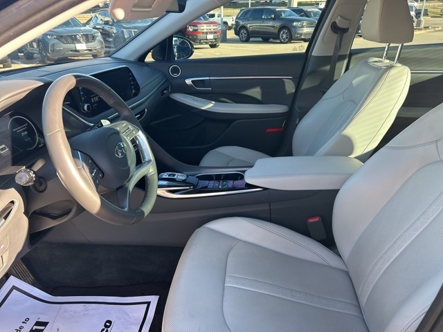 This 2023 Hyundai Sonata comes equipped with the following features Option Group 01, Dark Gray w/Leather Seating Surfaces, 12 Speakers, 18" x 7.5J Aluminum Alloy Wheels, 4-Wheel Disc Brakes, ABS brakes, Air Conditioning, Alloy wheels, AM/FM radio: SiriusXM, Apple CarPlay & Android Auto, Auto High-beam Headlights, Auto-dimming Rear-View mirror, Automatic temperature control, Brake assist, Bumpers: body-color, Cargo Tray, Carpeted Floor Mats, Delay-off headlights, Driver door bin, Driver vanity mirror, Dual front impact airbags, Dual front side impact airbags, Electronic Stability Control, Emergency communication system: Blue Link Connected Car Service (3-year complimentary subscription), Exterior Parking Camera Rear, First Aid Kit, Four wheel independent suspension, Front anti-roll bar, Front Bucket Seats, Front Center Armrest, Front dual zone A/C, Front reading lights, Fully automatic headlights, Garage door transmitter: HomeLink, Heads-Up Display, Heated door mirrors, Heated front seats, Heated steering wheel, Heated/Ventilated Front Bucket Seats, Illuminated entry, Knee airbag, Leather Seating Surfaces, Leather steering wheel, Low tire pressure warning, Memory seat, Navigation System, Occupant sensing airbag, Outside temperature display, Overhead airbag, Overhead console, Panic alarm, Passenger door bin, Passenger vanity mirror, Power door mirrors, Power driver seat, Power moonroof, Power passenger seat, Power steering, Power windows, Radio data system, Radio: AM/FM/MP3/HD/SiriusXM Display Audio w/Nav, Rain sensing wipers, Rear anti-roll bar, Rear Bumper Applique, Rear seat center armrest, Rear side impact airbag, Rear window defroster, Remote keyless entry, Security system, Speed control, Speed-sensing steering, Speed-Sensitive Wipers, Split folding rear seat, Steering wheel mounted audio controls, Tachometer, Telescoping steering wheel, Tilt steering wheel, Traction control, Trip computer, Turn signal indicator mirrors, Variably intermittent wipers, and Ventilated front seats. Dark Gray w/Leather Seating Surfaces. Clean CARFAX. 2023 Hyundai Sonata Limited FWD I4