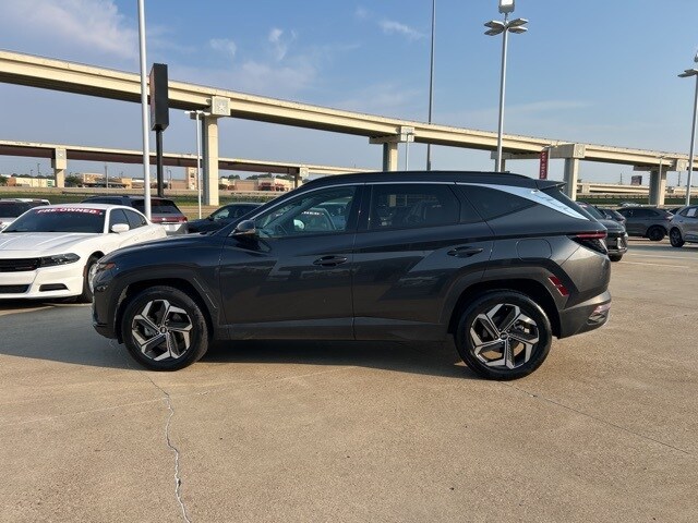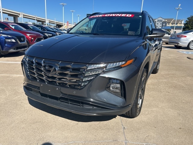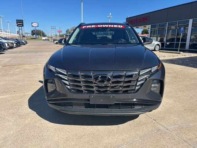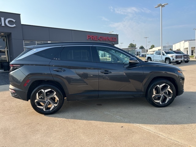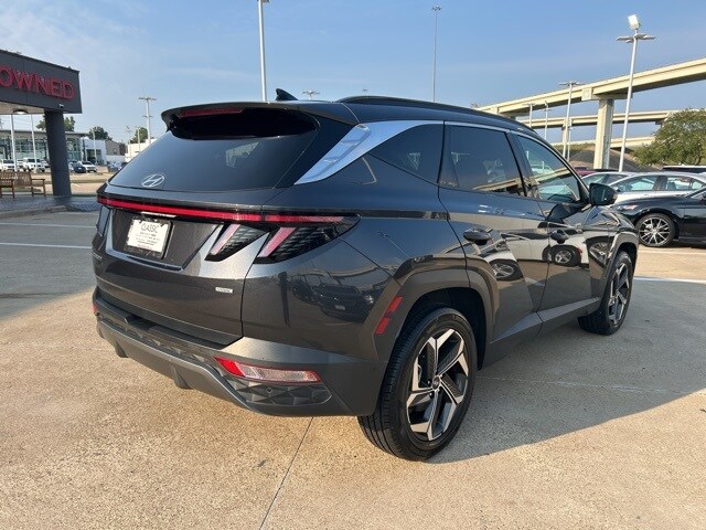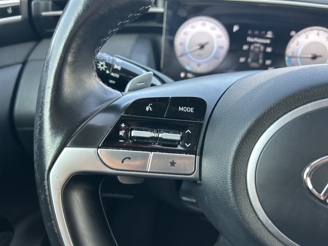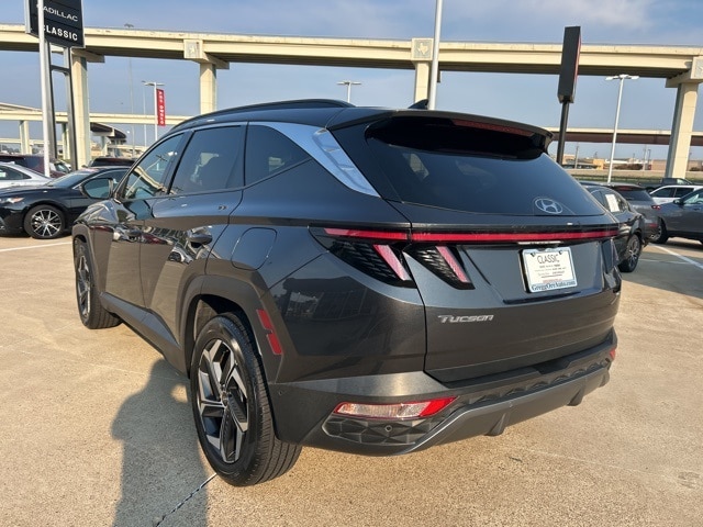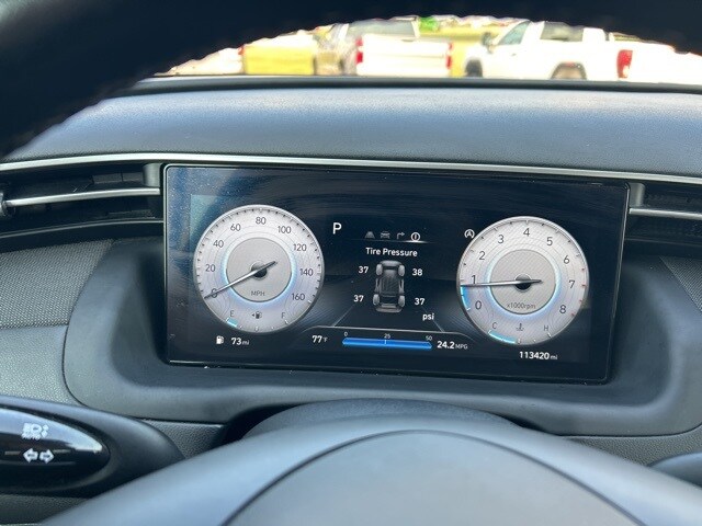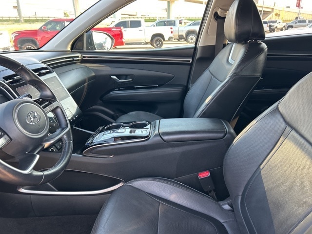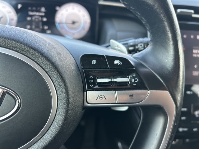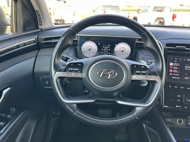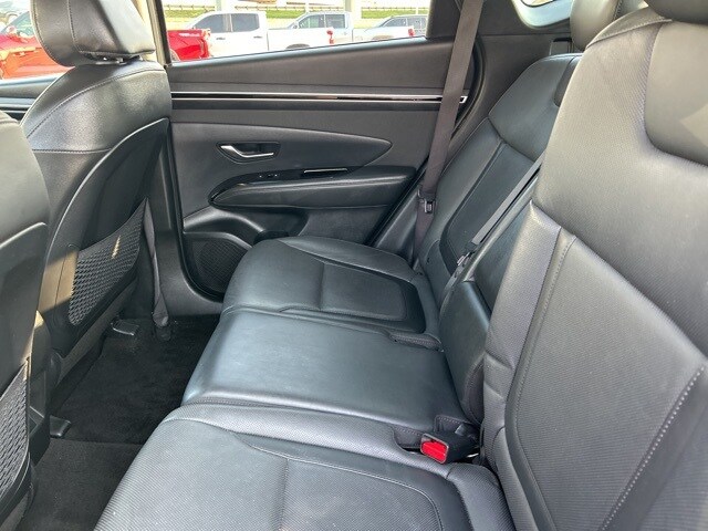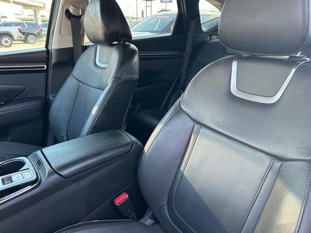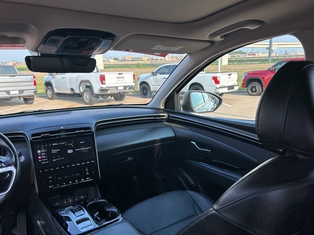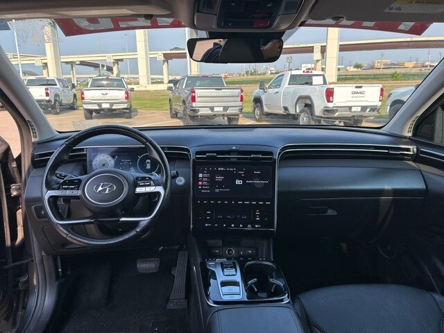 This 2023 Hyundai Tucson comes equipped with the following features Option Group 01, AWD, 3.648 Axle Ratio, 4-Wheel Disc Brakes, 8 Speakers, ABS brakes, Air Conditioning, Alloy wheels, AM/FM radio: SiriusXM, Apple CarPlay & Android Auto, Auto High-beam Headlights, Auto-dimming Rear-View mirror, Automatic temperature control, Brake assist, Bumpers: body-color, Delay-off headlights, Driver door bin, Driver vanity mirror, Dual front impact airbags, Dual front side impact airbags, Electronic Stability Control, Emergency communication system: Blue Link Connected Car Service (3-year complimentary subscription), Four wheel independent suspension, Front anti-roll bar, Front Bucket Seats, Front Center Armrest, Front dual zone A/C, Front reading lights, Fully automatic headlights, Garage door transmitter: HomeLink, Heated & Ventilated Front Bucket Seats, Heated door mirrors, Heated front seats, Heated rear seats, Heated steering wheel, Illuminated entry, Leather Seat Trim, Low tire pressure warning, Memory seat, Navigation System, Occupant sensing airbag, Outside temperature display, Overhead airbag, Overhead console, Panic alarm, Passenger door bin, Passenger vanity mirror, Power door mirrors, Power driver seat, Power Liftgate, Power moonroof, Power passenger seat, Power steering, Power windows, Radio data system, Radio: Bose Premium w/AM/FM/HD/SiriusXM Audio System, Rain sensing wipers, Rear anti-roll bar, Rear reading lights, Rear seat center armrest, Rear window defroster, Rear window wiper, Remote keyless entry, Roof rack: rails only, Security system, Speed control, Split folding rear seat, Spoiler, Steering wheel mounted audio controls, Tachometer, Telescoping steering wheel, Tilt steering wheel, Traction control, Trip computer, Turn signal indicator mirrors, Variably intermittent wipers, Ventilated front seats, and Wheels: 19" x 7.5J" Machine-Face Finish Alloy. AWD. CARFAX One-Owner. 2023 Hyundai Tucson Limited AWD 2.5L I4 DGI DOHC 16V LEV3-ULEV70 187hp
