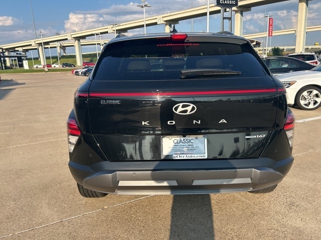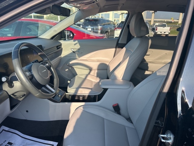 This 2024 Hyundai Kona comes equipped with the following features Option Group 01, 3.510 Axle Ratio, 4-Wheel Disc Brakes, 8 Speakers, ABS brakes, Air Conditioning, Alloy wheels, AM/FM radio: SiriusXM, Apple CarPlay & Android Auto, Auto High-beam Headlights, Auto-dimming Rear-View mirror, Automatic temperature control, Brake assist, Bumpers: body-color, Cargo Net, Cargo Tray, Carpeted Floor Mats, Column-Mounted Shift-By-Wire, Delay-off headlights, Driver door bin, Driver vanity mirror, Dual front impact airbags, Dual front side impact airbags, Electronic Stability Control, Emergency communication system: Bluelink+, First Aid Kit, Four wheel independent suspension, Front anti-roll bar, Front Bucket Seats, Front Center Armrest, Front dual zone A/C, Front reading lights, Fully automatic headlights, Garage door transmitter: HomeLink, H-Tex Leatherette Seat Trim, Heated & Ventilated Front Bucket Seats, Heated door mirrors, Heated front seats, Heated steering wheel, Illuminated entry, Leather Shift Knob, Leather steering wheel, Low tire pressure warning, Mud Guards, Navigation System, Occupant sensing airbag, Outside temperature display, Overhead airbag, Panic alarm, Passenger door bin, Passenger vanity mirror, Power door mirrors, Power driver seat, Power Liftgate, Power moonroof, Power steering, Power windows, Radio: AM/FM/HD Radio/SiriusXM Audio System, Rear anti-roll bar, Rear seat center armrest, Rear window defroster, Rear window wiper, Remote keyless entry, Security system, Speed control, Speed-sensing steering, Split folding rear seat, Spoiler, Steering wheel mounted audio controls, Tachometer, Telescoping steering wheel, Tilt steering wheel, Traction control, Trip computer, Turn signal indicator mirrors, Variably intermittent wipers, Ventilated front seats, and Wheels: 19" x 7.5J Glossy Black Alloy. Clean CARFAX. CARFAX One-Owner. 2024 Hyundai Kona Limited AWD I4