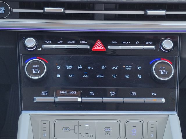 This 2024 Hyundai Santa Fe Hybrid comes equipped with Option Group 01, I4, Navigation System, 12 Speakers, 3.510 Axle Ratio, 3rd row seats: bench, 4-Wheel Disc Brakes, ABS brakes, Air Conditioning, Alloy wheels, AM/FM radio: SiriusXM, Apple CarPlay & Android Auto, Auto High-beam Headlights, Auto-dimming Rear-View mirror, Automatic temperature control, Brake assist, Bumpers: body-color, Cargo Cover/Screen, Delay-off headlights, Driver door bin, Driver vanity mirror, Dual front impact airbags, Dual front side impact airbags, Electronic Stability Control, Emergency communication system, Exterior Parking Camera Rear, First Aid Kit, Four wheel independent suspension, Front anti-roll bar, Front Bucket Seats, Front Center Armrest, Front dual zone A/C, Front reading lights, Fully automatic headlights, Garage door transmitter: HomeLink, Heads-Up Display, Heated & Ventilated Front Bucket Seats, Heated door mirrors, Heated front seats, Heated rear seats, Heated steering wheel, Illuminated entry, Knee airbag, Leather steering wheel, Low tire pressure warning, Memory seat, Occupant sensing airbag, Outside temperature display, Overhead airbag, Overhead console, Panic alarm, Passenger door bin, Passenger vanity mirror, Power door mirrors, Power driver seat, Power Liftgate, Power moonroof, Power passenger seat, Power steering, Power windows, Quilted Premium Nappa Leather Seat Trim, Radio: AM/FM/HD Bose Premium Audio System, Rain sensing wipers, Rear anti-roll bar, Rear side impact airbag, Rear window defroster, Rear window wiper, Remote keyless entry, Security system, Speed control, Speed-sensing steering, Split folding rear seat, Spoiler, Steering wheel mounted audio controls, Tachometer, Telescoping steering wheel, Tilt steering wheel, Traction control, Trip computer, Turn signal indicator mirrors, Variably intermittent wipers, Ventilated front seats, and Wheels: 20" x 8.5J Unique Dark Finish Alloy. CARFAX One-Owner. Priced below KBB Fair Purchase Price! 35/34 City/Highway MPG Carfax no accidents, I4, Navigation System, Option Group 01.