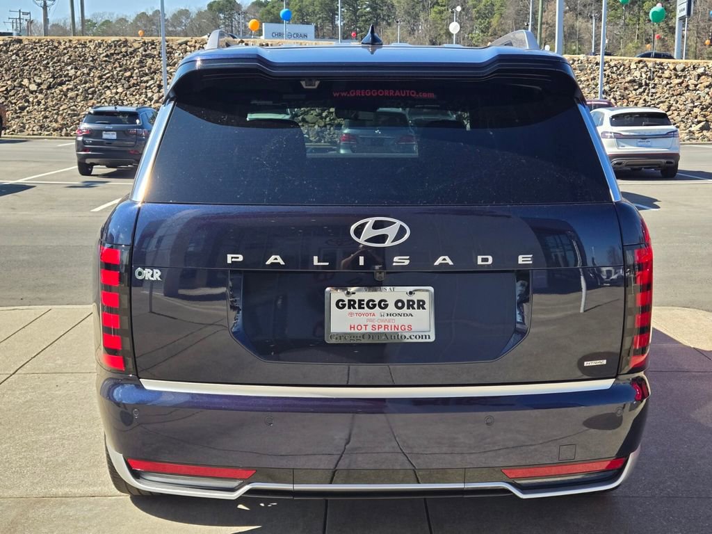 This 2026 Hyundai Palisade comes equipped with, 14 Speakers, 3rd row seats: split-bench, 4-Wheel Disc Brakes, ABS brakes, Air Conditioning, Alloy wheels, AM/FM radio: SiriusXM, Apple CarPlay & Android Auto, Audio memory, Auto High-beam Headlights, Auto-dimming door mirrors, Auto-dimming Rear-View mirror, Auto-leveling suspension, Automatic temperature control, Brake assist, Bumpers: body-color, Carpeted Floor Mats, Compass, Delay-off headlights, Driver door bin, Driver vanity mirror, Dual front impact airbags, Dual front side impact airbags, Electronic Stability Control, Emergency communication system: None, Exterior Parking Camera Rear, Four wheel independent suspension, Front anti-roll bar, Front Bucket Seats, Front Center Armrest, Front dual zone A/C, Front reading lights, Fully automatic headlights, Garage door transmitter: HomeLink, Genuine wood console insert, Genuine wood dashboard insert, Heads-Up Display, Heated and Ventilated Front Bucket Seats, Heated door mirrors, Heated front seats, Heated rear seats, Heated steering wheel, HVAC memory, Illuminated entry, Knee airbag, Leather steering wheel, Low tire pressure warning, Memory seat, Navigation System, Occupant sensing airbag, Option Group 01, Outside temperature display, Overhead airbag, Overhead console, Panic alarm, Passenger door bin, Passenger vanity mirror, Power door mirrors, Power driver seat, Power Liftgate, Power moonroof, Power passenger seat, Power steering, Power windows, Premium Nappa Leather Seat Trim, Radio data system, Radio: Infotainment Navigation System, Rain sensing wipers, Rear air conditioning, Rear anti-roll bar, Rear audio controls, Rear reading lights, Rear side impact airbag, Rear window defroster, Rear window wiper, Reclining 3rd row seat, Remote keyless entry, Security system, Speed control, Split folding rear seat, Spoiler, Steering wheel mounted audio controls, Tachometer, Telescoping steering wheel, Tilt steering wheel, Traction control, Trip computer, Turn signal indicator mirrors, Variably intermittent wipers, Ventilated front seats, Ventilated rear seats, Wheels: 21" x 8.5J Alloy.