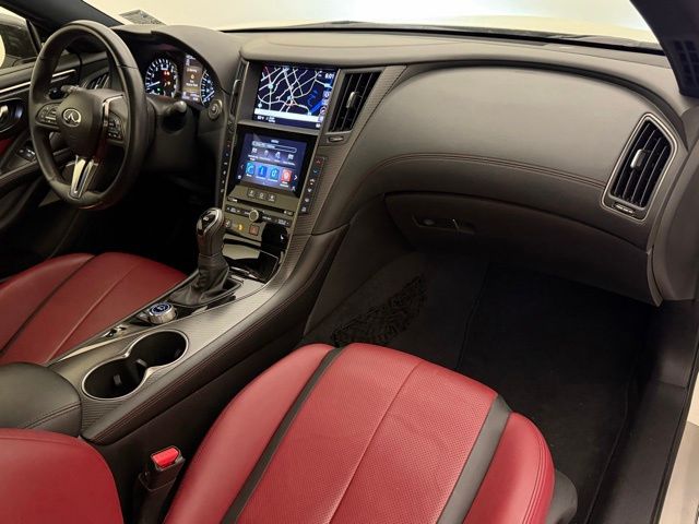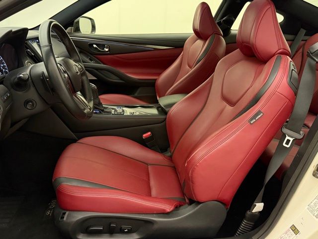 With its stunning white exterior, the Q60 Red Sport 400 exudes a bold, sophisticated presence that is sure to turn heads wherever you go. Alluring 20-inch staggered aluminum-alloy sport wheels and a power moonroof accentuate the coupe's sleek, aerodynamic profile.
