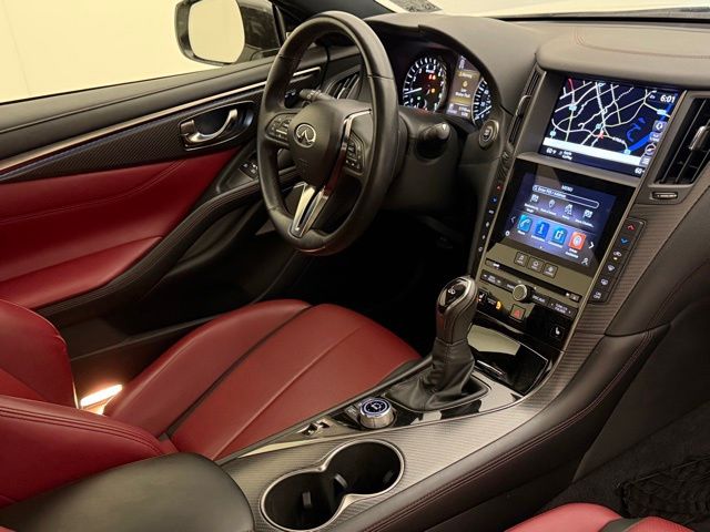 Stepping inside, the Q60 Red Sport 400 surrounds you in a world of refined luxury. The semi-aniline leather-appointed seating surfaces provide exceptional comfort and support, while the heated front seats and heated steering wheel ensure you stay cozy in any weather. The INFINITI InTouch infotainment system with navigation and a premium 23-speaker audio system delivers an immersive multimedia experience.