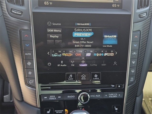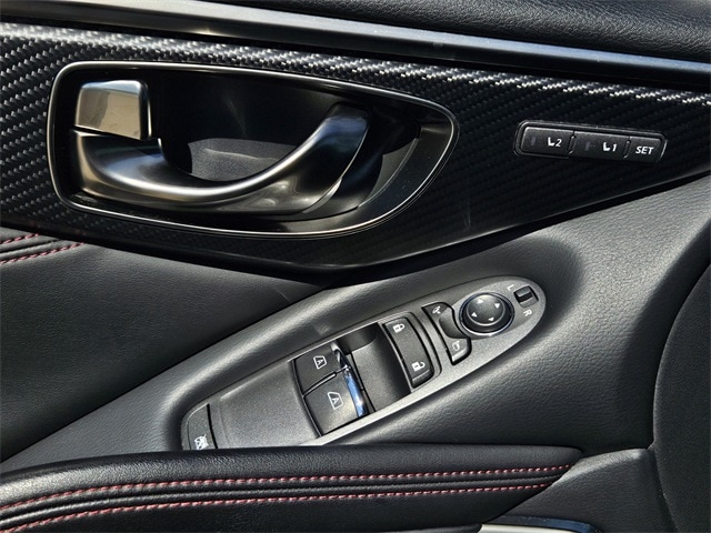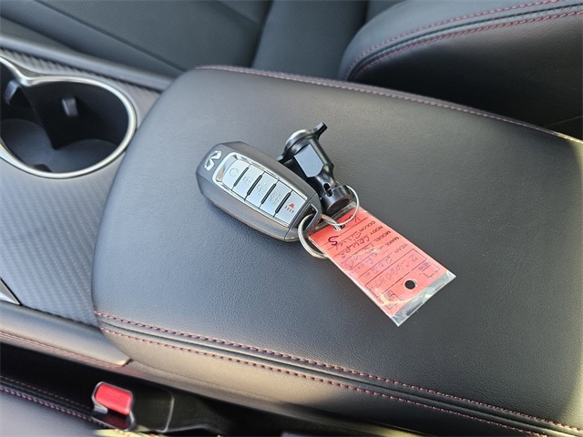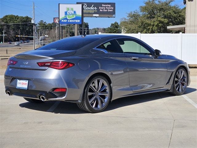 This 2022 INFINITI Q60 comes equipped with Cargo Package (Cargo Net, Carpeted Trunk Mat, and First Aid Kit), Navigation system: INFINITI InTouch Navigation, 13 Speakers, 4-Wheel Disc Brakes, ABS brakes, Adaptive suspension, Air Conditioning, Alloy wheels, AM/FM radio: SiriusXM, Apple CarPlay/Android Auto, Auto High-beam Headlights, Auto tilt-away steering wheel, Auto-dimming door mirrors, Auto-dimming Rear-View mirror, Automatic temperature control, Blind Spot Warning, Brake assist, Bumpers: body-color, CD player, Compass, Delay-off headlights, Driver door bin, Driver vanity mirror, Dual front impact airbags, Dual front side impact airbags, Electronic Stability Control, Emergency communication system: INFINITI Connection, Four wheel independent suspension, Front anti-roll bar, Front Bucket Seats, Front Center Armrest, Front dual zone A/C, Front fog lights, Front reading lights, Fully automatic headlights, Garage door transmitter: HomeLink, Heated door mirrors, Heated Front Bucket Seats, Heated front seats, Heated steering wheel, Illuminated entry, Illuminated Kick Plates, INFINITI Welcome Lighting, Leather Shift Knob, Leather steering wheel, Literature Kit, Low tire pressure warning, Memory seat, Occupant sensing airbag, Outside temperature display, Overhead airbag, Overhead console, Panic alarm, Passenger door bin, Passenger vanity mirror, Power door mirrors, Power driver seat, Power moonroof, Power passenger seat, Power steering, Power windows, Radio data system, Radio: INFINITI InTouch w/AM/FM/HD/CD/Navigation, Rain sensing wipers, Rear anti-roll bar, Rear window defroster, Remote keyless entry, Security system, Semi-Aniline Leather-Appointed Seating Surfaces, Speed control, Speed-sensing steering, Speed-Sensitive Wipers, Steering wheel memory, Steering wheel mounted audio controls, Tachometer, Telescoping steering wheel, Tilt steering wheel, Traction control, Trip computer, Turn signal indicator mirrors, Variably intermittent wipers, and Wheels: 20" Staggered Aluminum-Alloy Sport. Clean CARFAX. 20/27 City/Highway MPG Cargo Net, Cargo Package, Carpeted Trunk Mat, First Aid Kit, Navigation system: INFINITI InTouch Navigation.