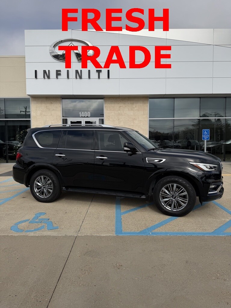 **THIS 2022 INFINITI QX80 LUXE IS THE KING OF THE ROAD, READY TO HAUL FAMILY, FRIENDS, AND ALL THE GEAR WITH STYLE AND POWER TO MATCH. BLACK OBSIDIAN GLASSY EXTERIOR WITH A CABIN THAT FEELS LIKE A LUXURY SUITE ON WHEELS. 4WD MEANS IT CAN TACKLE ANY TERRAIN, FROM SCHOOL RUNS TO MOUNTAIN ESCAPES. IF YOU WANT PRESENCE, POWER, AND A TOUCH OF ELEGANCE ALL ROLLED INTO ONE, THIS QX80 LUXE RULES THE ROOST.**.
