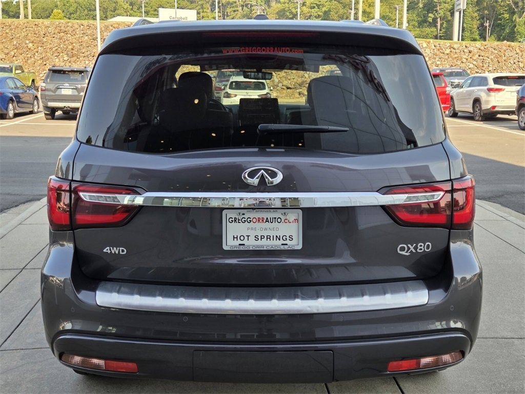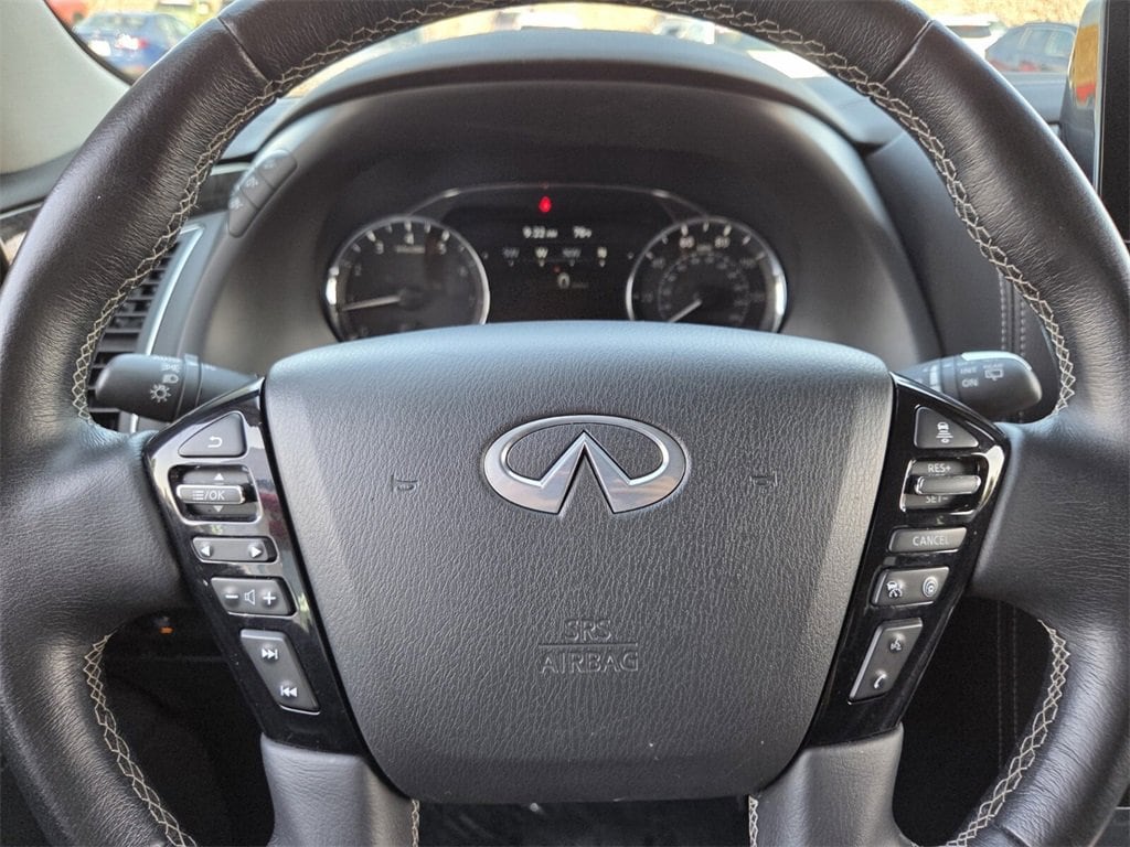 This 2024 INFINITI QX80 comes equipped with, 13 Speakers, 2.937 Axle Ratio, 20" Aluminum Alloy Wheels, 3rd row seats: bench, 4-Wheel Disc Brakes, ABS brakes, Air Conditioning, Alloy wheels, AM/FM radio: SiriusXM, Anti-whiplash front head restraints, Apple CarPlay/Android Auto, Auto High-beam Headlights, Auto tilt-away steering wheel, Auto-dimming door mirrors, Auto-dimming Rear-View mirror, Auto-leveling suspension, Automatic temperature control, Brake assist, Bumpers: body-color, Compass, Delay-off headlights, Driver door bin, Driver vanity mirror, Dual front impact airbags, Dual front side impact airbags, Electronic Stability Control, Emergency communication system: INFINITI InTouch, Four wheel independent suspension, Front anti-roll bar, Front Bucket Seats, Front Center Armrest, Front dual zone A/C, Front fog lights, Front reading lights, Fully automatic headlights, Garage door transmitter: HomeLink, Heated door mirrors, Heated Front Bucket Seats, Heated front seats, Heated steering wheel, Illuminated entry, Leather Shift Knob, Leather steering wheel, Leather-Appointed Seats, Literature Kit, Low tire pressure warning, Memory seat, Navigation system: INFINITI InTouch Navigation, Occupant sensing airbag, Outside temperature display, Overhead airbag, Overhead console, Panic alarm, Passenger door bin, Passenger vanity mirror, Power door mirrors, Power driver seat, Power Liftgate, Power moonroof, Power passenger seat, Power steering, Power windows, Radio data system, Radio: Bose Premium Audio System w/13 Speakers, Rain sensing wipers, Rear air conditioning, Rear anti-roll bar, Rear reading lights, Rear seat center armrest, Rear window defroster, Rear window wiper, Reclining 3rd row seat, Remote keyless entry, Security system, Speed control, Speed-sensing steering, Split folding rear seat, Spoiler, Steering wheel memory, Steering wheel mounted audio controls, Tachometer, Telescoping steering wheel, Tilt steering wheel, Traction control, Trip computer, Turn signal indicator mirrors, Variably intermittent wipers, Voltmeter. Odometer is 3280 miles below market average!