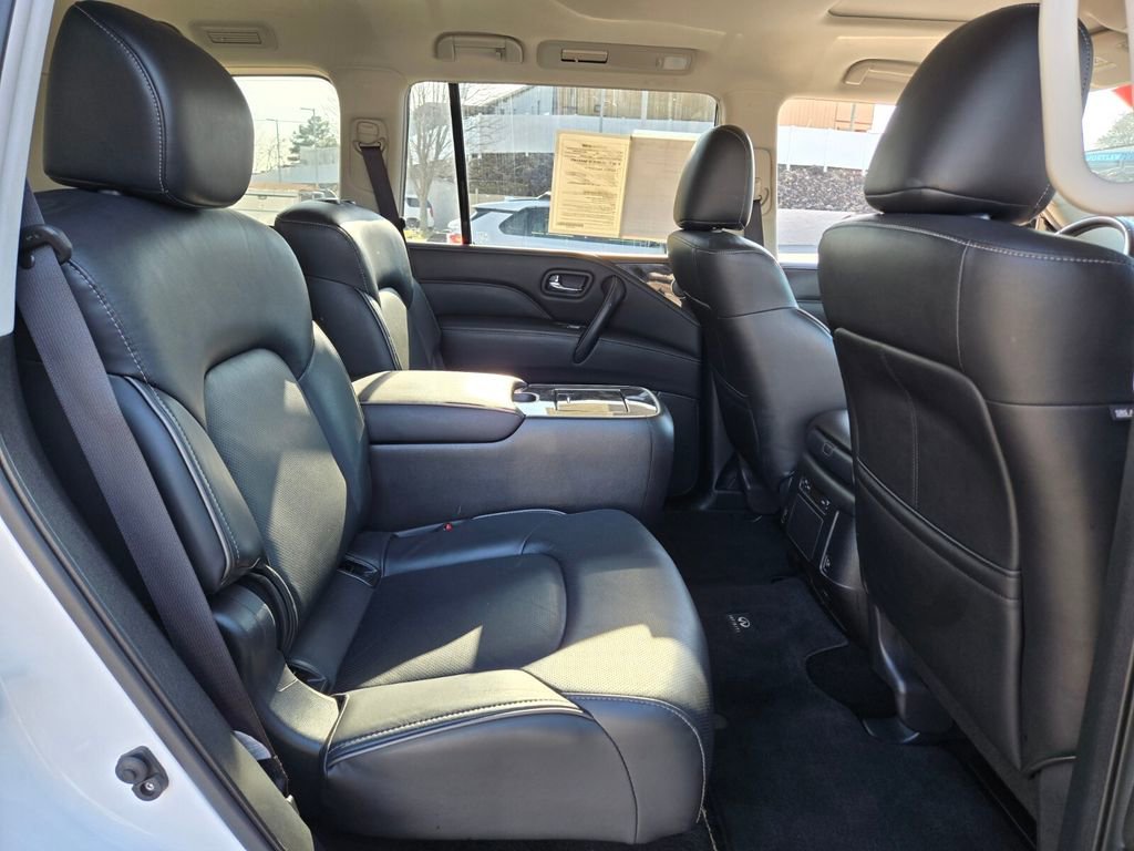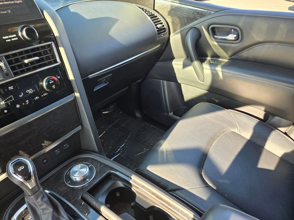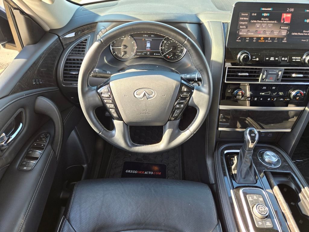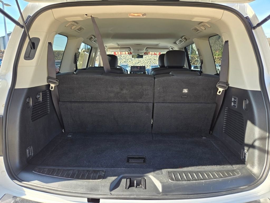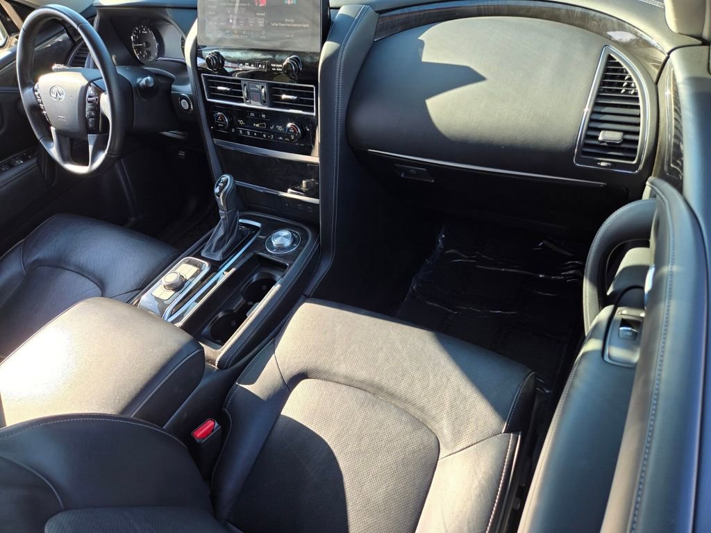 This 2024 INFINITI QX80 comes equipped with, 13 Speakers, 2.937 Axle Ratio, 20" Aluminum Alloy Wheels, 3rd row seats: bench, 4-Wheel Disc Brakes, ABS brakes, Air Conditioning, Alloy wheels, AM/FM radio: SiriusXM, Anti-whiplash front head restraints, Apple CarPlay/Android Auto, Auto High-beam Headlights, Auto tilt-away steering wheel, Auto-dimming door mirrors, Auto-dimming Rear-View mirror, Auto-leveling suspension, Automatic temperature control, Brake assist, Bumpers: body-color, Compass, Delay-off headlights, Driver door bin, Driver vanity mirror, Dual front impact airbags, Dual front side impact airbags, Electronic Stability Control, Emergency communication system: INFINITI InTouch, Four wheel independent suspension, Front anti-roll bar, Front Bucket Seats, Front Center Armrest, Front dual zone A/C, Front fog lights, Front reading lights, Fully automatic headlights, Garage door transmitter: HomeLink, Heated door mirrors, Heated Front Bucket Seats, Heated front seats, Heated steering wheel, Illuminated entry, Leather Shift Knob, Leather steering wheel, Leather-Appointed Seats, Literature Kit, Low tire pressure warning, Memory seat, Navigation system: INFINITI InTouch Navigation, Occupant sensing airbag, Outside temperature display, Overhead airbag, Overhead console, Panic alarm, Passenger door bin, Passenger vanity mirror, Power door mirrors, Power driver seat, Power Liftgate, Power moonroof, Power passenger seat, Power steering, Power windows, Radio data system, Radio: Bose Premium Audio System w/13 Speakers, Rain sensing wipers, Rear air conditioning, Rear anti-roll bar, Rear reading lights, Rear seat center armrest, Rear window defroster, Rear window wiper, Reclining 3rd row seat, Remote keyless entry, Security system, Speed control, Speed-sensing steering, Split folding rear seat, Spoiler, Steering wheel memory, Steering wheel mounted audio controls, Tachometer, Telescoping steering wheel, Tilt steering wheel, Traction control, Trip computer, Turn signal indicator mirrors, Variably intermittent wipers, Voltmeter. Odometer is 6764 miles below market average!