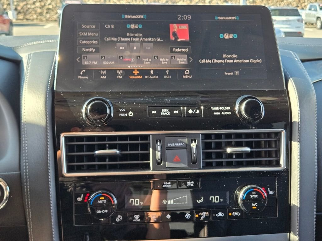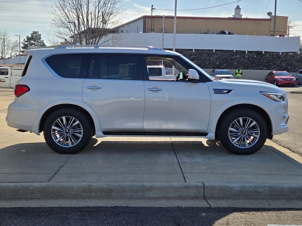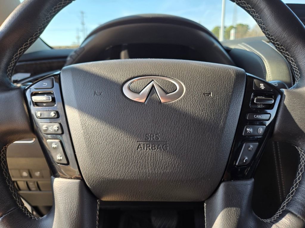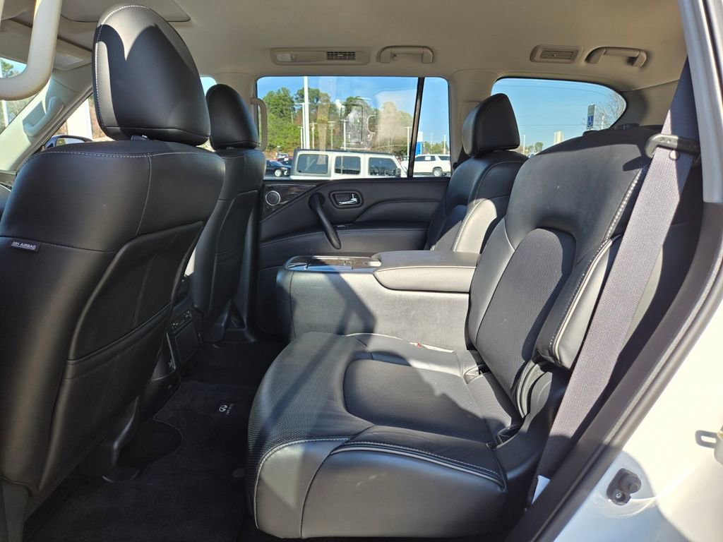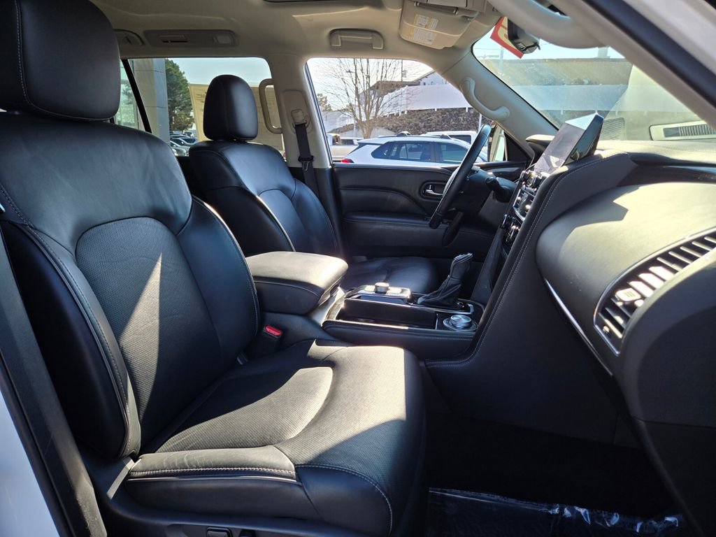 This 2024 INFINITI QX80 comes equipped with, 13 Speakers, 2.937 Axle Ratio, 20" Aluminum Alloy Wheels, 3rd row seats: bench, 4-Wheel Disc Brakes, ABS brakes, Air Conditioning, Alloy wheels, AM/FM radio: SiriusXM, Anti-whiplash front head restraints, Apple CarPlay/Android Auto, Auto High-beam Headlights, Auto tilt-away steering wheel, Auto-dimming door mirrors, Auto-dimming Rear-View mirror, Auto-leveling suspension, Automatic temperature control, Brake assist, Bumpers: body-color, Compass, Delay-off headlights, Driver door bin, Driver vanity mirror, Dual front impact airbags, Dual front side impact airbags, Electronic Stability Control, Emergency communication system: INFINITI InTouch, Four wheel independent suspension, Front anti-roll bar, Front Bucket Seats, Front Center Armrest, Front dual zone A/C, Front fog lights, Front reading lights, Fully automatic headlights, Garage door transmitter: HomeLink, Heated door mirrors, Heated Front Bucket Seats, Heated front seats, Heated steering wheel, Illuminated entry, Leather Shift Knob, Leather steering wheel, Leather-Appointed Seats, Literature Kit, Low tire pressure warning, Memory seat, Navigation system: INFINITI InTouch Navigation, Occupant sensing airbag, Outside temperature display, Overhead airbag, Overhead console, Panic alarm, Passenger door bin, Passenger vanity mirror, Power door mirrors, Power driver seat, Power Liftgate, Power moonroof, Power passenger seat, Power steering, Power windows, Radio data system, Radio: Bose Premium Audio System w/13 Speakers, Rain sensing wipers, Rear air conditioning, Rear anti-roll bar, Rear reading lights, Rear seat center armrest, Rear window defroster, Rear window wiper, Reclining 3rd row seat, Remote keyless entry, Security system, Speed control, Speed-sensing steering, Split folding rear seat, Spoiler, Steering wheel memory, Steering wheel mounted audio controls, Tachometer, Telescoping steering wheel, Tilt steering wheel, Traction control, Trip computer, Turn signal indicator mirrors, Variably intermittent wipers, Voltmeter. Odometer is 6764 miles below market average!