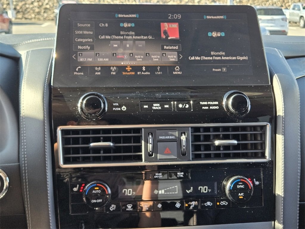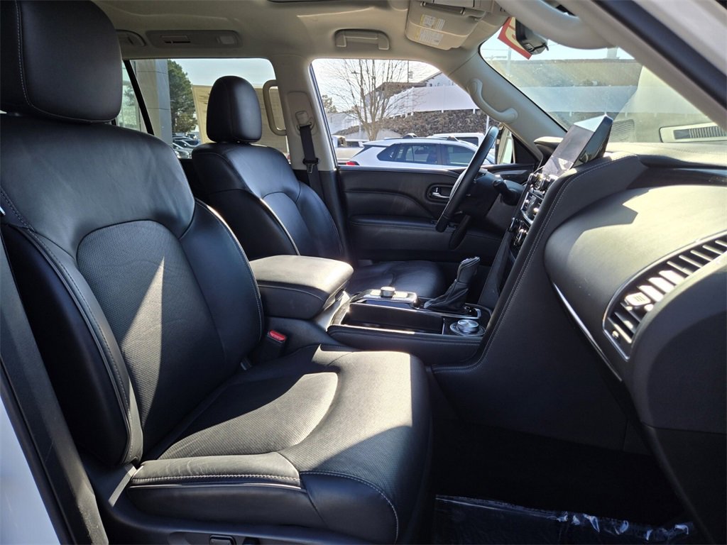 This 2024 INFINITI QX80 comes equipped with, 13 Speakers, 2.937 Axle Ratio, 20" Aluminum Alloy Wheels, 3rd row seats: bench, 4-Wheel Disc Brakes, ABS brakes, Air Conditioning, Alloy wheels, AM/FM radio: SiriusXM, Anti-whiplash front head restraints, Apple CarPlay/Android Auto, Auto High-beam Headlights, Auto tilt-away steering wheel, Auto-dimming door mirrors, Auto-dimming Rear-View mirror, Auto-leveling suspension, Automatic temperature control, Brake assist, Bumpers: body-color, Compass, Delay-off headlights, Driver door bin, Driver vanity mirror, Dual front impact airbags, Dual front side impact airbags, Electronic Stability Control, Emergency communication system: INFINITI InTouch, Four wheel independent suspension, Front anti-roll bar, Front Bucket Seats, Front Center Armrest, Front dual zone A/C, Front fog lights, Front reading lights, Fully automatic headlights, Garage door transmitter: HomeLink, Heated door mirrors, Heated Front Bucket Seats, Heated front seats, Heated steering wheel, Illuminated entry, Leather Shift Knob, Leather steering wheel, Leather-Appointed Seats, Literature Kit, Low tire pressure warning, Memory seat, Navigation system: INFINITI InTouch Navigation, Occupant sensing airbag, Outside temperature display, Overhead airbag, Overhead console, Panic alarm, Passenger door bin, Passenger vanity mirror, Power door mirrors, Power driver seat, Power Liftgate, Power moonroof, Power passenger seat, Power steering, Power windows, Radio data system, Radio: Bose Premium Audio System w/13 Speakers, Rain sensing wipers, Rear air conditioning, Rear anti-roll bar, Rear reading lights, Rear seat center armrest, Rear window defroster, Rear window wiper, Reclining 3rd row seat, Remote keyless entry, Security system, Speed control, Speed-sensing steering, Split folding rear seat, Spoiler, Steering wheel memory, Steering wheel mounted audio controls, Tachometer, Telescoping steering wheel, Tilt steering wheel, Traction control, Trip computer, Turn signal indicator mirrors, Variably intermittent wipers, Voltmeter. Odometer is 10212 miles below market average!