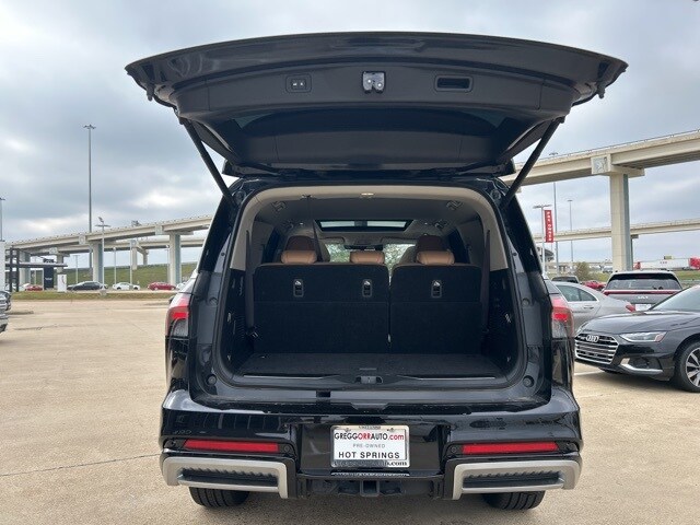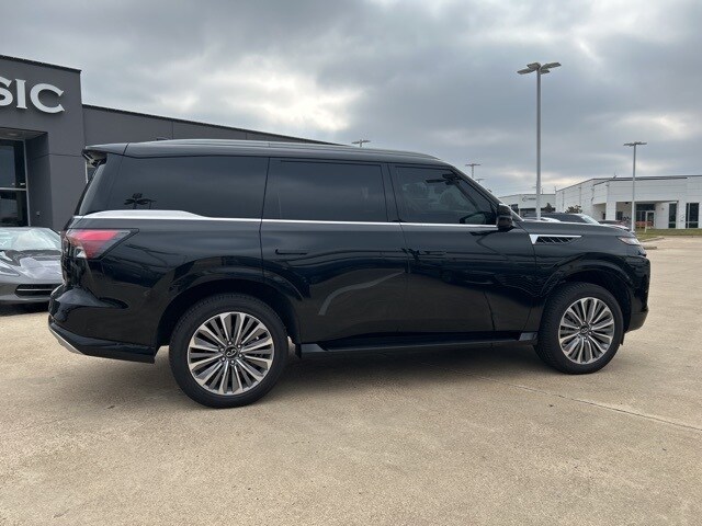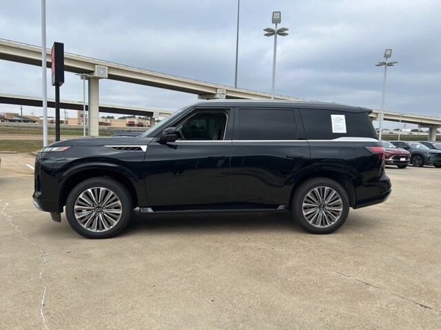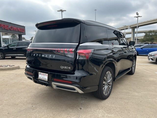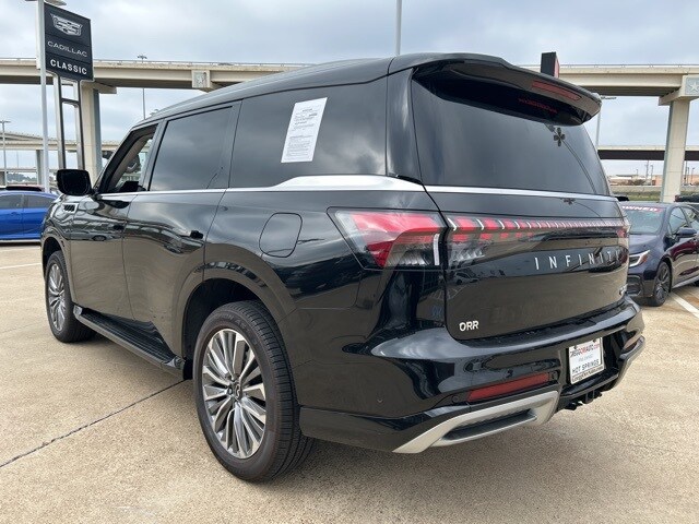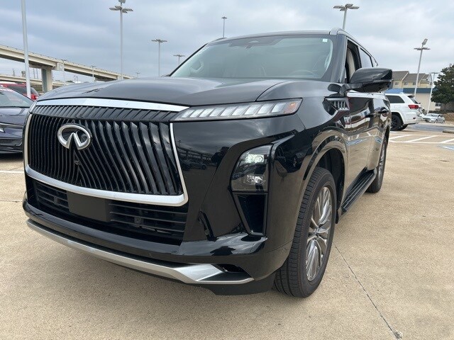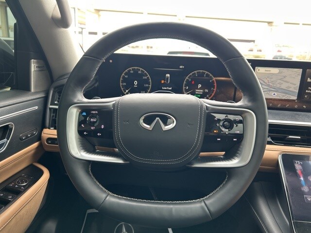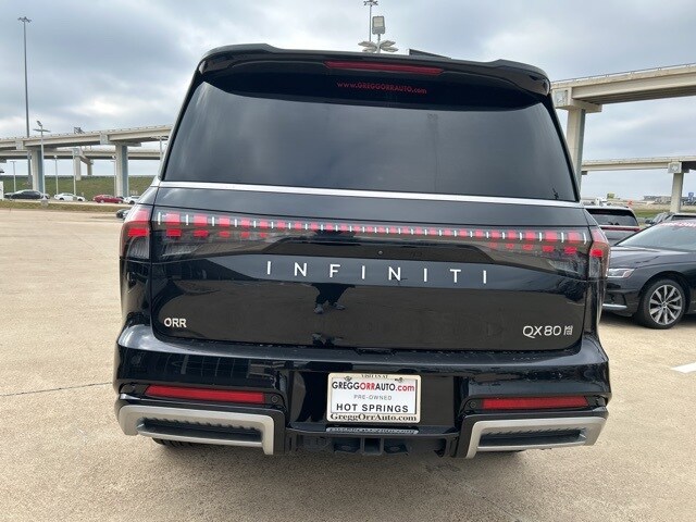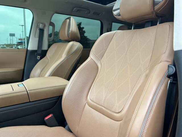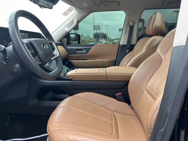 This 2025 INFINITI QX80 comes equipped with the following features 3rd row seats: bench, 4-Wheel Disc Brakes, ABS brakes, Adaptive suspension, Air Conditioning, Alloy wheels, AM/FM radio: SiriusXM with 360L, Anti-whiplash front head restraints, Apple CarPlay/Android Auto, Audio memory, Auto High-beam Headlights, Auto tilt-away steering wheel, Auto-dimming door mirrors, Auto-dimming Rear-View mirror, Auto-leveling suspension, Automatic temperature control, Brake assist, Bumpers: body-color, Center Front Spoiler, Climate Controlled Front Bucket Seats w/Massage, Compass, Delay-off headlights, Driver door bin, Driver vanity mirror, Dual front impact airbags, Dual front side impact airbags, Electronic Stability Control, Emergency communication system: INFINITI InTouch, Four wheel independent suspension, Front anti-roll bar, Front Bucket Seats, Front Center Armrest, Front dual zone A/C, Front reading lights, Fully automatic headlights, Garage door transmitter: myQ Connected Garage, Genuine wood dashboard insert, Genuine wood door panel insert, Heads-Up Display, Heated door mirrors, Heated front seats, Heated rear seats, Heated steering wheel, HVAC memory, Illuminated entry, Knee airbag, Leather steering wheel, Literature Kit, Low tire pressure warning, Memory seat, Navigation system: Google Built-in, Occupant sensing airbag, Outside temperature display, Overhead airbag, Overhead console, Panic alarm, Passenger door bin, Passenger vanity mirror, Power door mirrors, Power driver seat, Power Liftgate, Power moonroof, Power passenger seat, Power steering, Power windows, Premium Paint, ProPILOT Assist 2.1 (SENSORY Grade), Radio data system, Radio: Klipsch Reference Premiere Audio System, Rain sensing wipers, Rear air conditioning, Rear anti-roll bar, Rear reading lights, Rear seat center armrest, Rear window defroster, Rear window wiper, Reclining 3rd row seat, Remote keyless entry, Security system, Semi-Aniline Premium Leather Seating Surfaces, Speed control, Speed-sensing steering, Split folding rear seat, Spoiler, Steering wheel memory, Steering wheel mounted audio controls, Tachometer, Telescoping steering wheel, Tilt steering wheel, Traction control, Trip computer, Turn signal indicator mirrors, Variably intermittent wipers, Ventilated front seats, Ventilated rear seats, and Wheels: 22" x 8" Cast Aluminum Alloy. Clean CARFAX. CARFAX One-Owner. 2025 INFINITI QX80 SENSORY 4WD 3.5L V6 DOHC 24V