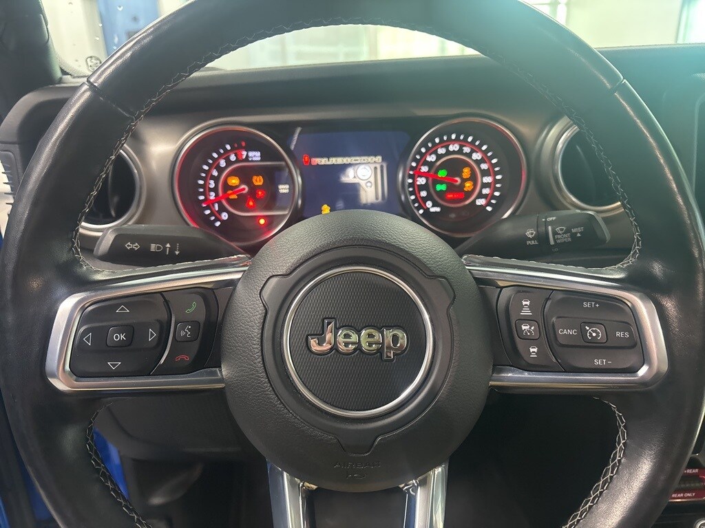 Clean CARFAX. Hydro Blue Pearlcoat Rubicon 4WD 8-Speed Automatic 3.6L V6 24V VVT 1-Year SiriusXM Guardian Trial, 240 Amp Alternator, 5-Year SiriusXM Traffic Service, 5-Year SiriusXM Travel Link Service, 700 Amp Maintenance Free Battery, 8.4" Radio & Premium Audio Group, Alpine Premium Audio System, Auto-Dimming Rear-View Mirror, Auxiliary Switch Group, Auxiliary Switches, Black 3-Piece Hard Top, Blind Spot & Cross Path Detection, Body Color Fender Flares (2-Piece), Class IV Hitch Receiver, Cold Weather Group, Daytime Running Lamps LED Accents, Emergency/Assistance Call, For Details, Visit DriveUconnect.com, Freedom Panel Storage Bag, Front LED Fog Lamps, HD Radio, Heated Front Seats, Heated Steering Wheel, Heavy-Duty Engine Cooling, LED Lighting Group, LED Park Turn Lamps, LED Reflector Headlamps, LED Taillamps, No Soft Top, ParkSense Rear Park Assist System, Quick Order Package 24R, Radio: Uconnect 4C Nav w/8.4" Display, Rear Sliding Window, Rear Window Defroster, Safety Group, SiriusXM Traffic Plus, SiriusXM Travel Link, Trailer Hitch Zoom, Trailer Tow Package.