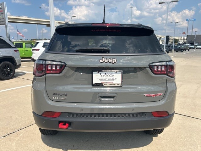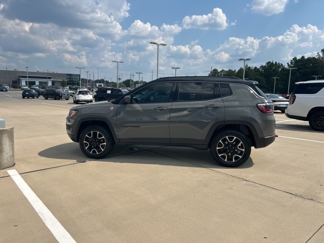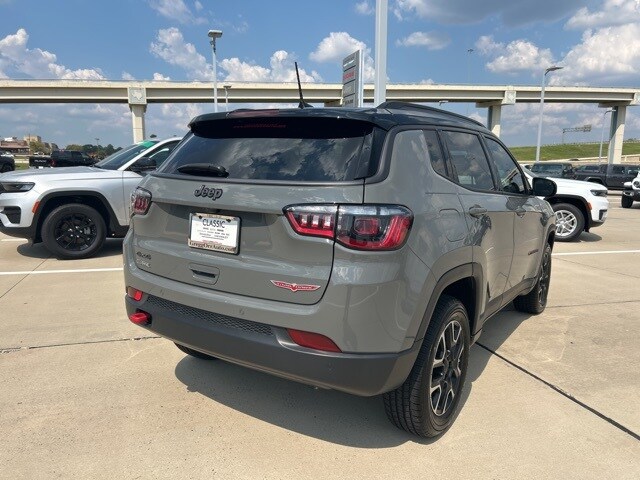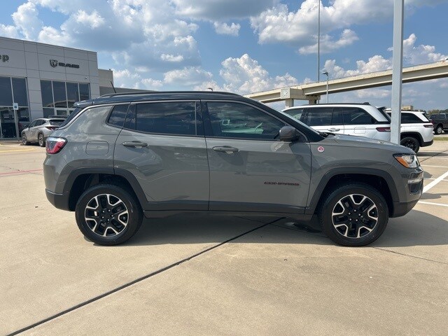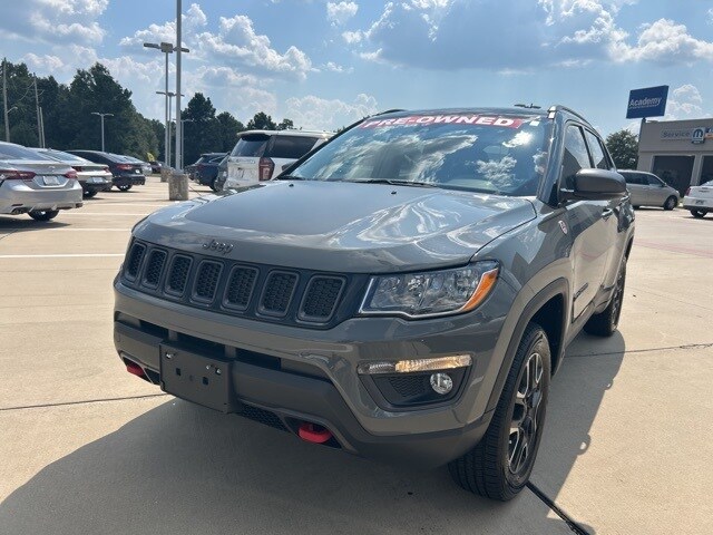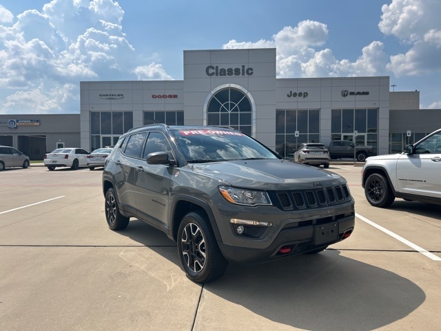 CARFAX One-Owner. 22/30 City/Highway MPG Classic CDJR in Texarkana is proud to offer this charming-looking 2021 Jeep Compass in Sting-Gray Clearcoat. This 2021 Jeep Compass comes with the following features; Quick Order Package 2GE, Sun and Sound Group (Power Front/Fixed Rear Full Sunroof and Premium Alpine Speaker System), 4WD, 17" x 6.5" Aluminum Wheels, 4-Wheel Disc Brakes, 4.334 Axle Ratio, 6 Speakers, ABS brakes, Air Conditioning, Alloy wheels, AM/FM radio: SiriusXM, Anti-whiplash front head restraints, Apple CarPlay/Android Auto, Auto High-beam Headlights, Auto-dimming Rear-View mirror, Automatic temperature control, Brake assist, Bumpers: body-color, Compass, Delay-off headlights, Driver door bin, Driver vanity mirror, Dual front impact airbags, Dual front side impact airbags, Electronic Stability Control, Four wheel independent suspension, Front anti-roll bar, Front Bucket Seats, Front Center Armrest w/Storage, Front dual zone A/C, Front fog lights, Front License Plate Bracket, Front reading lights, Fully automatic headlights, Heated door mirrors, Illuminated entry, Knee airbag, Leather Shift Knob, Low tire pressure warning, Occupant sensing airbag, Outside temperature display, Overhead airbag, Overhead console, Panic alarm, ParkView Rear Back-Up Camera, Passenger door bin, Passenger vanity mirror, Power door mirrors, Power steering, Power windows, Premium Cloth/Leather Trim Bucket Seats, Radio: Uconnect 4 w/8.4" Display, Rain sensing wipers, Rear anti-roll bar, Rear seat center armrest, Rear window defroster, Rear window wiper, Remote keyless entry, Roof rack: rails only, Security system, Speed control, Split folding rear seat, Spoiler, Steering wheel mounted audio controls, Tachometer, Telescoping steering wheel, Tilt steering wheel, Traction control, Trip computer, Turn signal indicator mirrors, and Variably intermittent wipers. 4WD.
