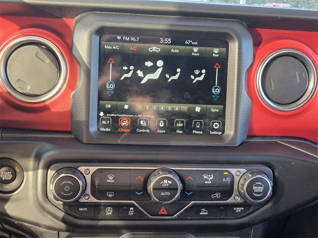 This 2021 Jeep Gladiator comes equipped with, 1-Year SiriusXM Guardian Trial, 240 Amp Alternator, 4-Wheel Disc Brakes, 4.10 Rear Axle Ratio, 5-Year SiriusXM Traffic Service, 5-Year SiriusXM Travel Link Service, 700 Amp Maintenance Free Battery, 8 Speakers, 8.4" Radio & Premium Audio Group, 8.4" Touchscreen Display, 97 mph Maximum Speed Calibration, ABS brakes, Air Conditioning, Alloy wheels, Alpine Premium Audio System, AM/FM radio: SiriusXM, Apple CarPlay/Android Auto, Auto-Dimming Rear-View Mirror, Automatic temperature control, Auxiliary Switch Group, Auxiliary Switches, Black 3-Piece Hard Top, Brake assist, Class IV Hitch Receiver, Compass, Delay-off headlights, Driver door bin, Driver vanity mirror, Dual front impact airbags, Dual front side impact airbags, Electronic Stability Control, Emergency/Assistance Call, For Details, Visit DriveUconnect.com, Freedom Panel Storage Bag, Front anti-roll bar, Front Bucket Seats, Front Center Armrest w/Storage, Front dual zone A/C, Front fog lights, Front License Plate Bracket, Front reading lights, Fully automatic headlights, Garage door transmitter, GPS Navigation, GVWR: 6,250 lbs w/Max Tow Package, HD Radio, Heated door mirrors, Heavy-Duty Engine Cooling, Hex MOPAR Body Side Graphic, Illuminated entry, Integrated roll-over protection, Leather steering wheel, Low tire pressure warning, MOPAR All-Weather Floor Mats (DISC), MOPAR Hardtop Headliner, MOPAR Jeep Grille Hood Graphic, MOPAR Satin Black Grille, MOPAR Spray In Bedliner, Occupant sensing airbag, Outside temperature display, Panic alarm, ParkView Rear Back-Up Camera, Passenger door bin, Passenger vanity mirror, Performance Suspension, Power door mirrors, Power steering, Power windows, Premium Cloth Low-Back Bucket Seats, Quick Order Package 24R, Radio data system, Radio: Uconnect 4 w/7" Display, Radio: Uconnect 4C Nav w/8.4" Display, Rear anti-roll bar, Rear reading lights, Rear Sliding Window, Rear Window Defroster, Redical Instrument Panel Bezels, Remote keyless entry, Remote Start System, Security system, SiriusXM Traffic Plus, SiriusXM Travel Link, Speed control, Split folding rear seat, Steering wheel mounted audio controls, Tachometer, Telescoping steering wheel, Tilt steering wheel, Traction control, Trailer Hitch Zoom, Trailer Tow Package, Trip computer, Variably intermittent wipers, Voltmeter, Wheels: 17" x 7.5" Granite Crystal Aluminum, Wheels: 17" x 7.5" Polished Black Aluminum.