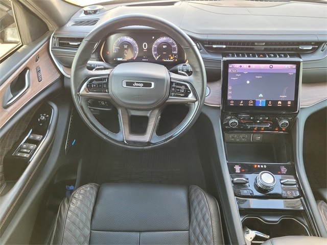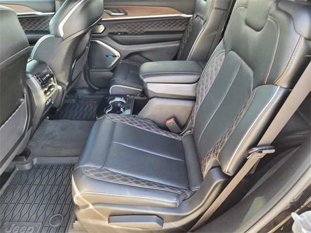 This 2021 Jeep Grand Cherokee L comes equipped with Advanced Protech Group IV (Heads-Up Display, Interior Rear Facing Camera, Night Vision/Pedestrian-Animal Detection, and Rearview Autodim Digital Display Mirror), Luxury Tech Group V (2nd Row Manual Window Shades and Wireless Charging Pad), Quick Order Package 22S, Two Tone Paint Group, Navigation System, 10 Speakers, 19 Speakers High Performance Audio, 3.45 Rear Axle Ratio, 3rd row seats: split-bench, 4-Wheel Disc Brakes, ABS brakes, Active Noise Control System, Adaptive suspension, Air Conditioning, Alloy wheels, AM/FM radio: SiriusXM w/360L, Anti-whiplash front head restraints, Apple CarPlay/Android Auto, Audio memory, Auto High-beam Headlights, Auto-dimming door mirrors, Auto-dimming Rear-View mirror, Auto-leveling suspension, Automatic temperature control, Body Color Roof (DISC), Brake assist, Bumpers: body-color, Compass, Delay-off headlights, Driver door bin, Driver vanity mirror, Dual front impact airbags, Dual front side impact airbags, Electronic Stability Control, Emergency communication system, Four wheel independent suspension, Front anti-roll bar, Front Bucket Seats, Front Center Armrest w/Storage, Front dual zone A/C, Front fog lights, Front License Plate Bracket (DISC), Front reading lights, Fully automatic headlights, Garage door transmitter, Genuine wood dashboard insert, Genuine wood door panel insert, Heated door mirrors, Heated front seats, Heated rear seats, Heated steering wheel, Illuminated entry, Knee airbag, Leather steering wheel, Low tire pressure warning, Memory seat, Nappa Leather Seats, Normal Duty Suspension, Occupant sensing airbag, Outside temperature display, Overhead airbag, Overhead console, Panic alarm, Passenger door bin, Passenger vanity mirror, Power door mirrors, Power driver seat, Power Fold Seatbacks, Power Liftgate, Power moonroof: CommandView, Power passenger seat, Power steering, Power windows, Radio data system, Radio: Uconnect 5 Nav w/10.1" Display, Rain sensing wipers, Rear air conditioning, Rear anti-roll bar, Rear dual zone A/C, Rear reading lights, Rear seat center armrest, Rear window defroster, Rear window wiper, Reclining 3rd row seat, Remote keyless entry, Roof rack: rails only, Security system, Speed control, Speed-Sensitive Wipers, Split folding rear seat, Spoiler, Steering wheel memory, Steering wheel mounted audio controls, Tachometer, Telescoping steering wheel, Tilt steering wheel, Traction control, Trip computer, Turn signal indicator mirrors, Variably intermittent wipers, Ventilated front seats, Voltmeter, and Wheels: 20" x 8.5" Fully Polished Aluminum. Carfax no accidents, 2nd Row Manual Window Shades, Advanced Protech Group IV, Heads-Up Display, Interior Rear Facing Camera, Luxury Tech Group V, Navigation System, Night Vision/Pedestrian-Animal Detection, Quick Order Package 22S, Rearview Autodim Digital Display Mirror, Two Tone Paint Group, Wireless Charging Pad.