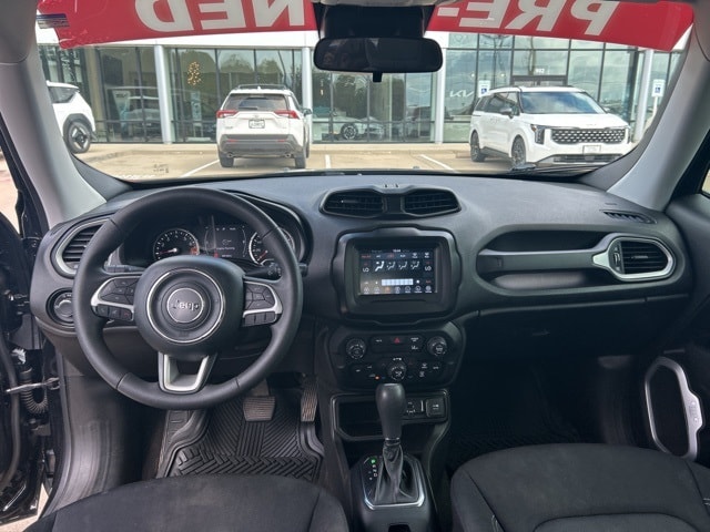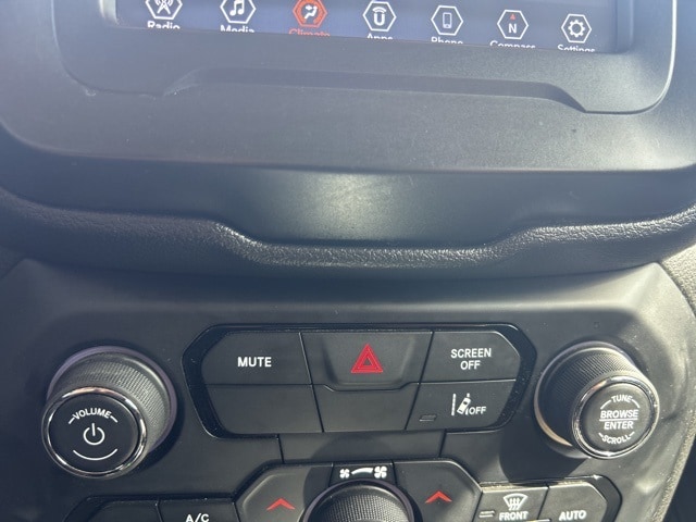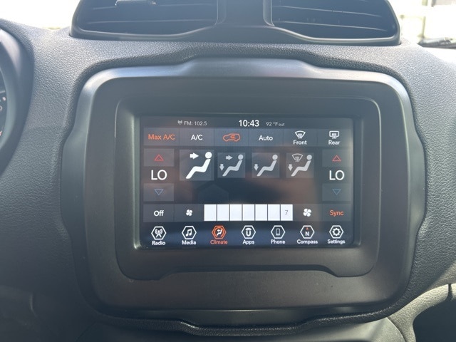 The 2021 Jeep Renegade comes with the following features; Quick Order Package 2XT Jeepster (Deep Tint Sunscreen Glass, Jeepstar Decals, Jeepster Edition, Keyless Entry w/Panic Alarm, Remote Start System, and Wheels: 19" x 7.5" Aluminum), 16" x 6.5" Styled Steel Wheels, 3.734 Final Drive Ratio, 4-Wheel Disc Brakes, 6 Speakers, ABS brakes, Air Conditioning, AM/FM radio: SiriusXM, Anti-whiplash front head restraints, Apple CarPlay/Android Auto, Automatic temperature control, Brake assist, Cloth Low-Back Bucket Seats, Compass, Delay-off headlights, Driver door bin, Driver vanity mirror, Dual front impact airbags, Dual front side impact airbags, Electronic Stability Control, Emergency communication system: SiriusXM Guardian, Four wheel independent suspension, Front anti-roll bar, Front Bucket Seats, Front Center Armrest, Front dual zone A/C, Front reading lights, Heated door mirrors, Illuminated entry, Knee airbag, Low tire pressure warning, Normal Duty Suspension, Occupant sensing airbag, Outside temperature display, Overhead airbag, Panic alarm, ParkView Rear Back-Up Camera, Passenger door bin, Passenger vanity mirror, Power door mirrors, Power steering, Power windows, Radio data system, Radio: Uconnect 4 w/7" Display, Rear anti-roll bar, Rear window defroster, Rear window wiper, Remote keyless entry, Speed control, Split folding rear seat, Spoiler, Steering wheel mounted audio controls, Tachometer, Telescoping steering wheel, Tilt steering wheel, Traction control, Trip computer, Variably intermittent wipers, and Voltmeter.